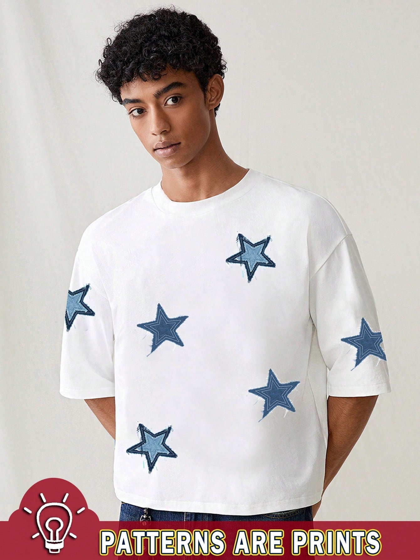 SWAVVY Men's Street-Style Allover Print Loose Fit Short Sleeve T-Shirt