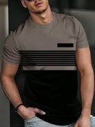 The Street Sense Is Full! Men's Summer Statement Stripes Contrast Stripe Panels Men's T-Shirt Casual Machine Washable Crewneck