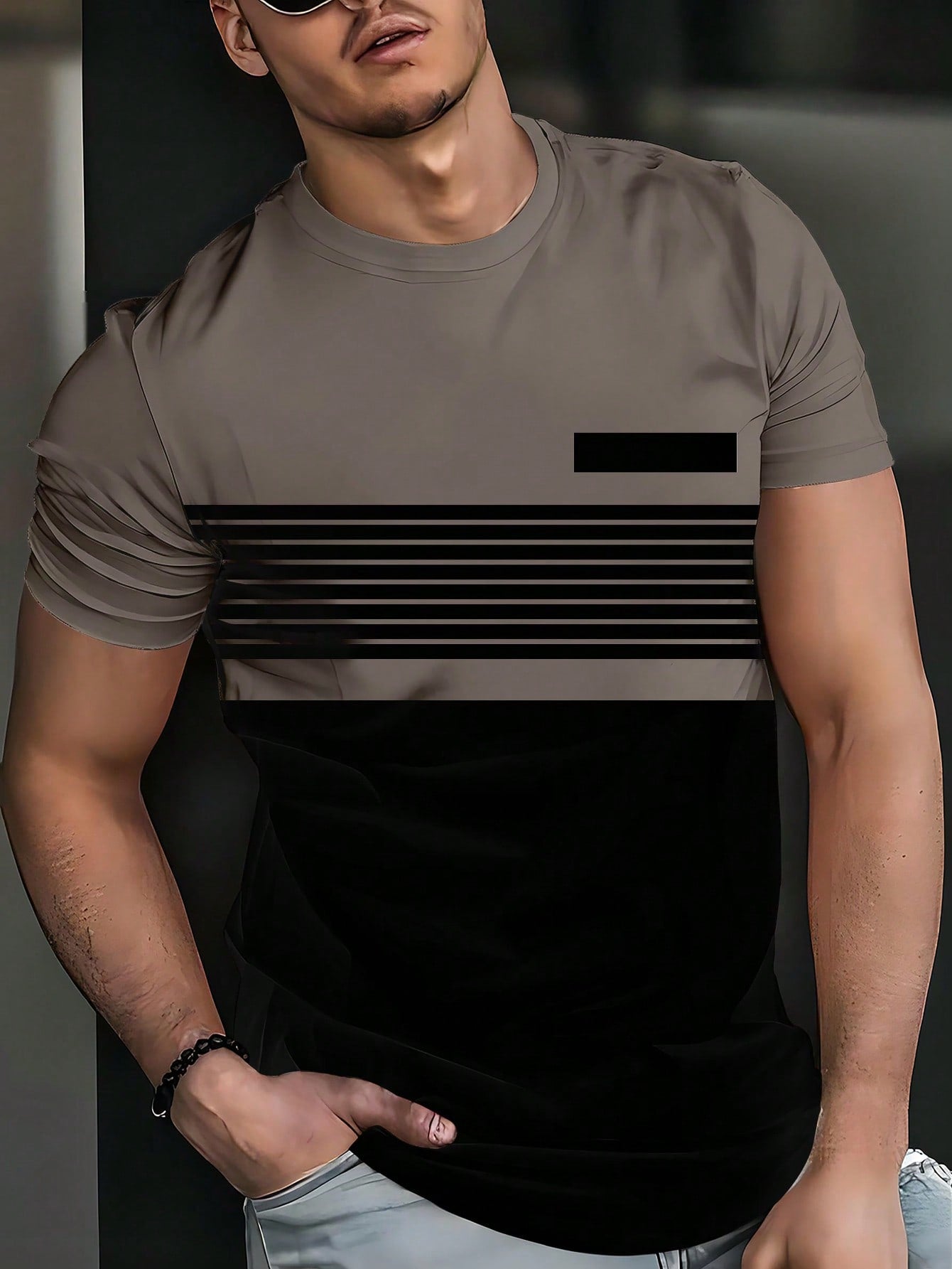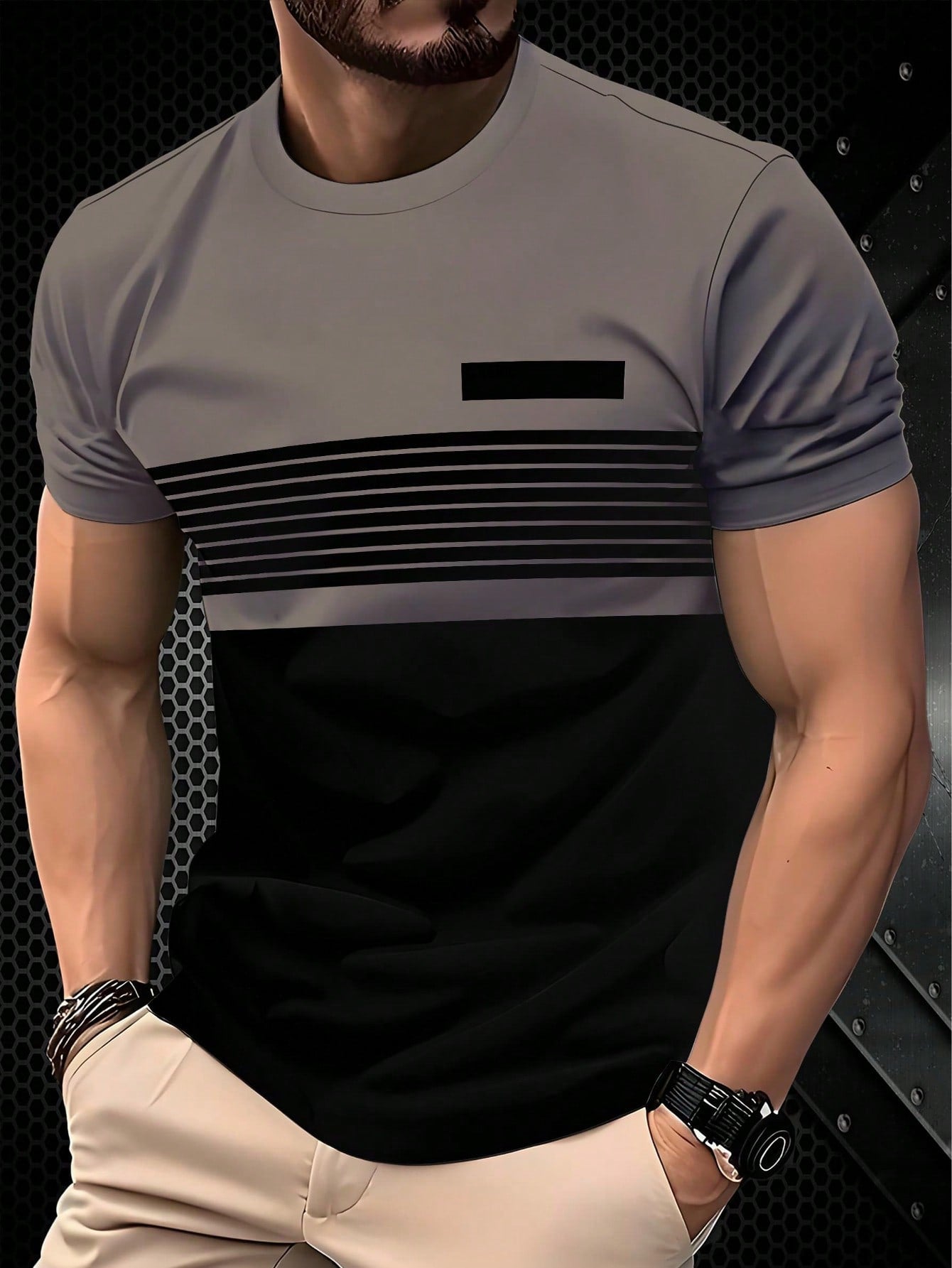 men The Street Sense Is Full! Men's Summer Statement Stripes Contrast Stripe Panels Men's T-Shirt Casual Machine Washable Crewneck