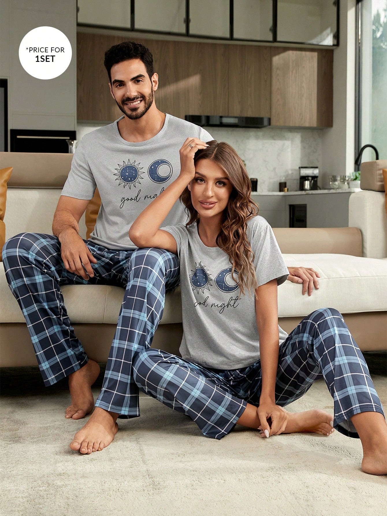 CoupledUp 1pc Letter Graphic Sleep Tee & 1pc Plaid Sleep Pants