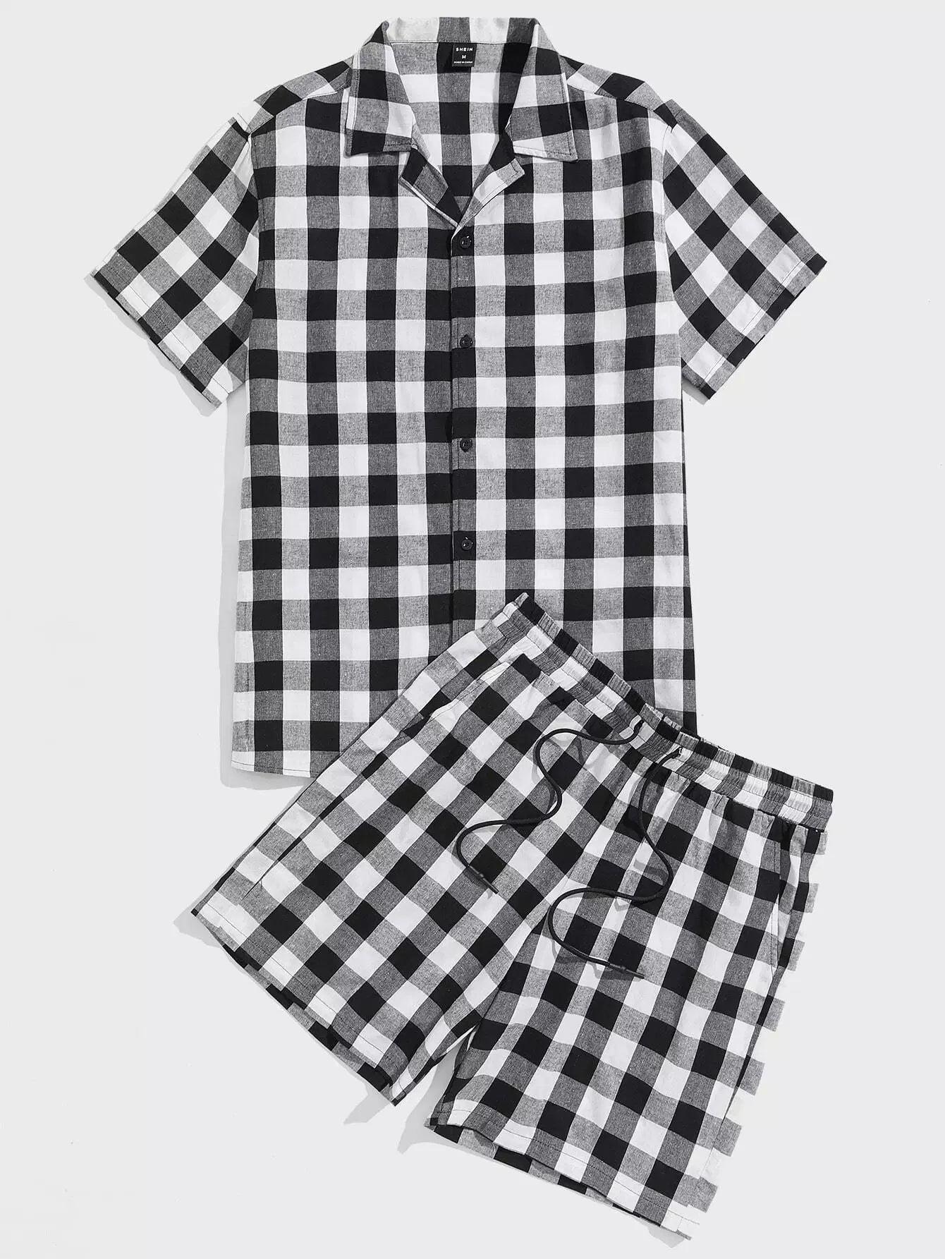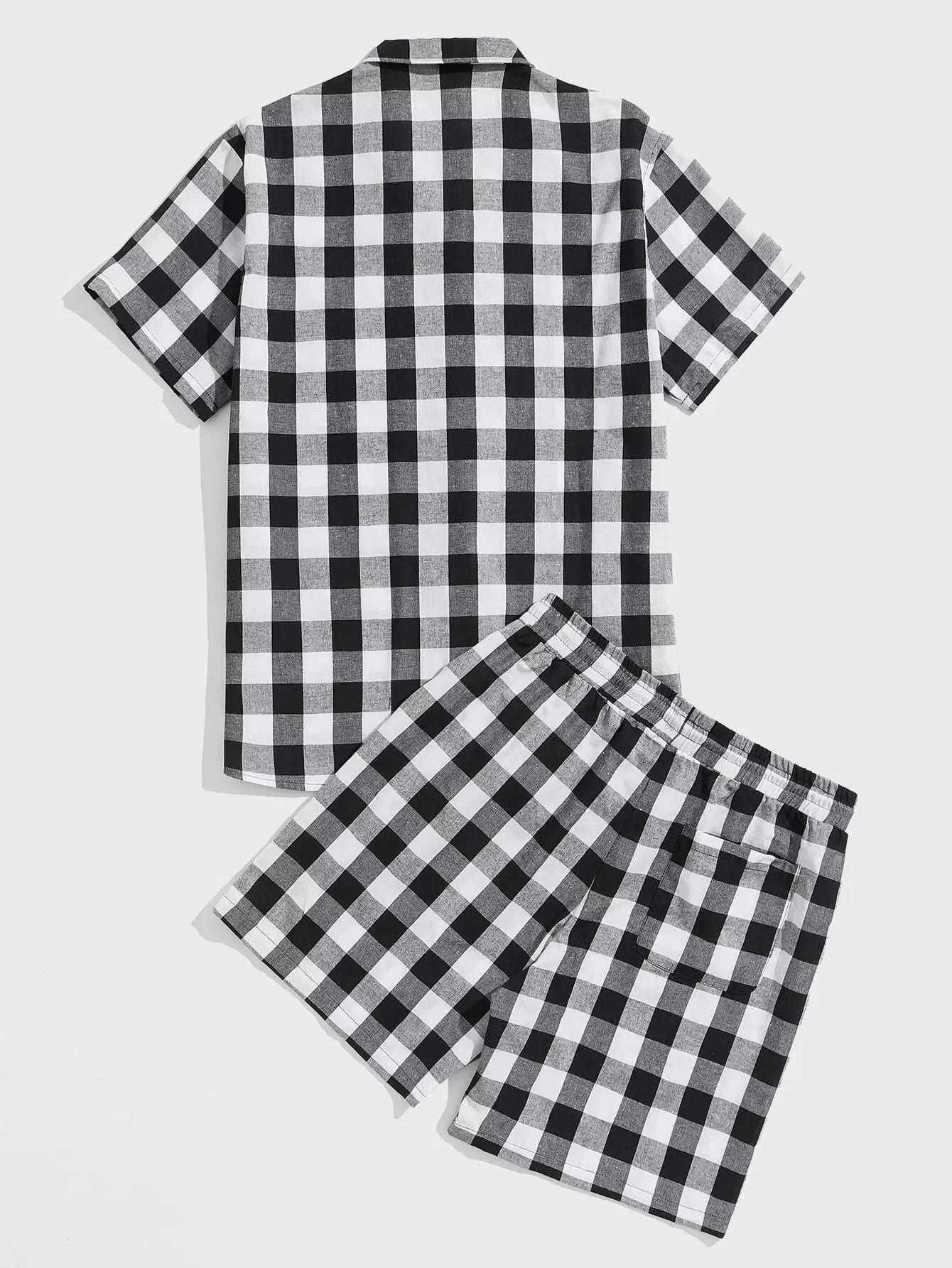 Gingham Top & Drawstring Waist Shorts Loungewear Set