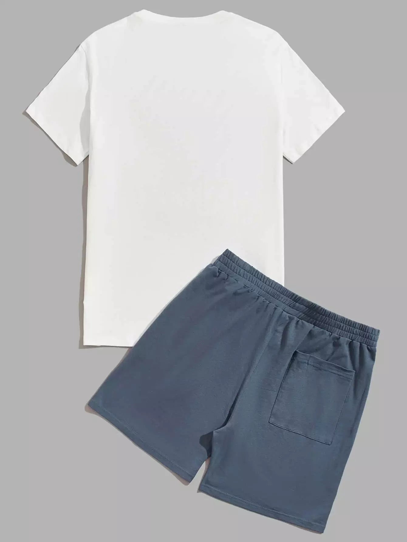 Men Slogan & Cartoon Graphic Tee & Shorts Set