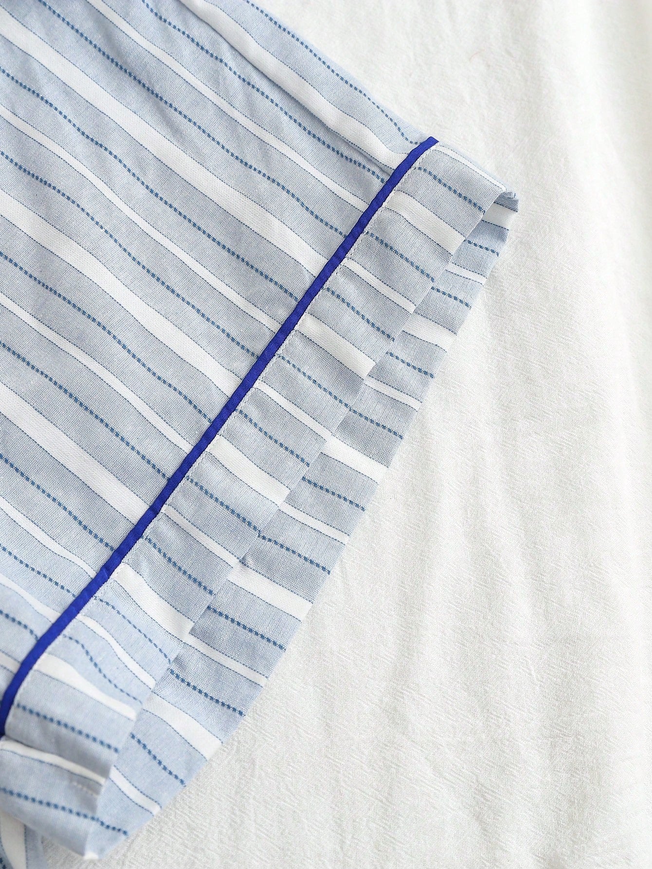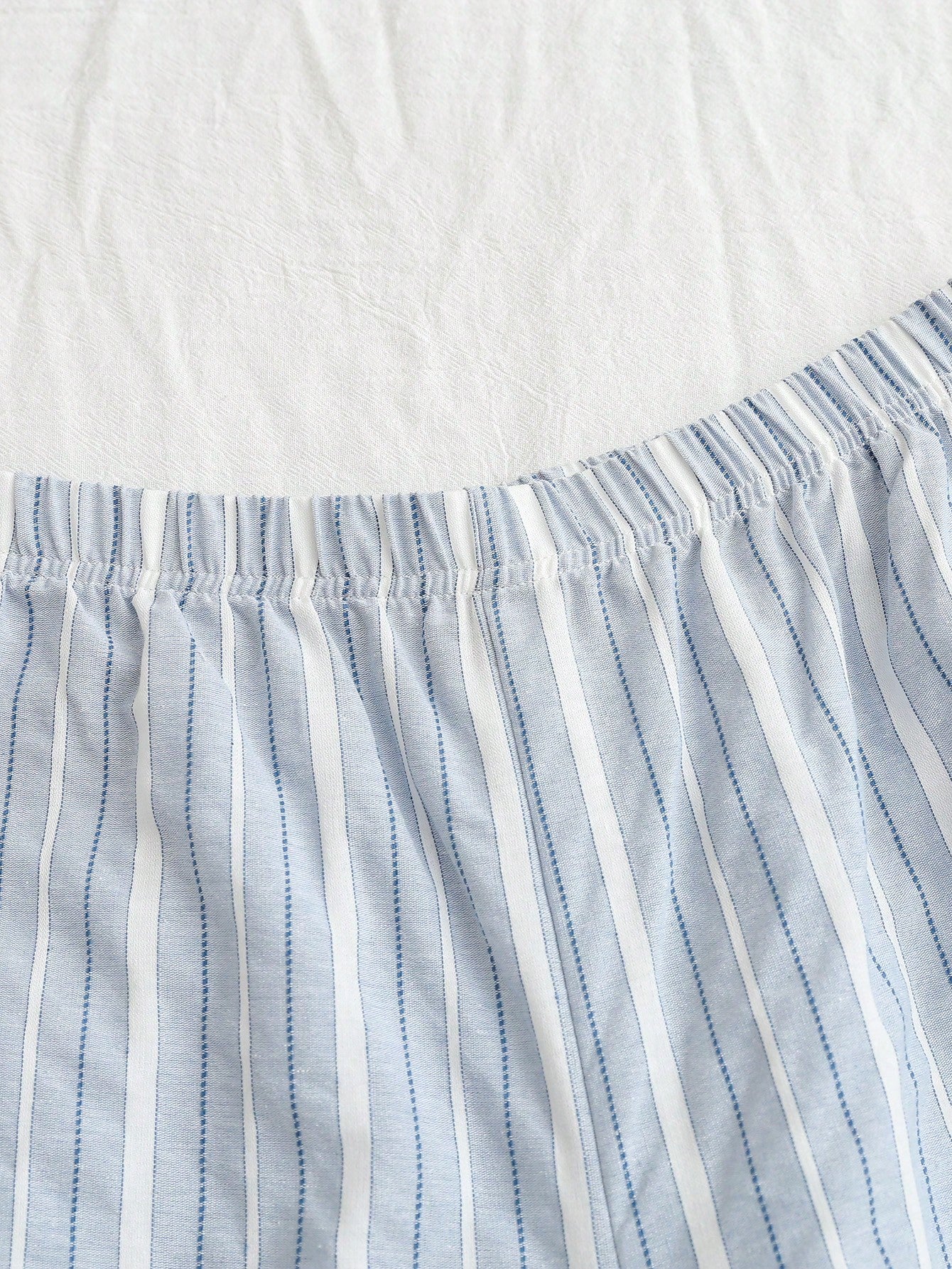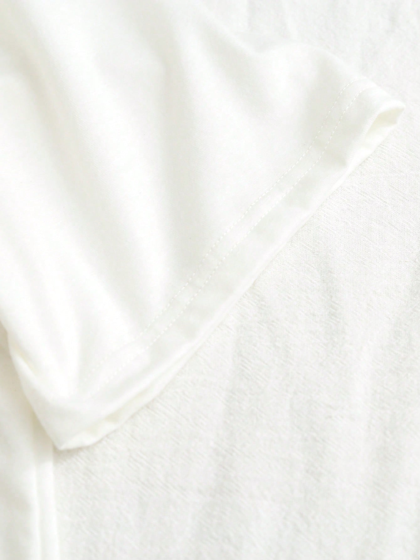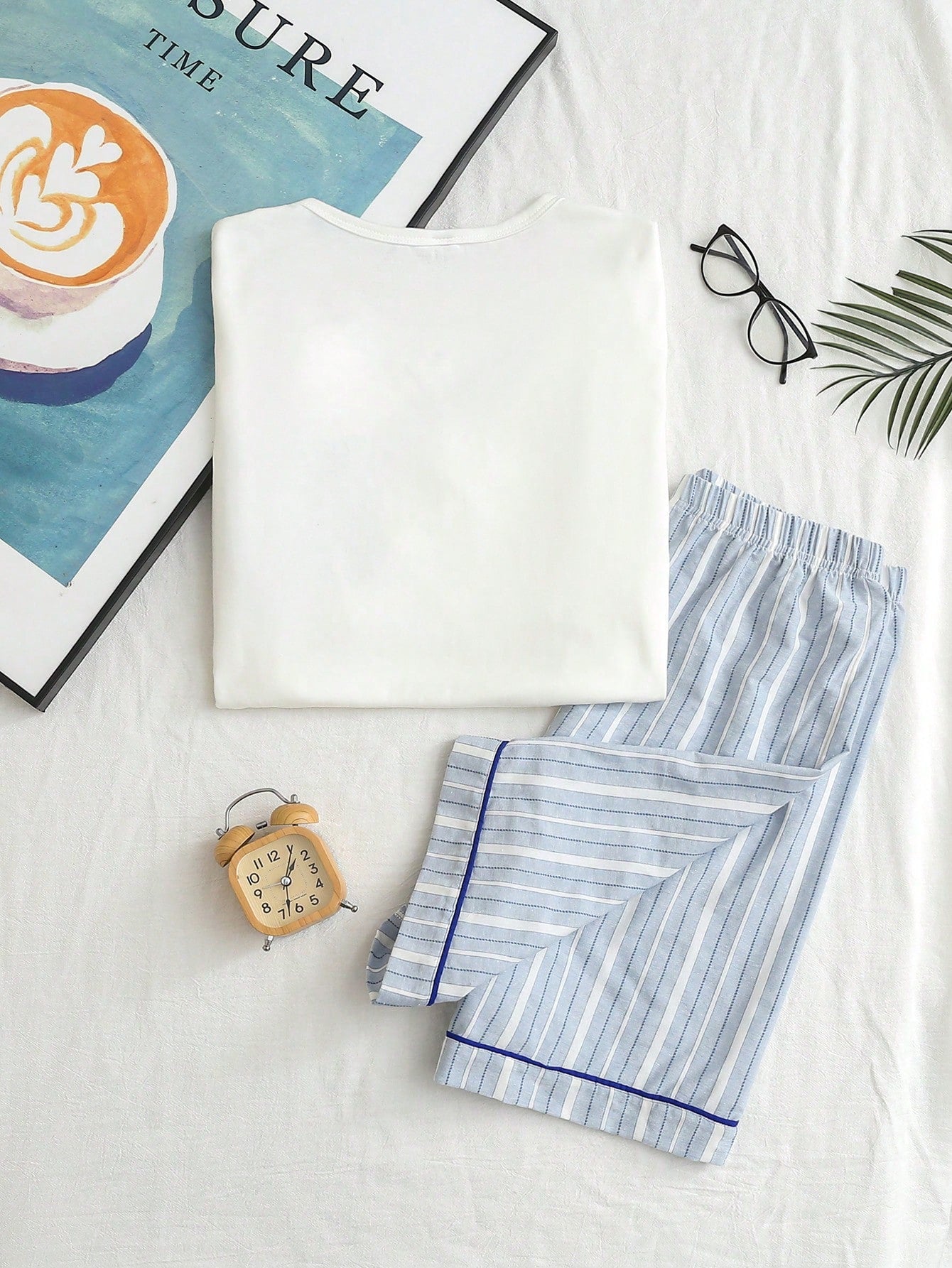 Men Soft Comfortable Minimalist White Short Sleeve Top With Fake Placket Design And Blue Striped Pocket,