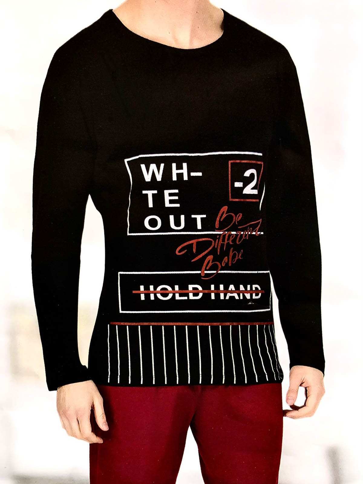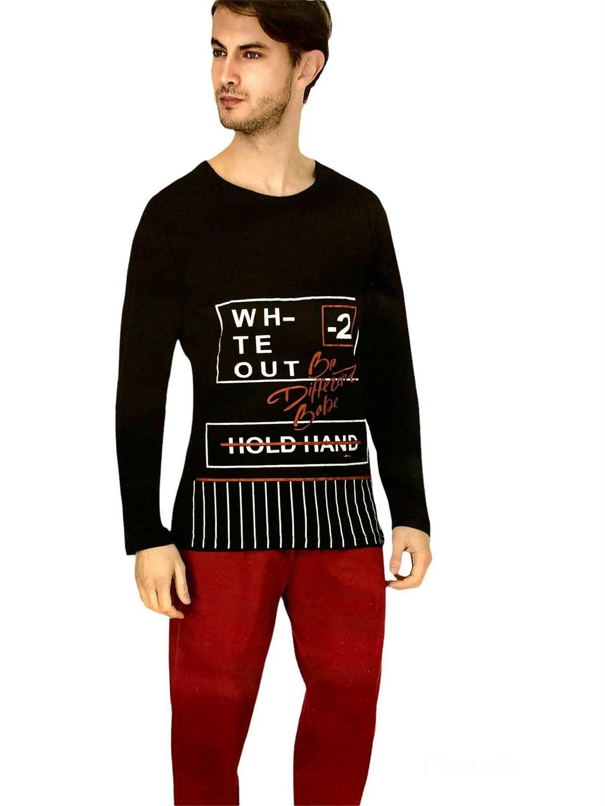 Men - Men's sleep pajama burgundy and black two pieces