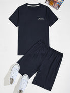 Men Letter Graphic Tee With Shorts PJ Set