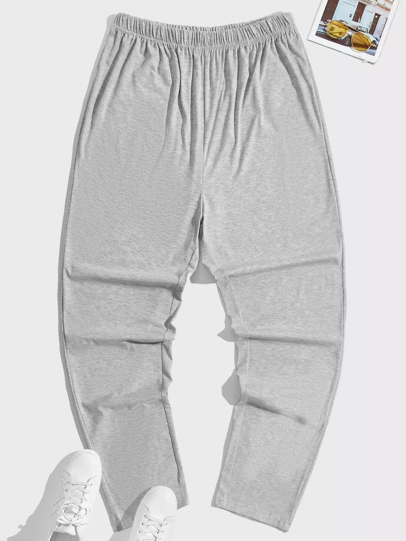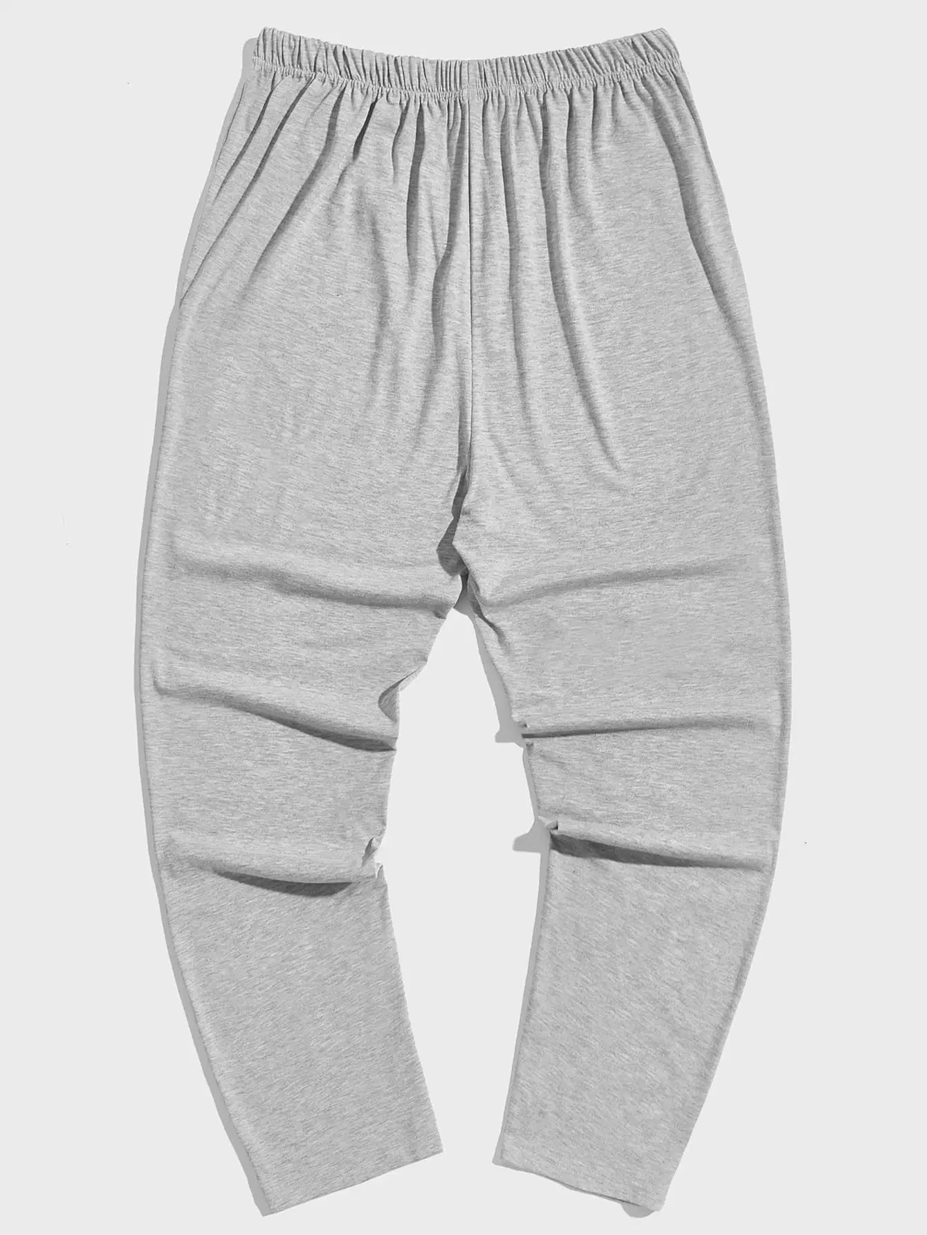 Men 2pcs Solid Elastic Waist Lounge Pants