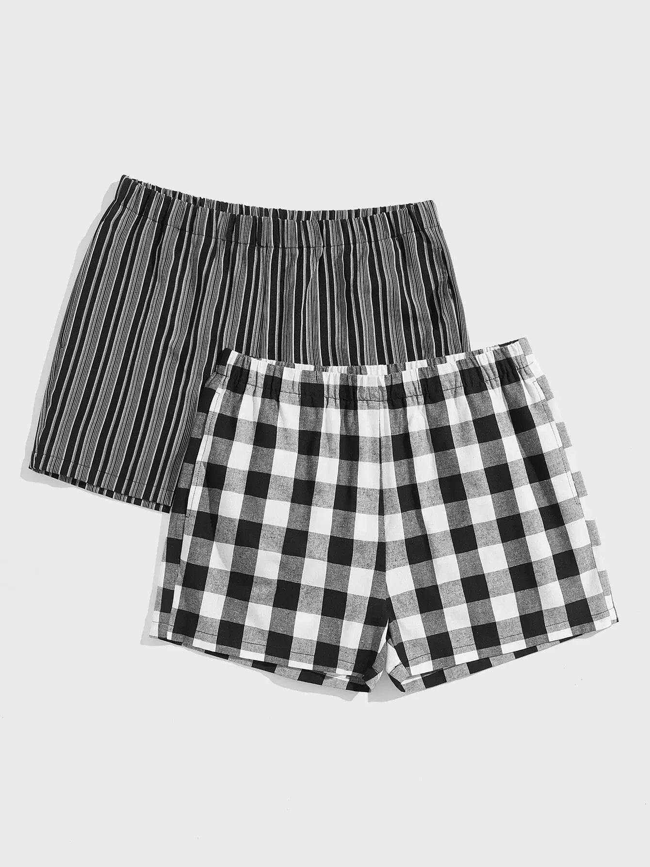 Men Striped & Buffalo Plaid Lounge Shorts