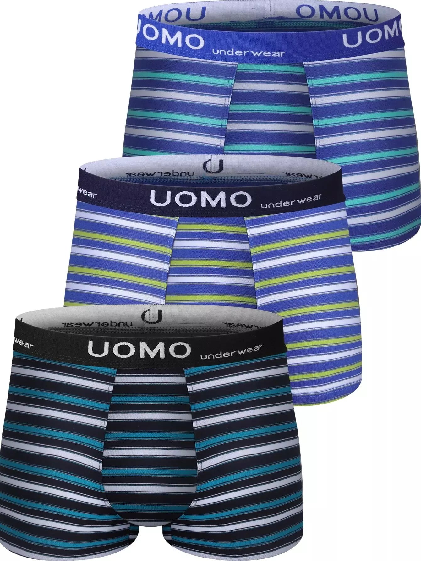 Men 3pcs Letter Tape Waist Striped Print Boxer Brief