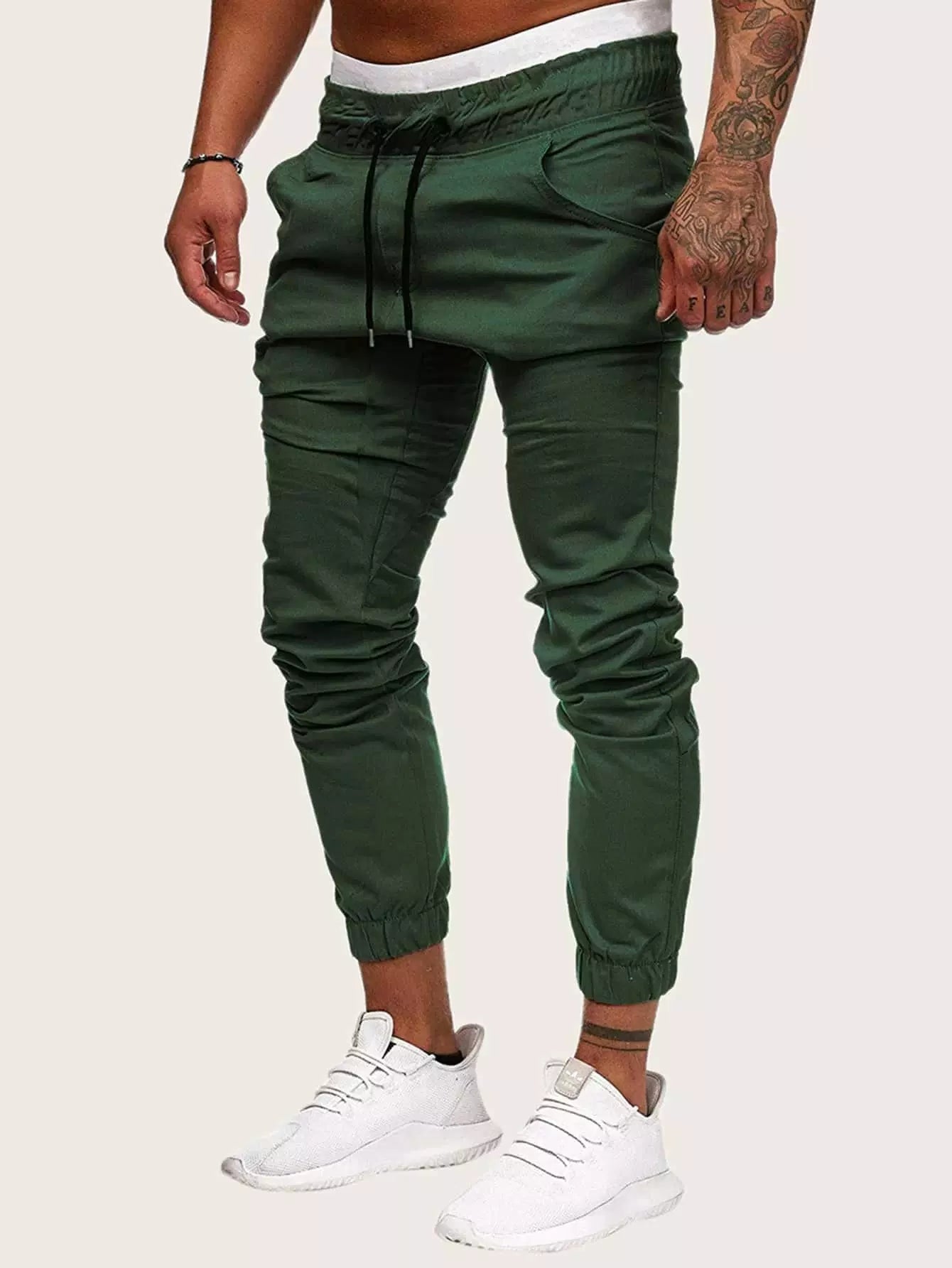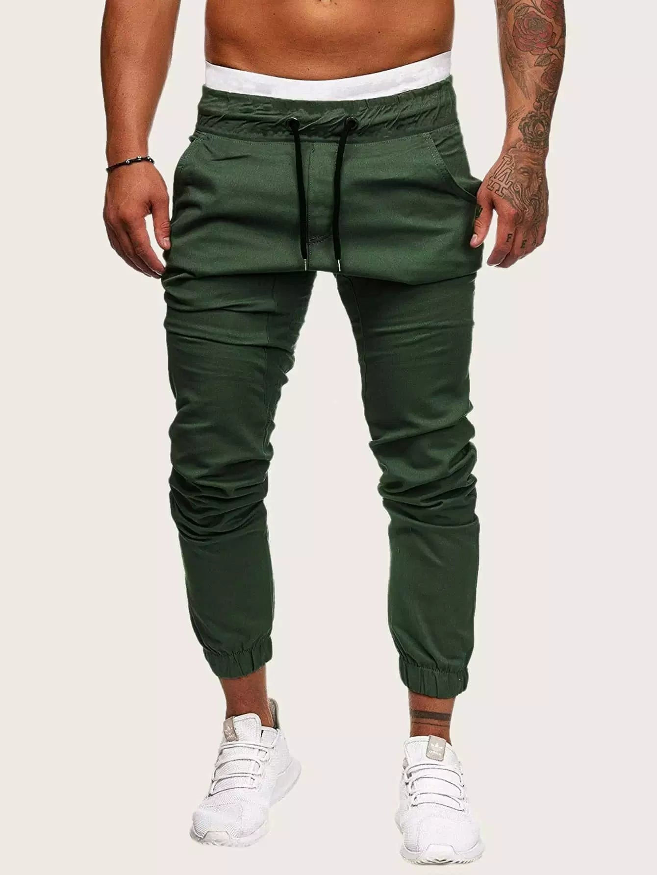 Men - Men Drawstring Waist Solid Pants