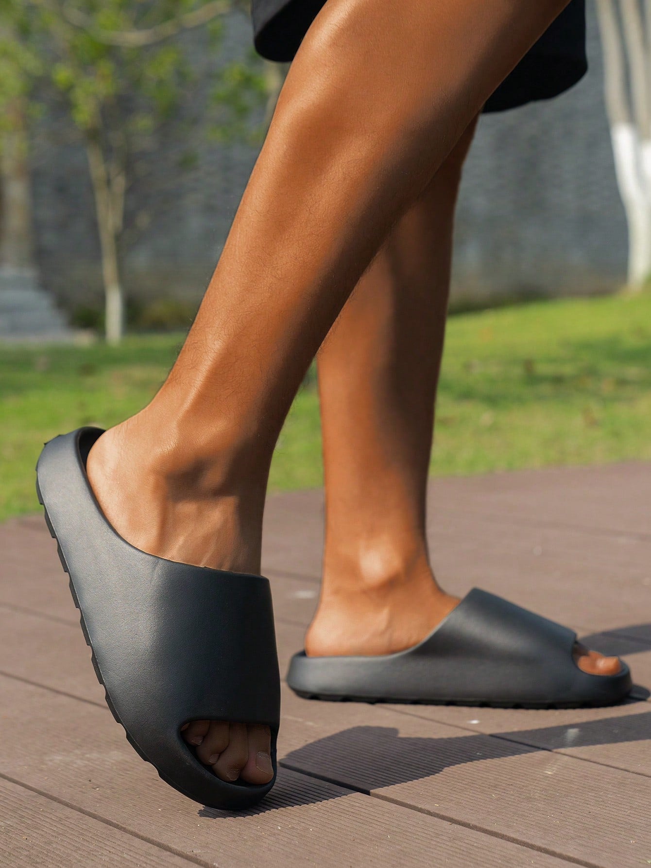 Large Size Men's Thick Sole Minimalist Slide Sandals With Non-Slip Waterproof Design