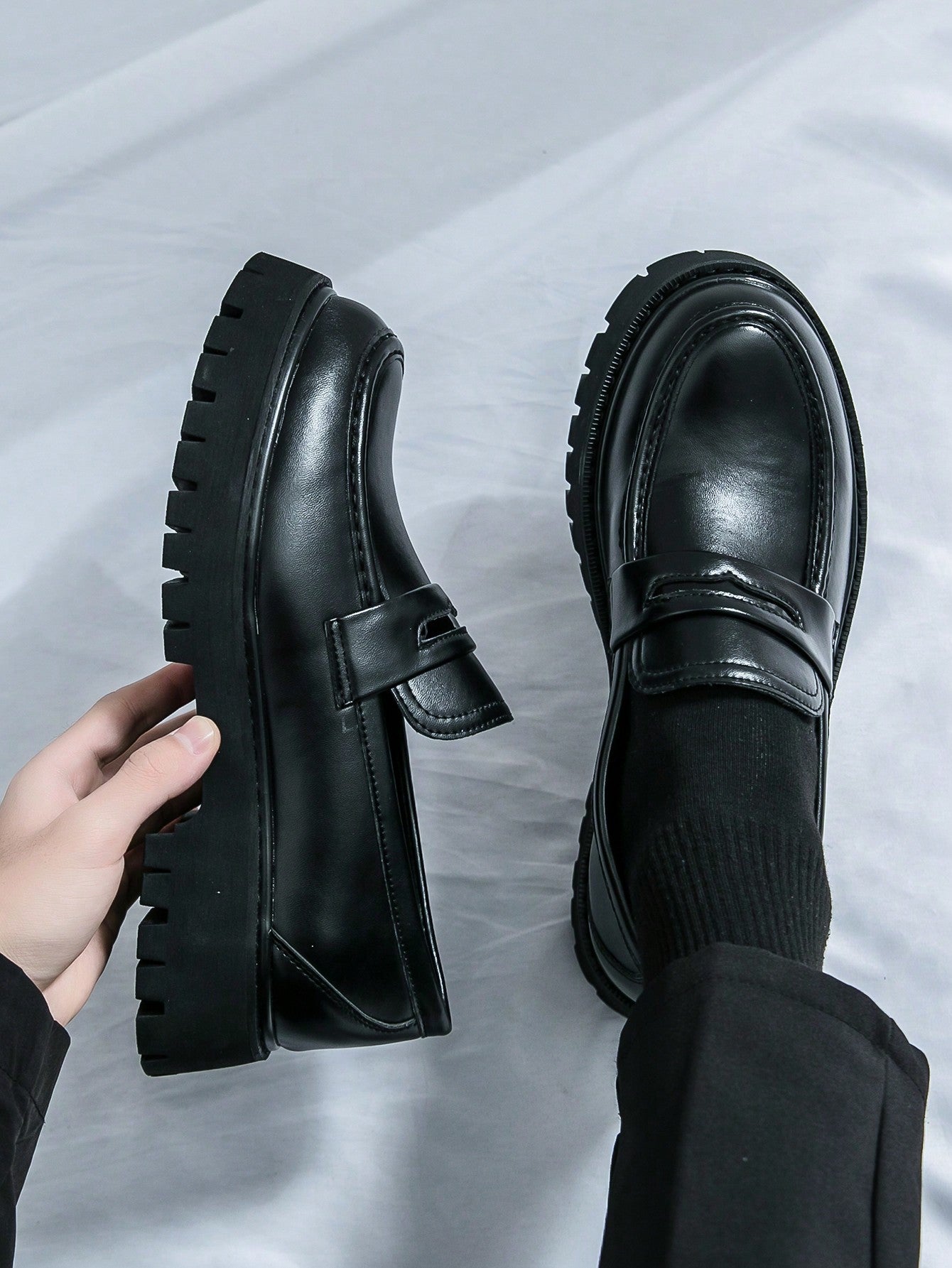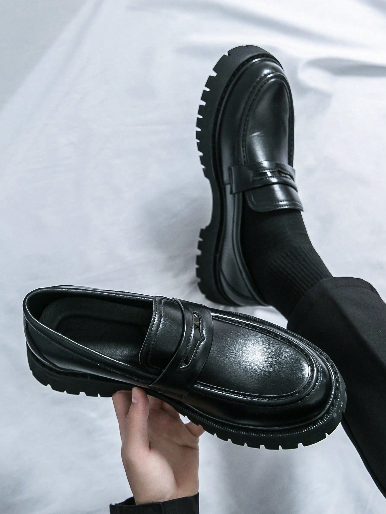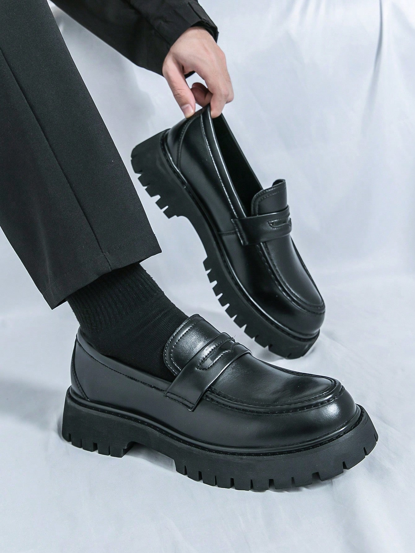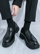 Men's Slip-On Loafers - Glossy Black Thick-Soled Non-Slip Fashionable Office Casual Shoes