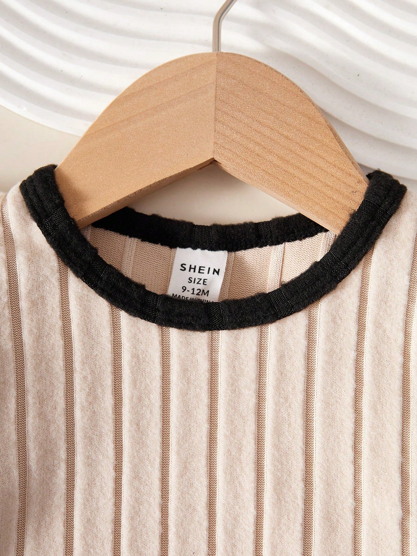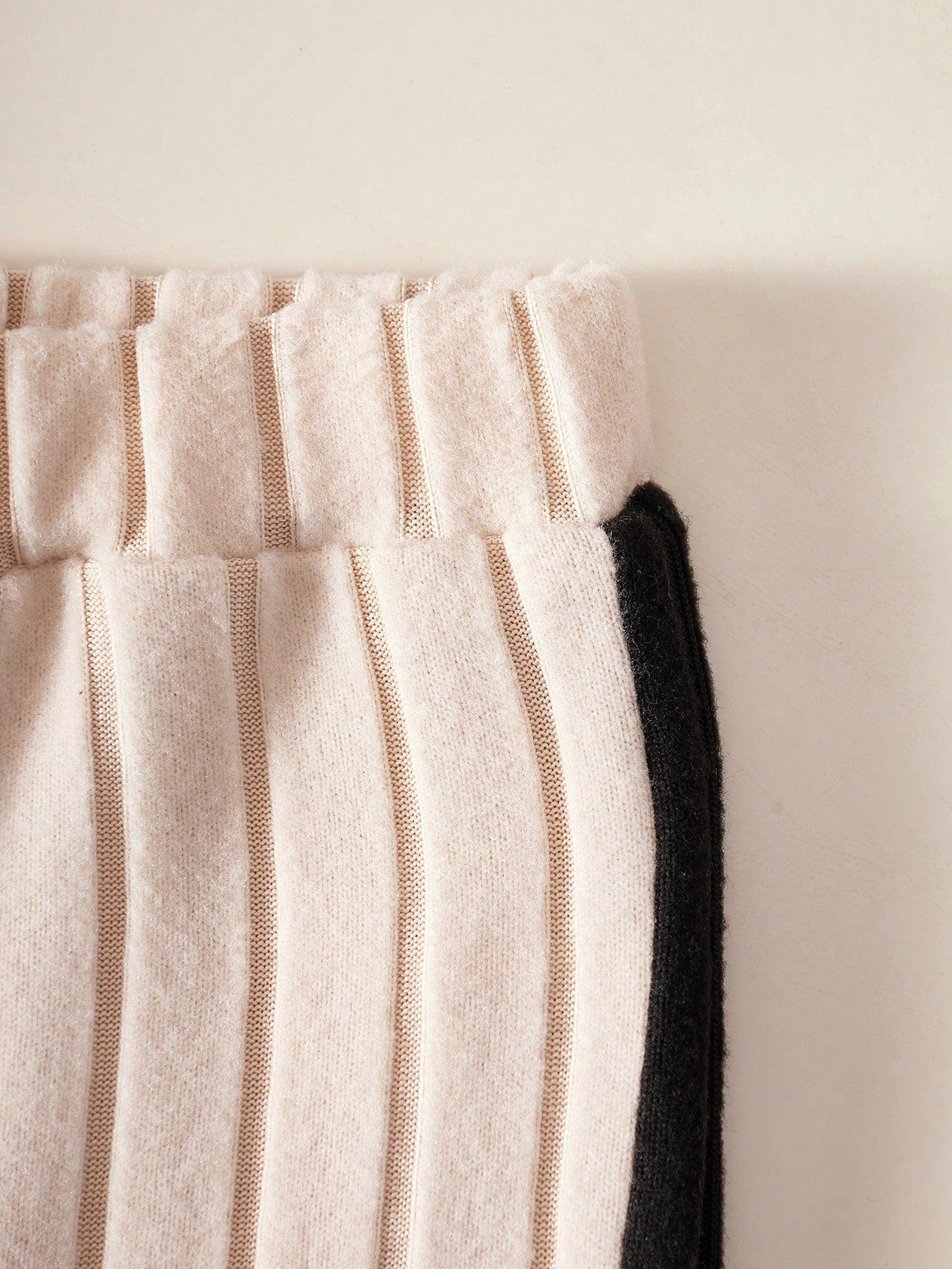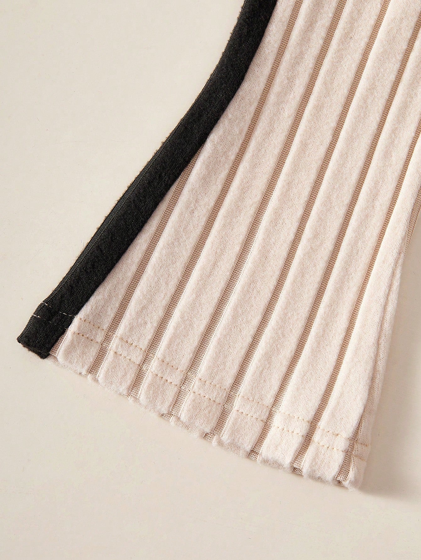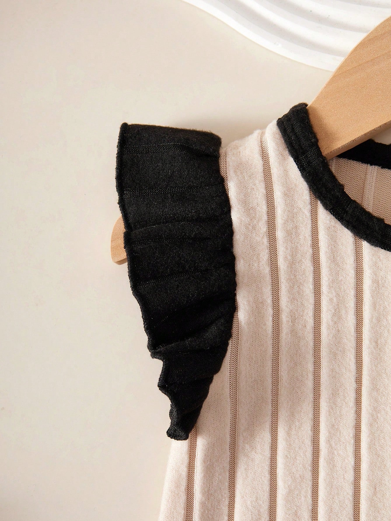 2pcs Baby Girls Spring/Summer Casual Fashion Color Block Ribbed Flare Sleeve Top And Pants Set