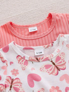 2pcs/Set Spring Baby Girls' Solid Color Dress With Butterfly, Heart & Flower Prints