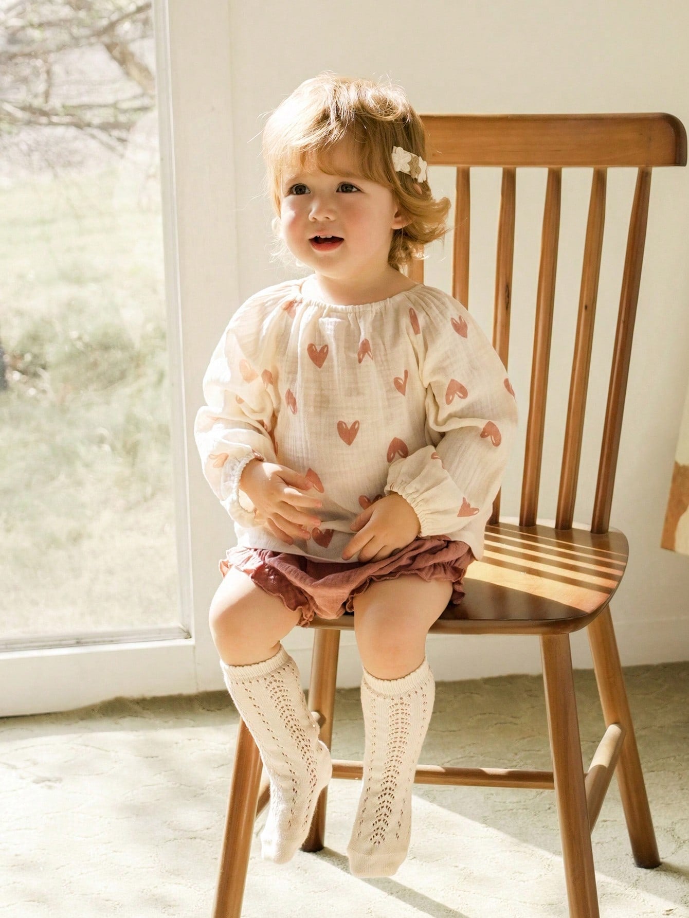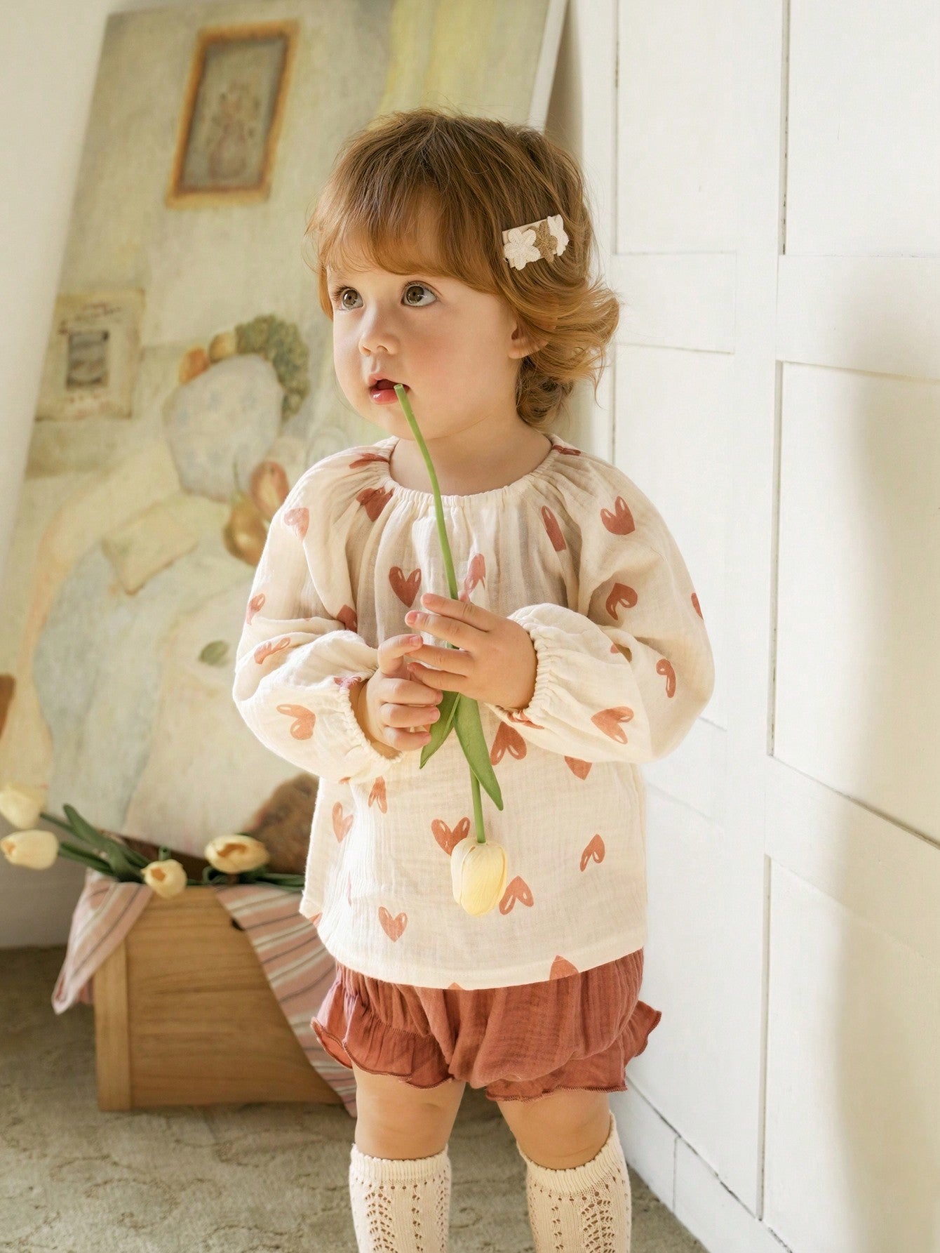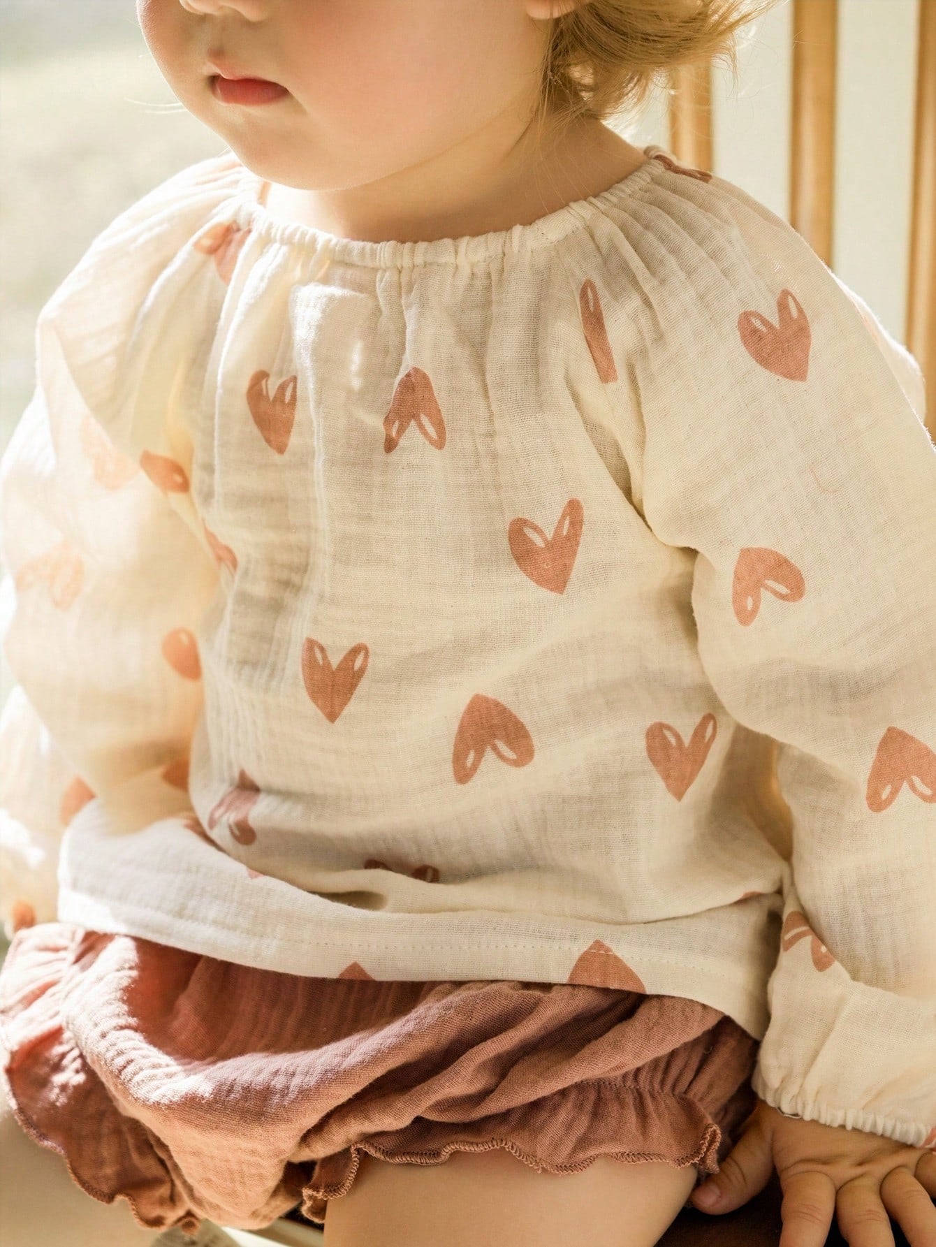 Babygirl Valentine's Day Heart Print Spring/Summer Round Neck Long Sleeved Top With The Highest Quality