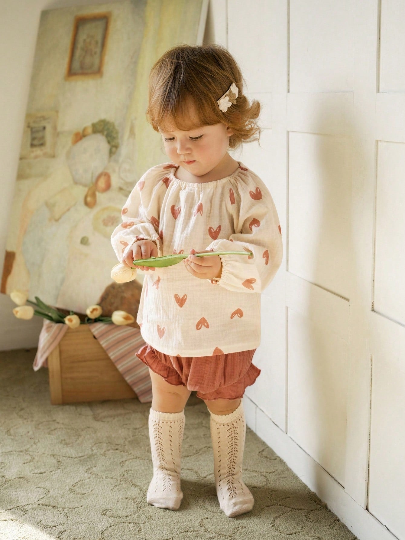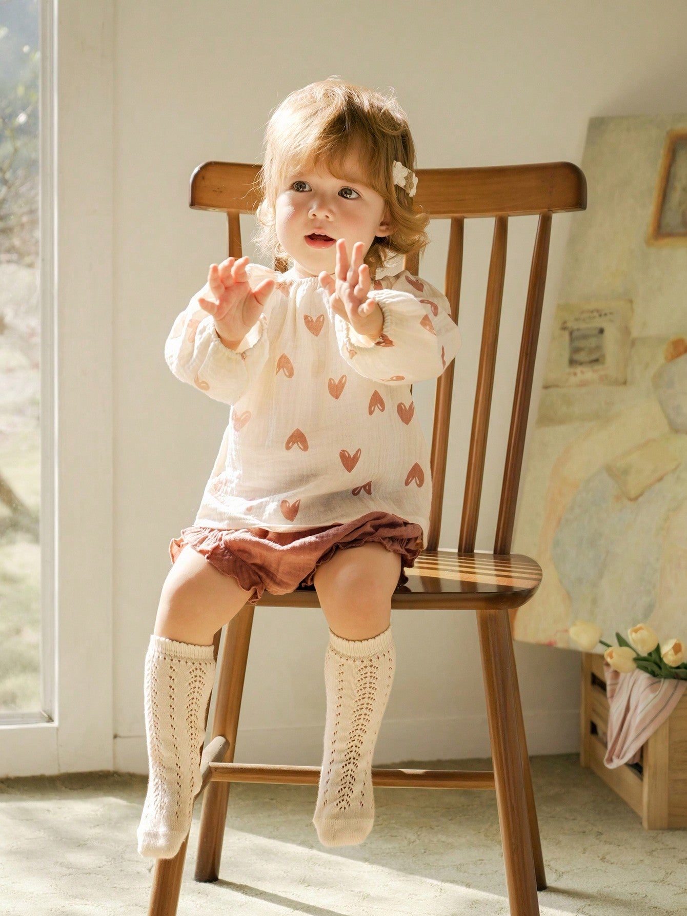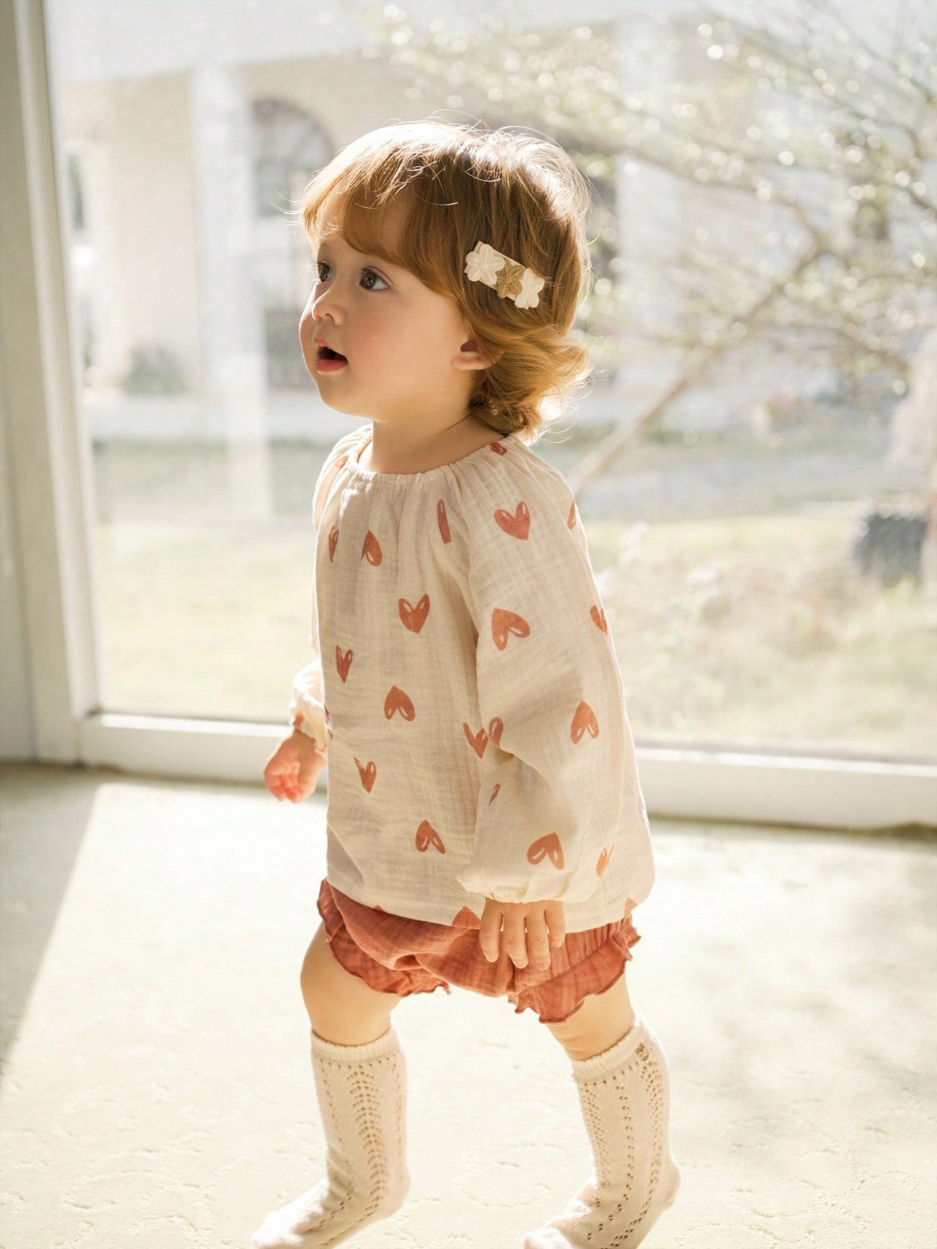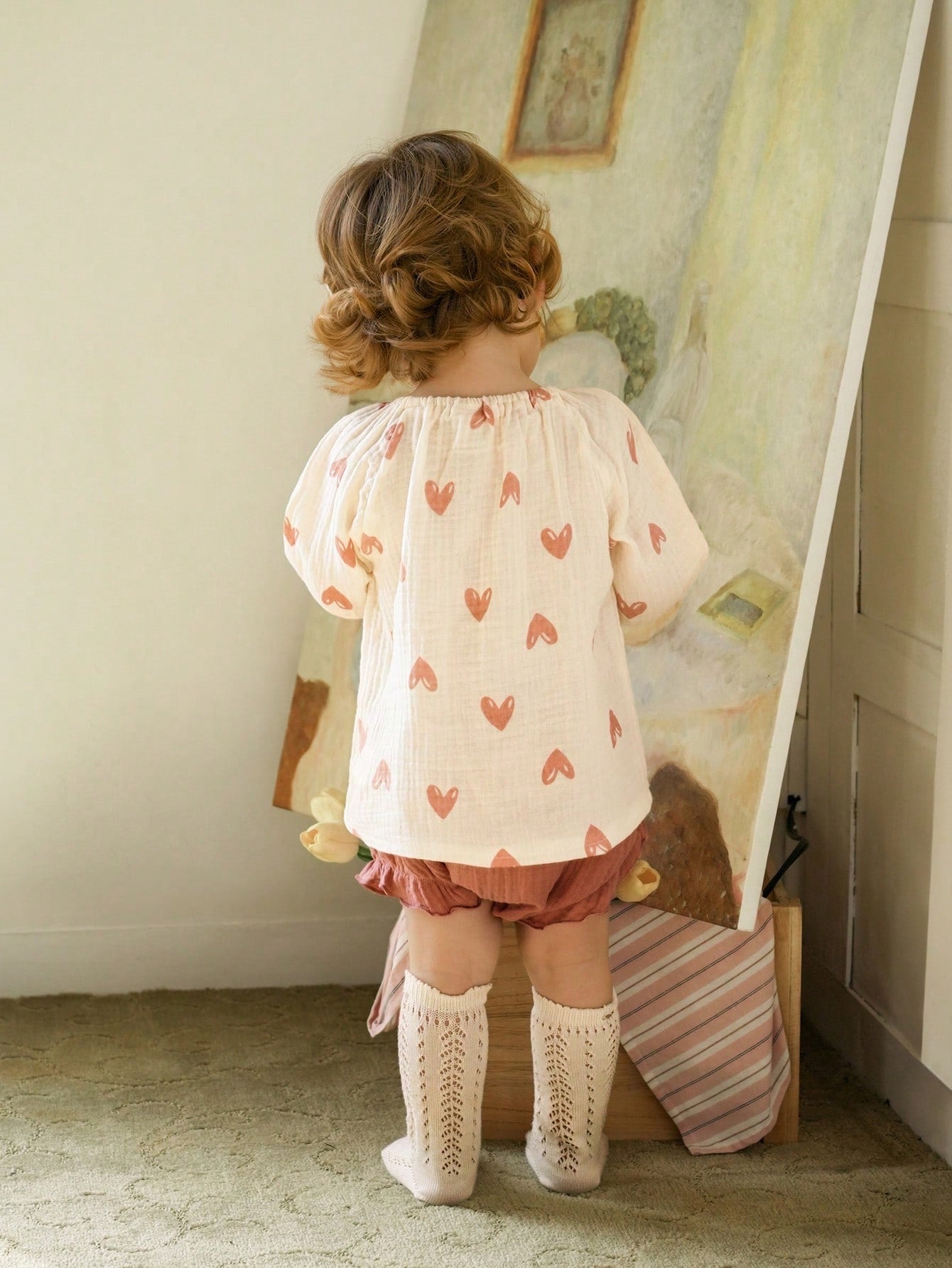 Babygirl Valentine's Day Heart Print Spring/Summer Round Neck Long Sleeved Top With The Highest Quality