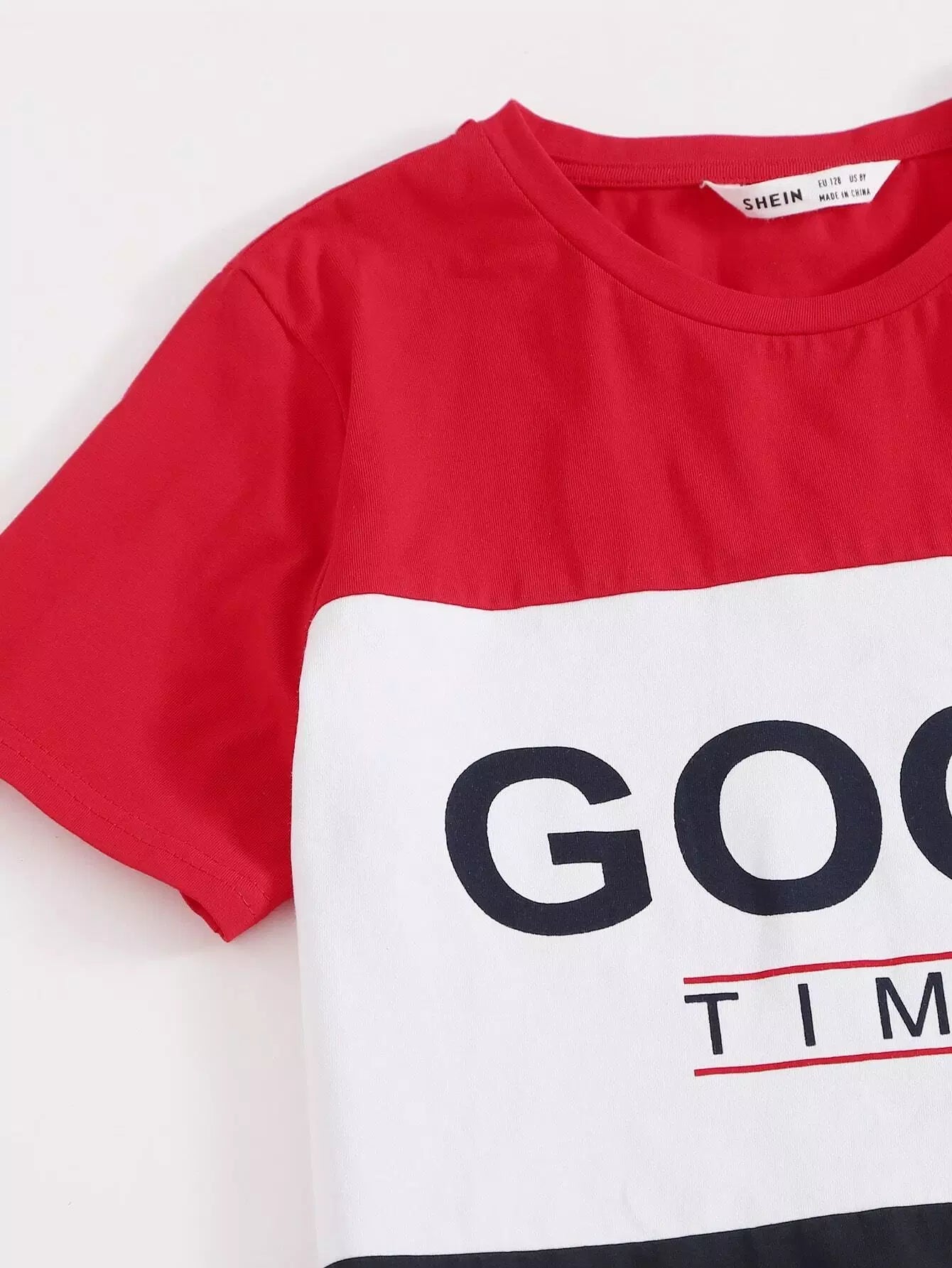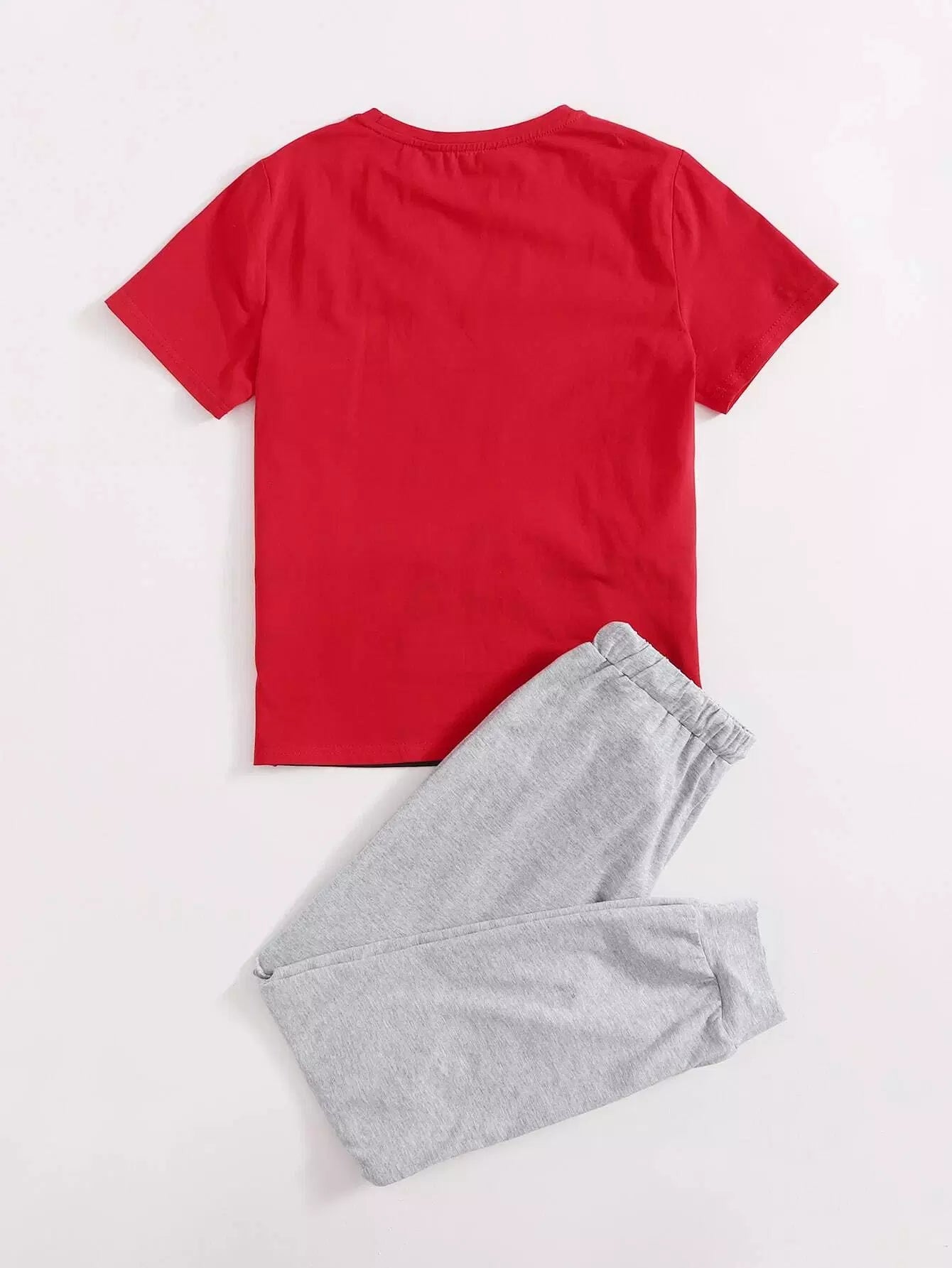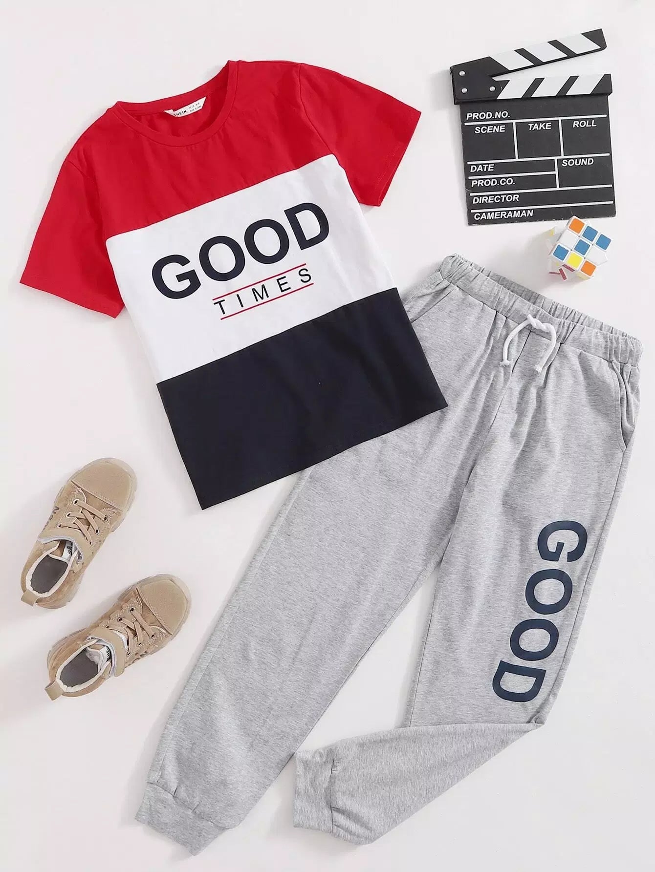 Boys Slogan Graphic Colorblock Tee & Joggers Set
