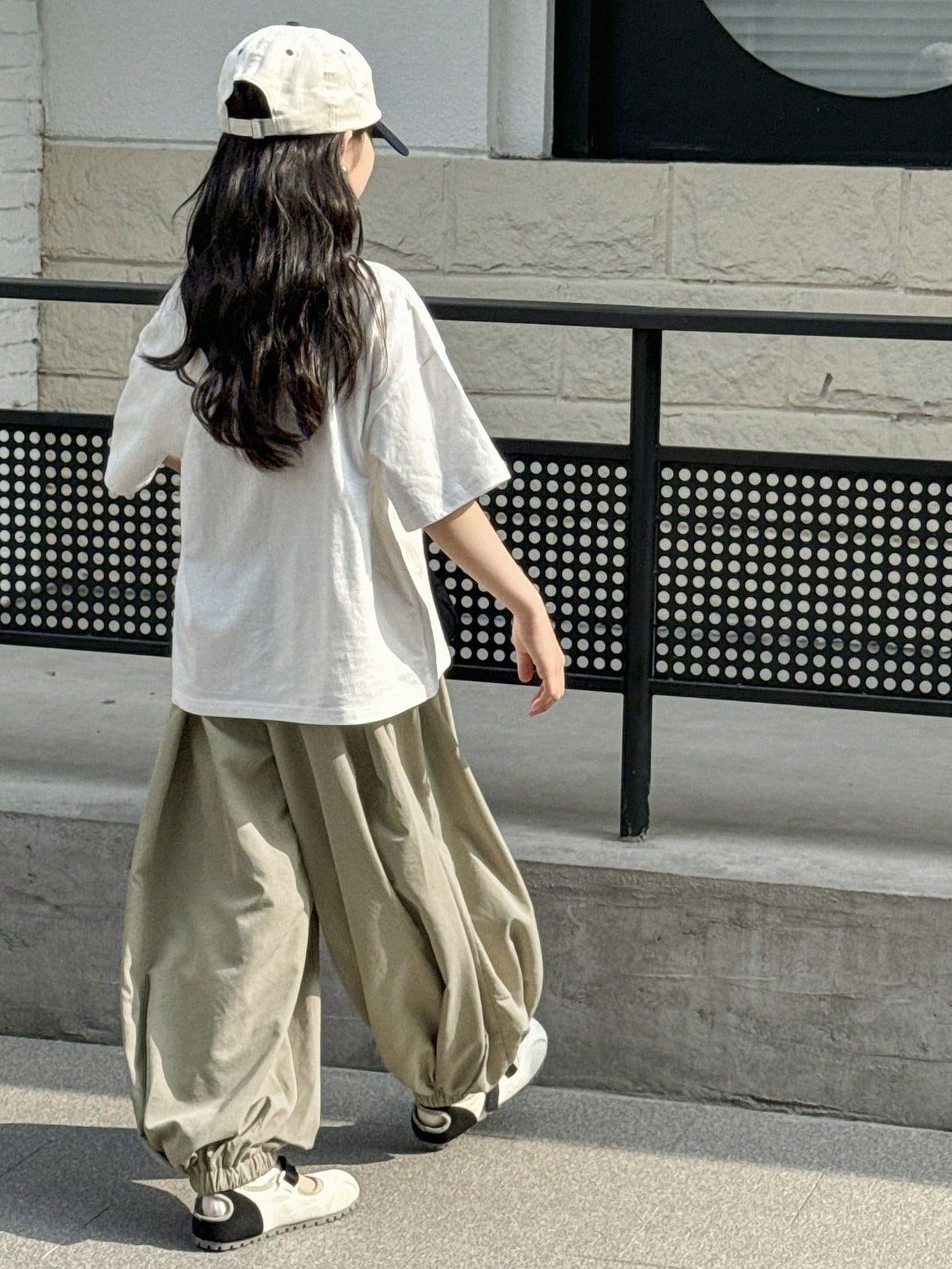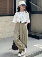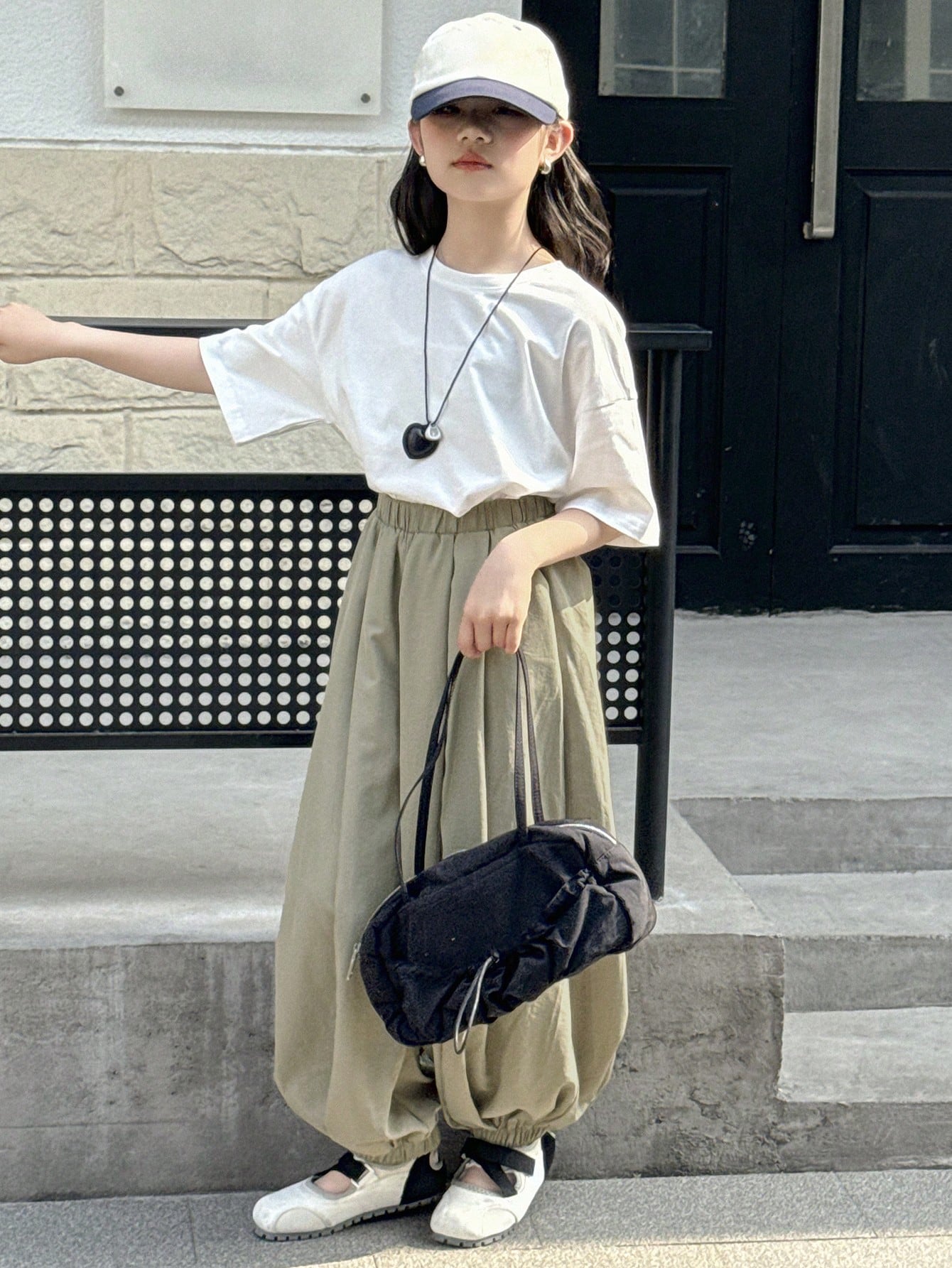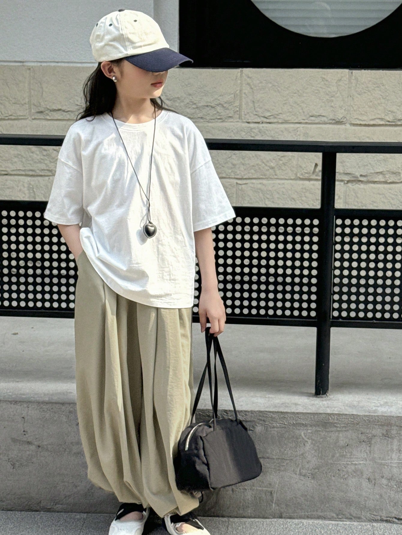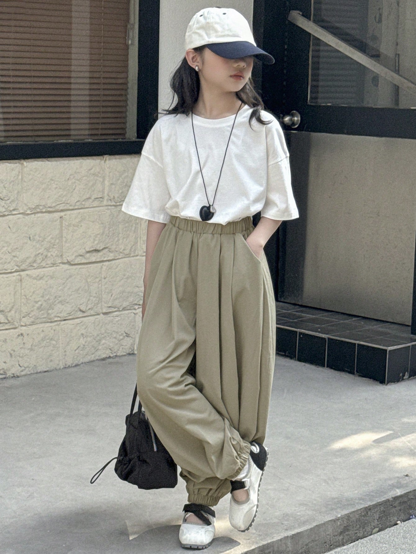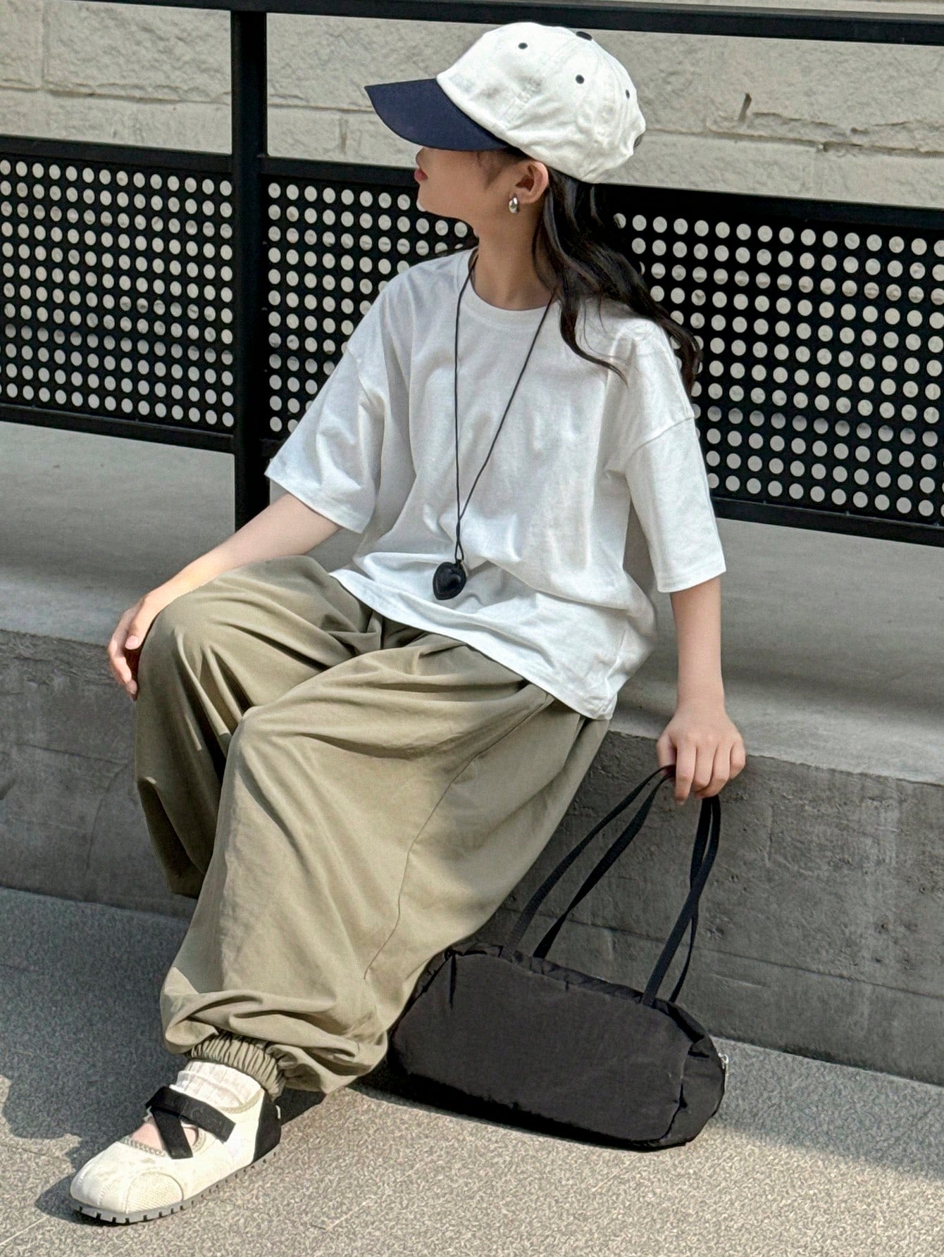 kids DAZY Tween Girls' Summer Solid Color Dropped Shoulder Tee And Pants Casual 2-Piece Set
