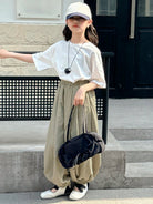 DAZY Tween Girls' Summer Solid Color Dropped Shoulder Tee And Pants Casual 2-Piece Set