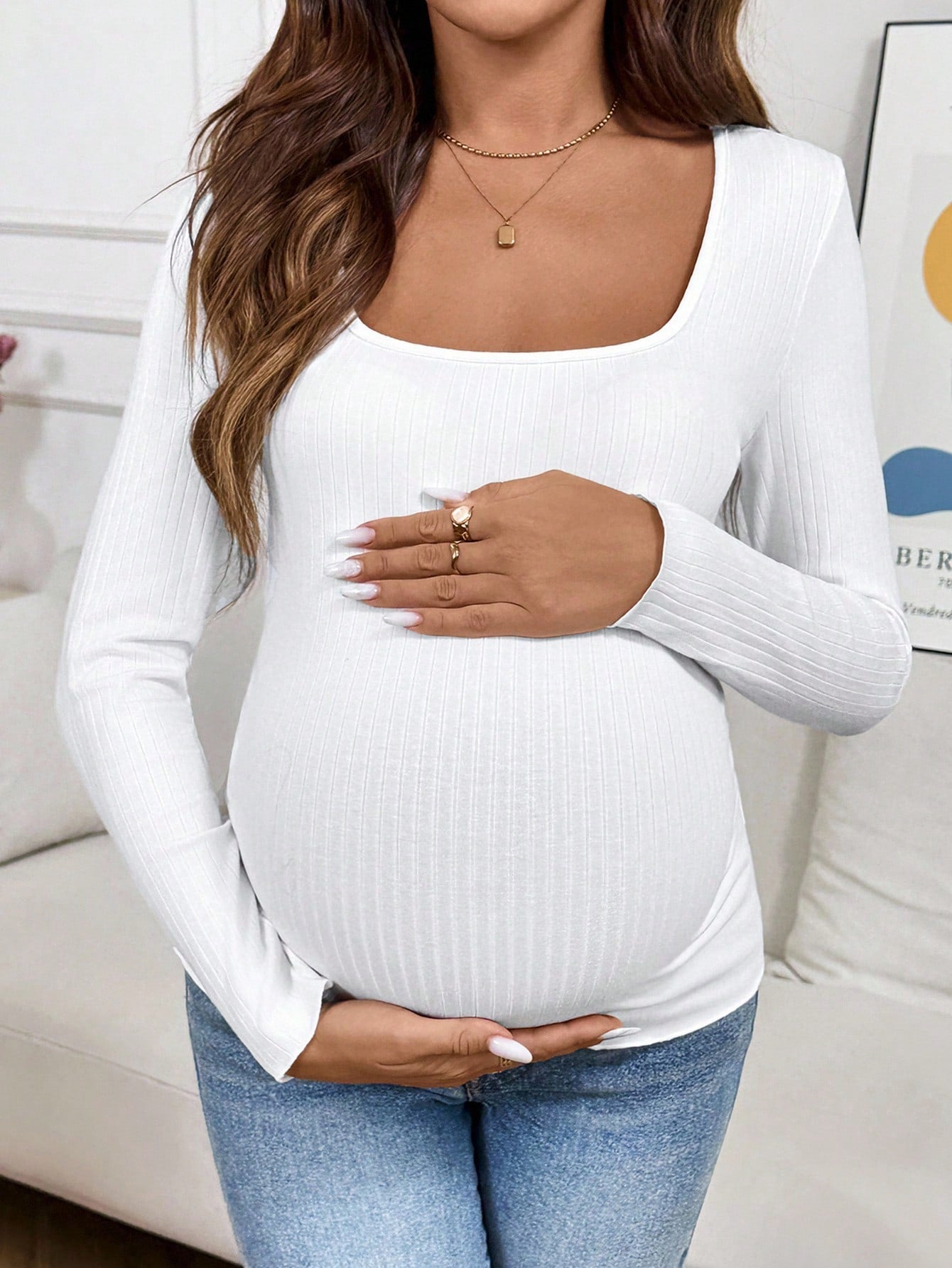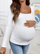 Maternity Solid Color Square Neck Long Sleeve Ribbed Slim Casual T-Shirt Pregnant Clothes Maternity