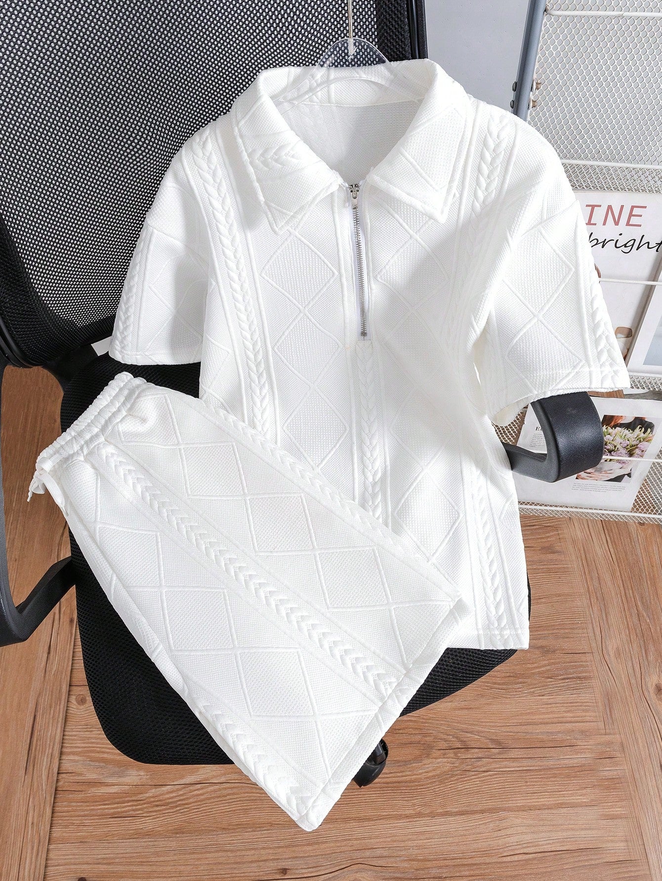 Mirajuku Teen Boys' Casual Zipper Half Placket Polo Shirt And Shorts