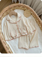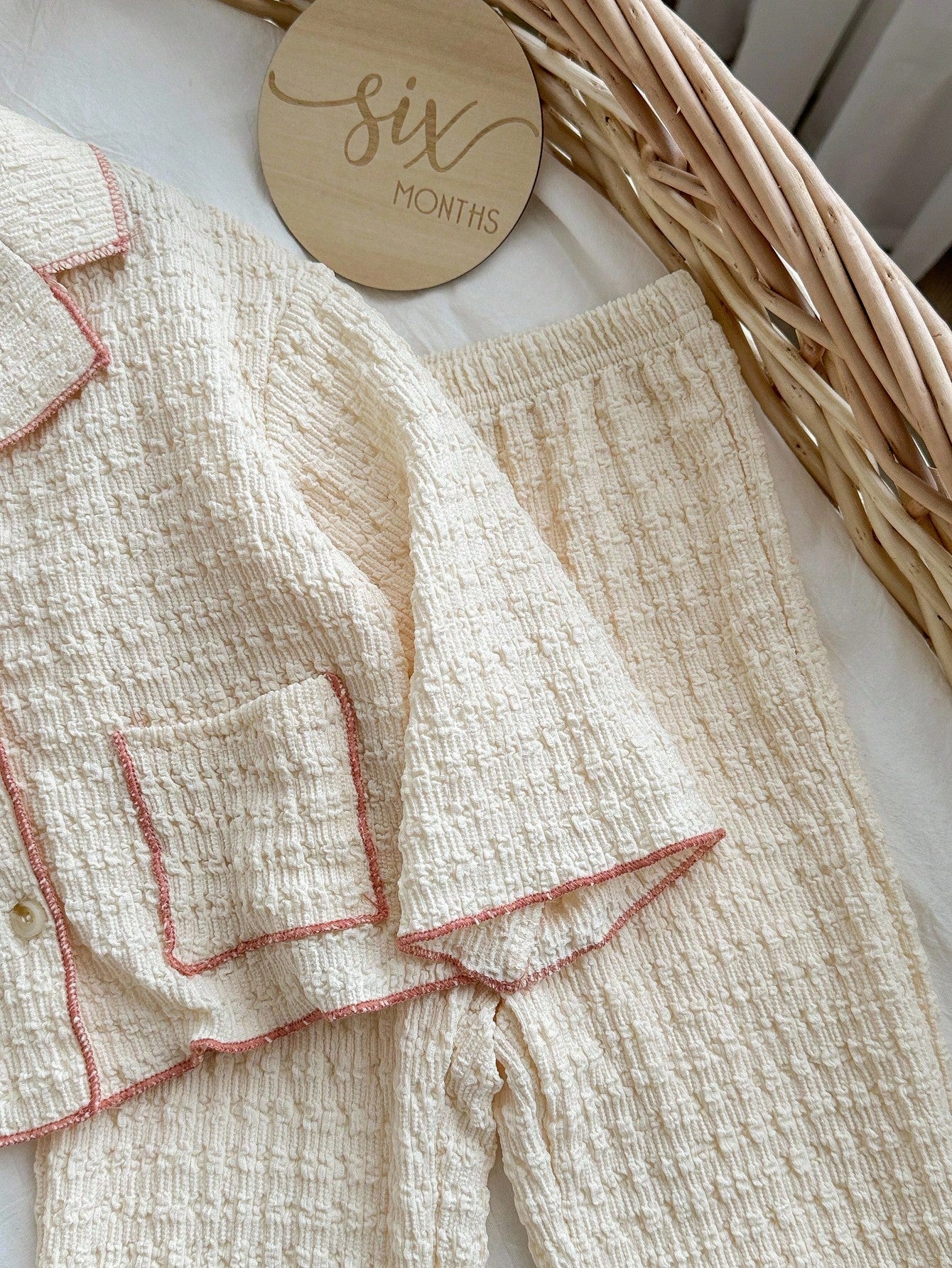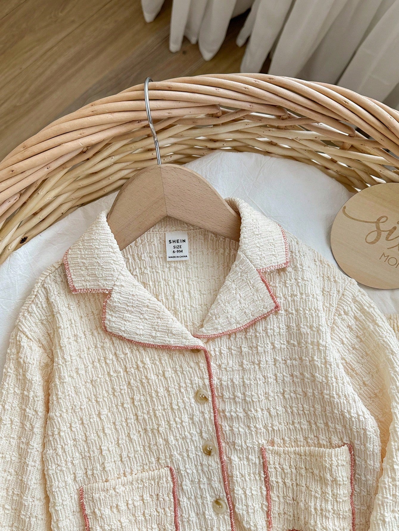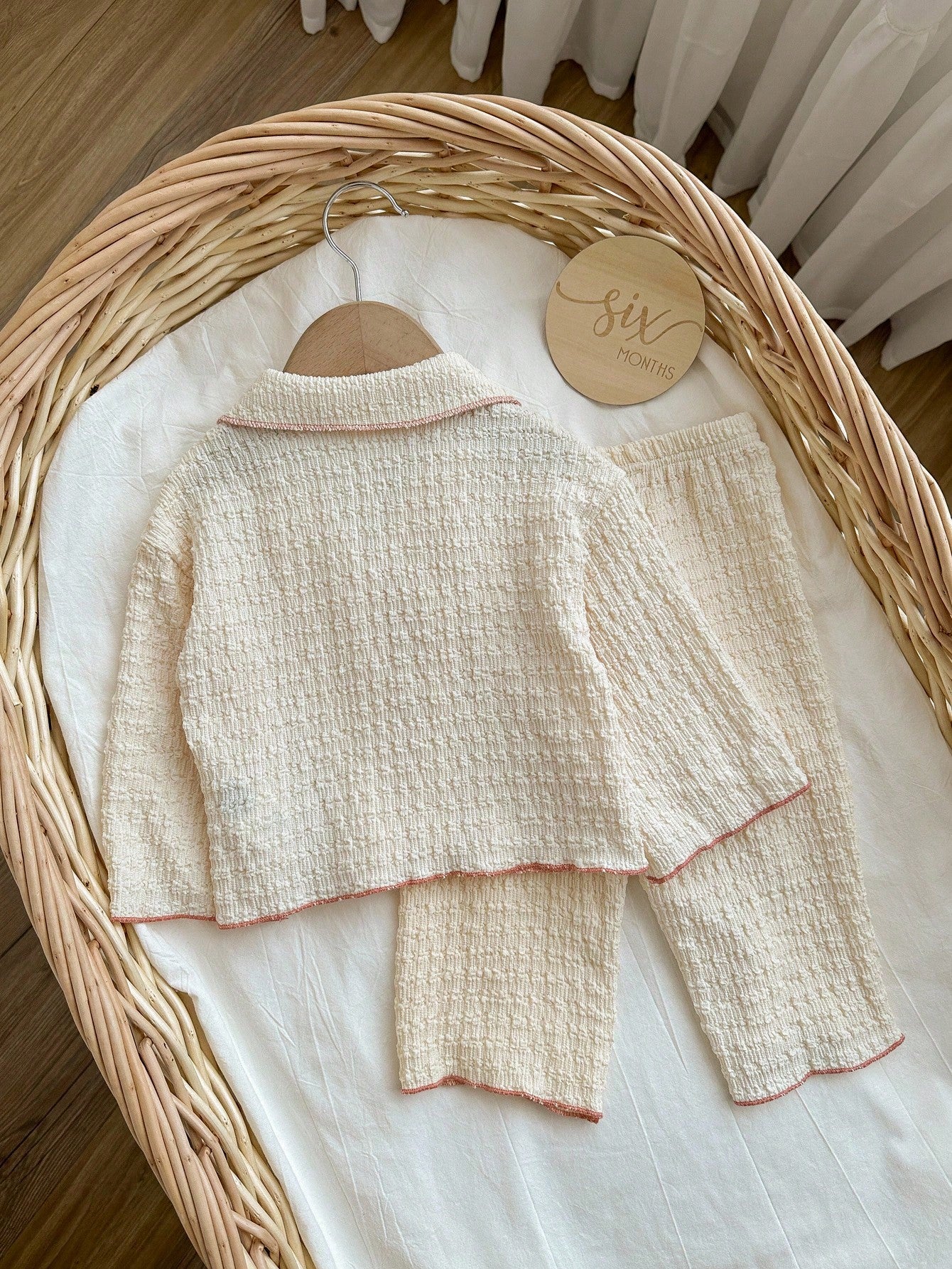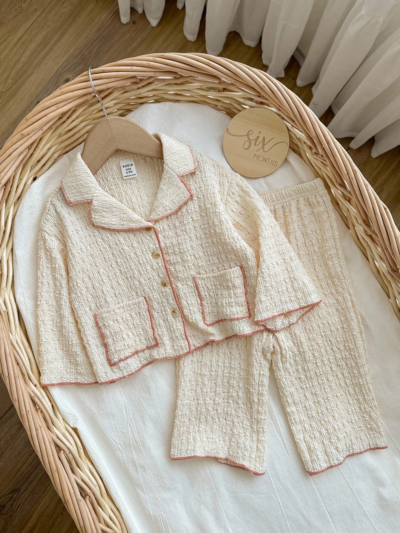 Navy Blue 2pcs Baby Girls Casual Blazer Collar Top And Long Pants Loungewear Set