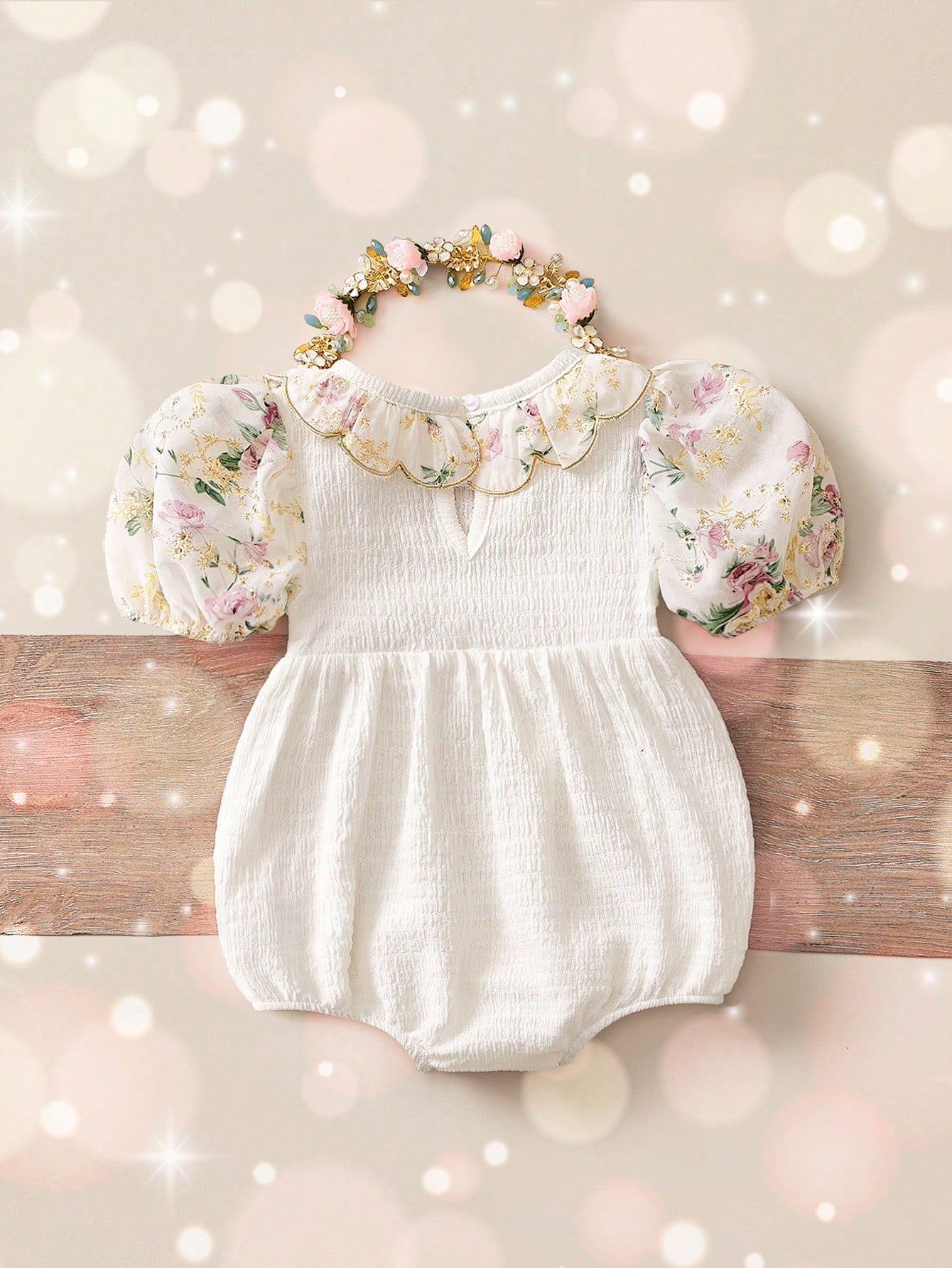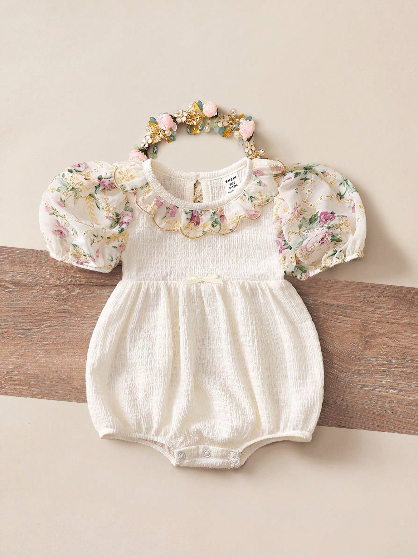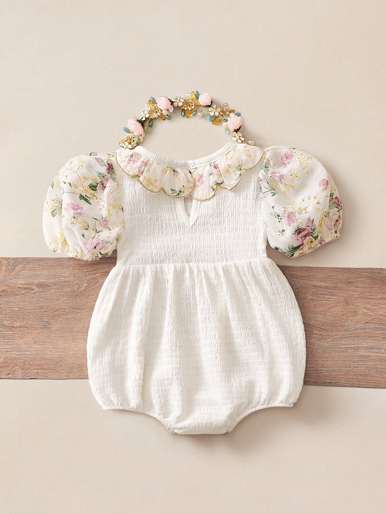 Newborn Baby Girls' Cute Apricot Floral Pattern Peter Pan Collar Bodysuit