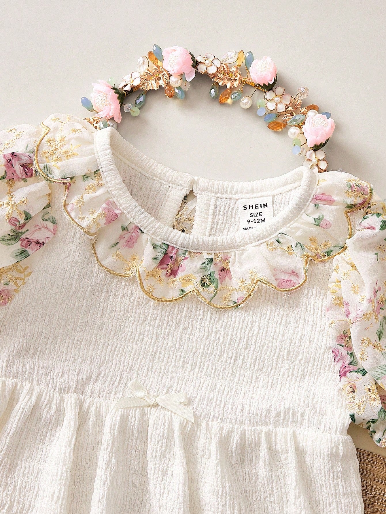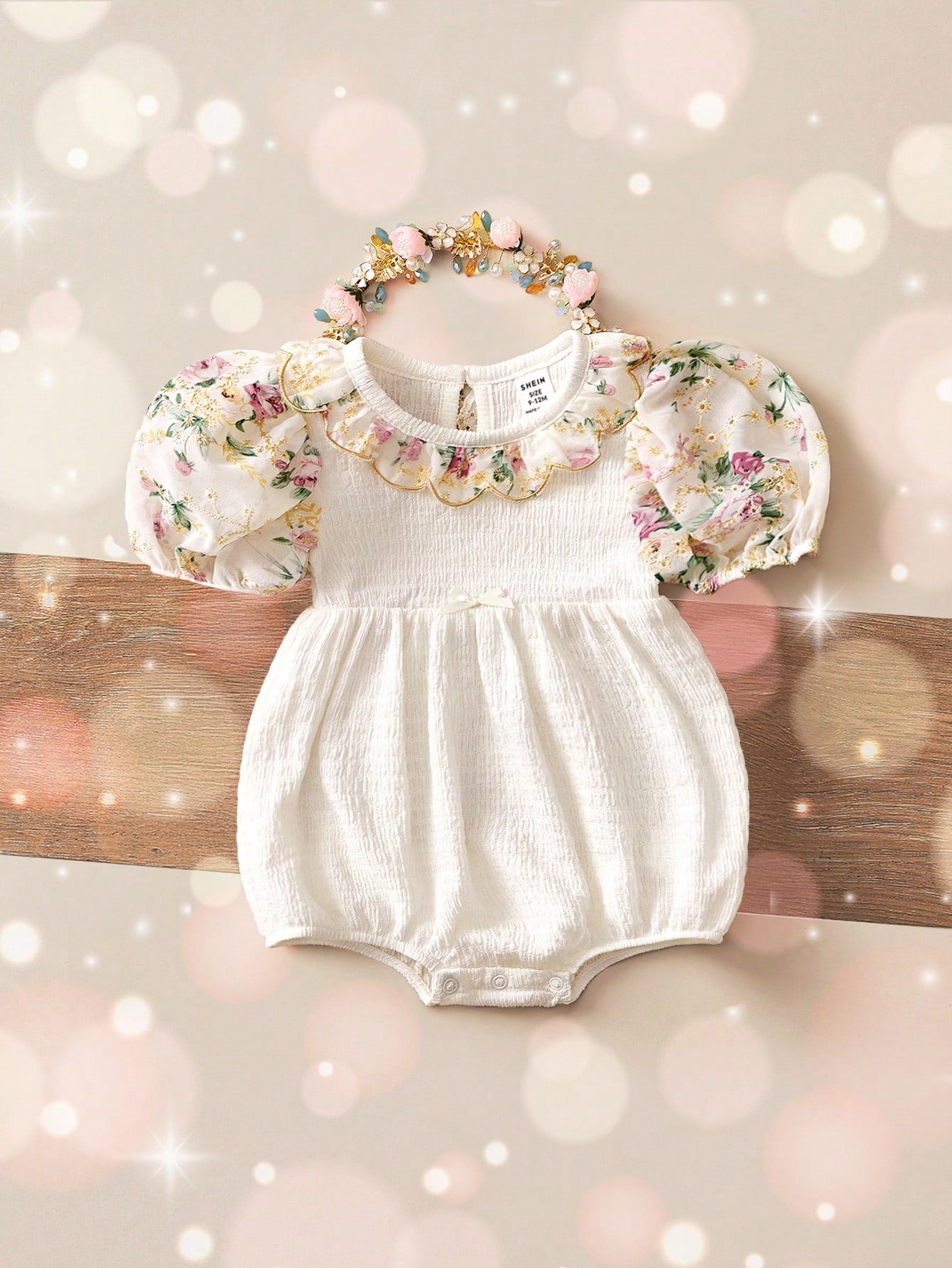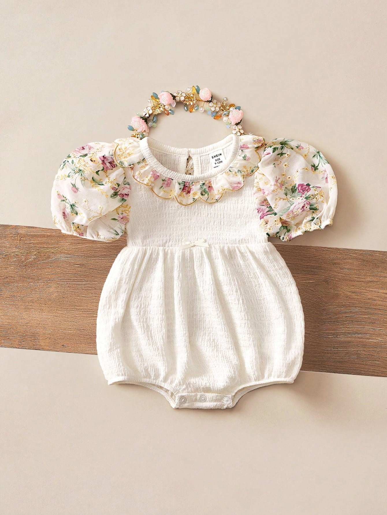 Newborn Baby Girls' Cute Apricot Floral Pattern Peter Pan Collar Bodysuit