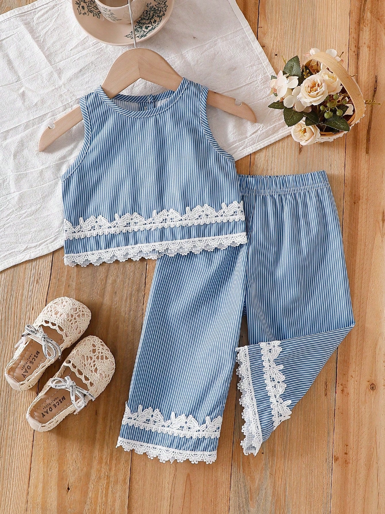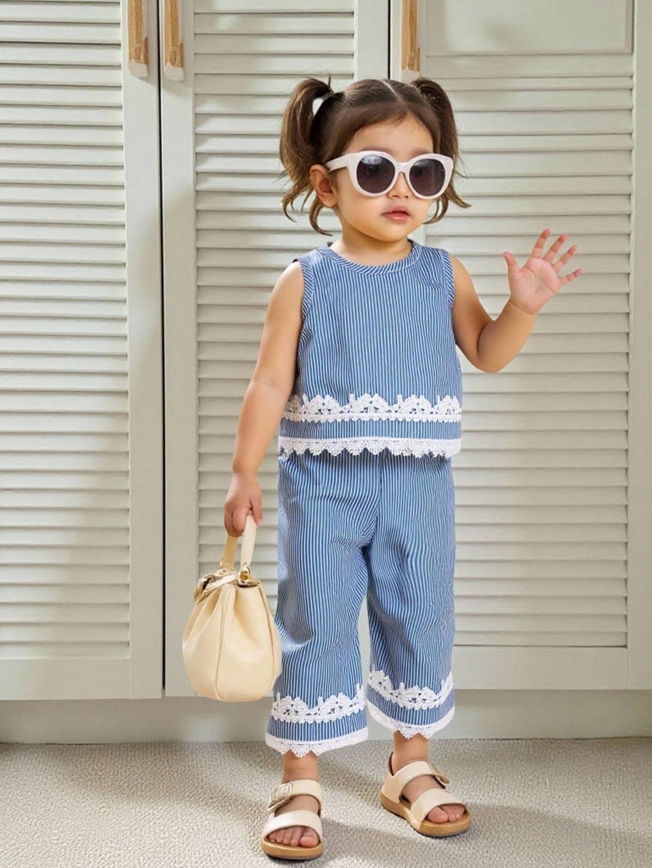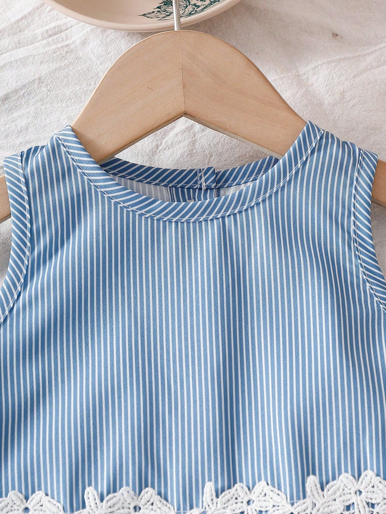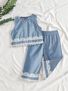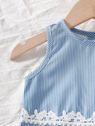 Playful Pals Baby Girl Round Neck Sleeveless Blue Top Elastic Waist Sweet Suitable For Outdoor