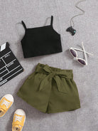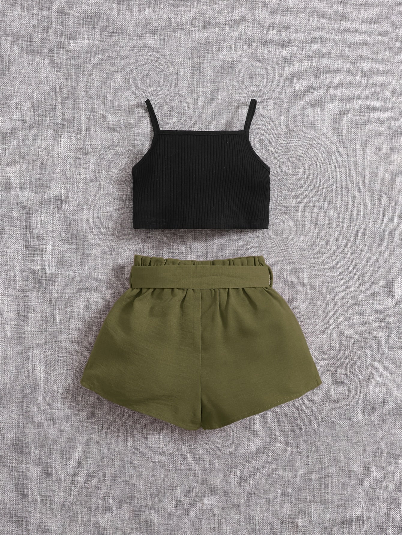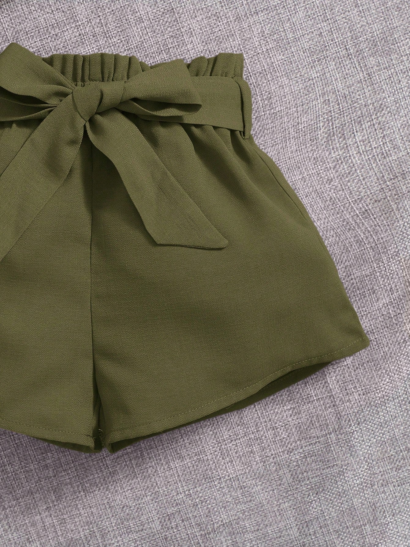 SHEIN Baby Girl Cami Top & Paperbag Waist Belted Shorts