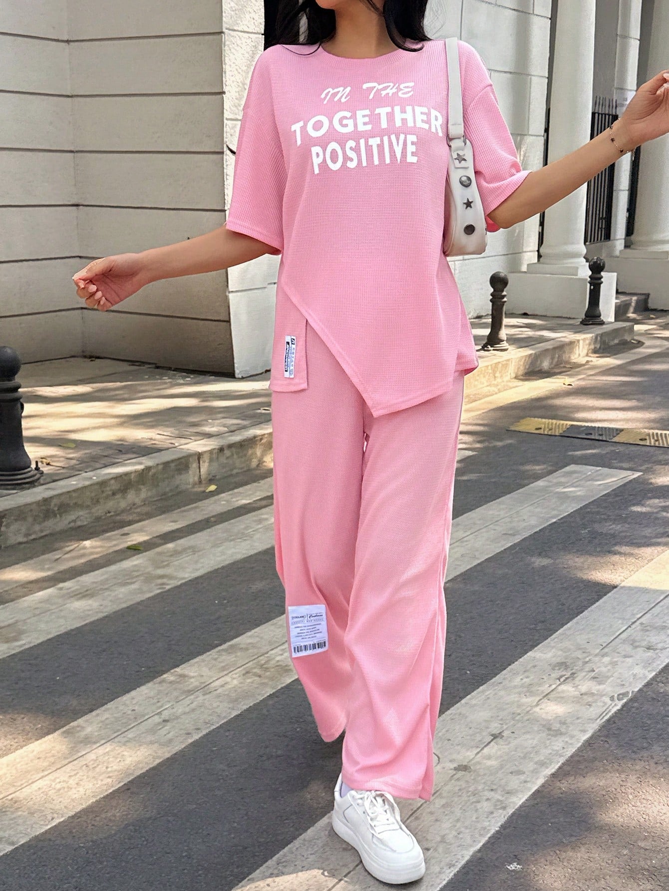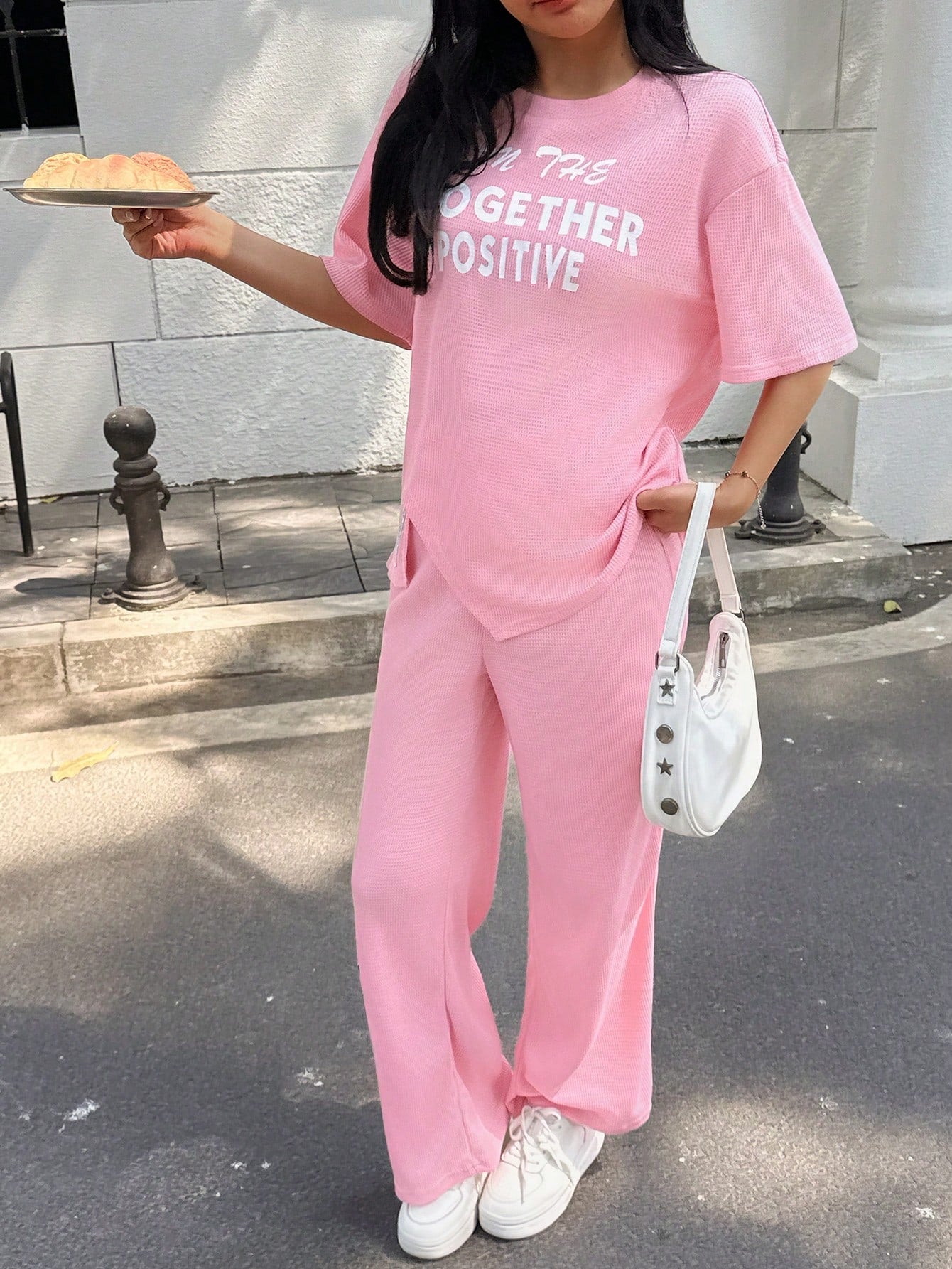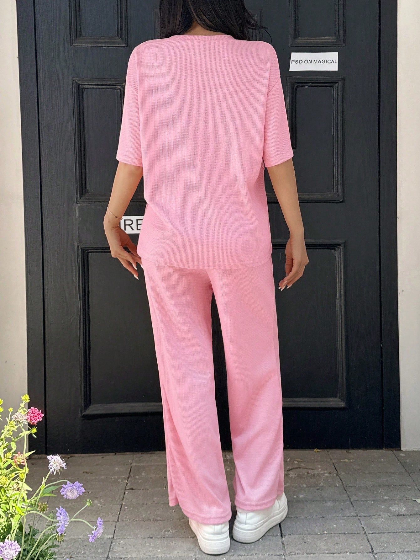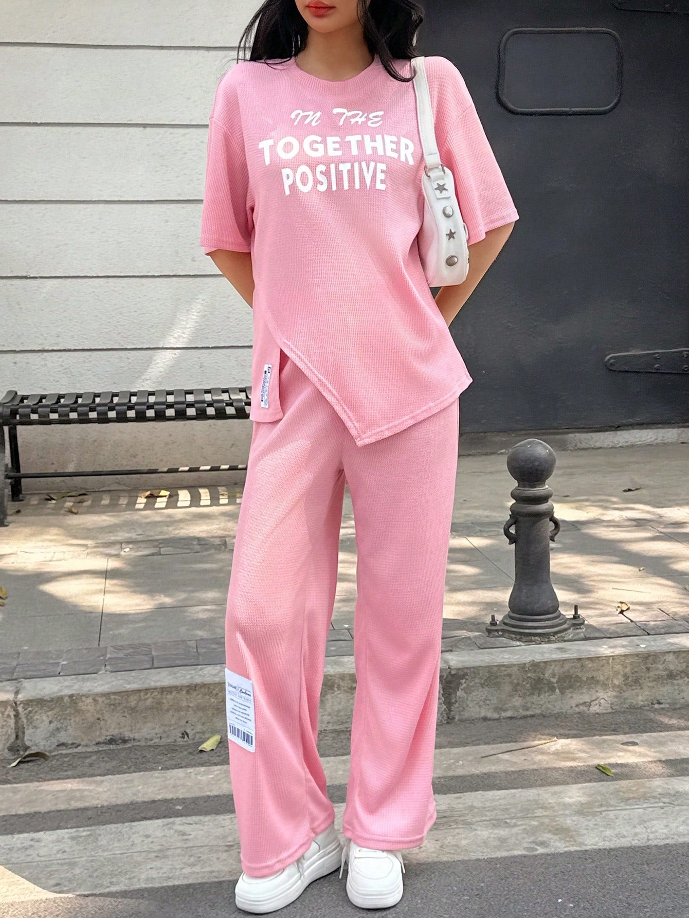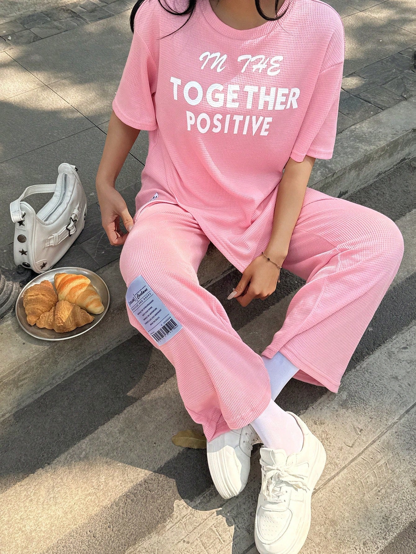 SHEIN Explorewe 2pcs/Set Teenage Girls Casual Sports Loose Comfy Printed Embroidered Short Sleeve Outfit For Summer Casual Sports Commuting