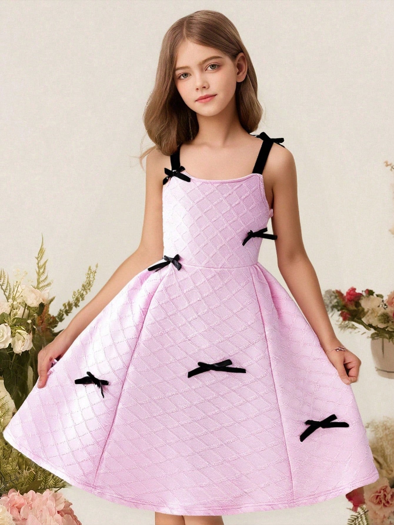SHEIN Explorewe Tween Girl Elegant Bow Decor Cami Dress
