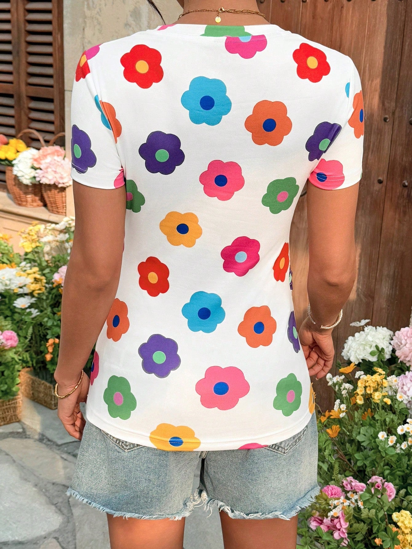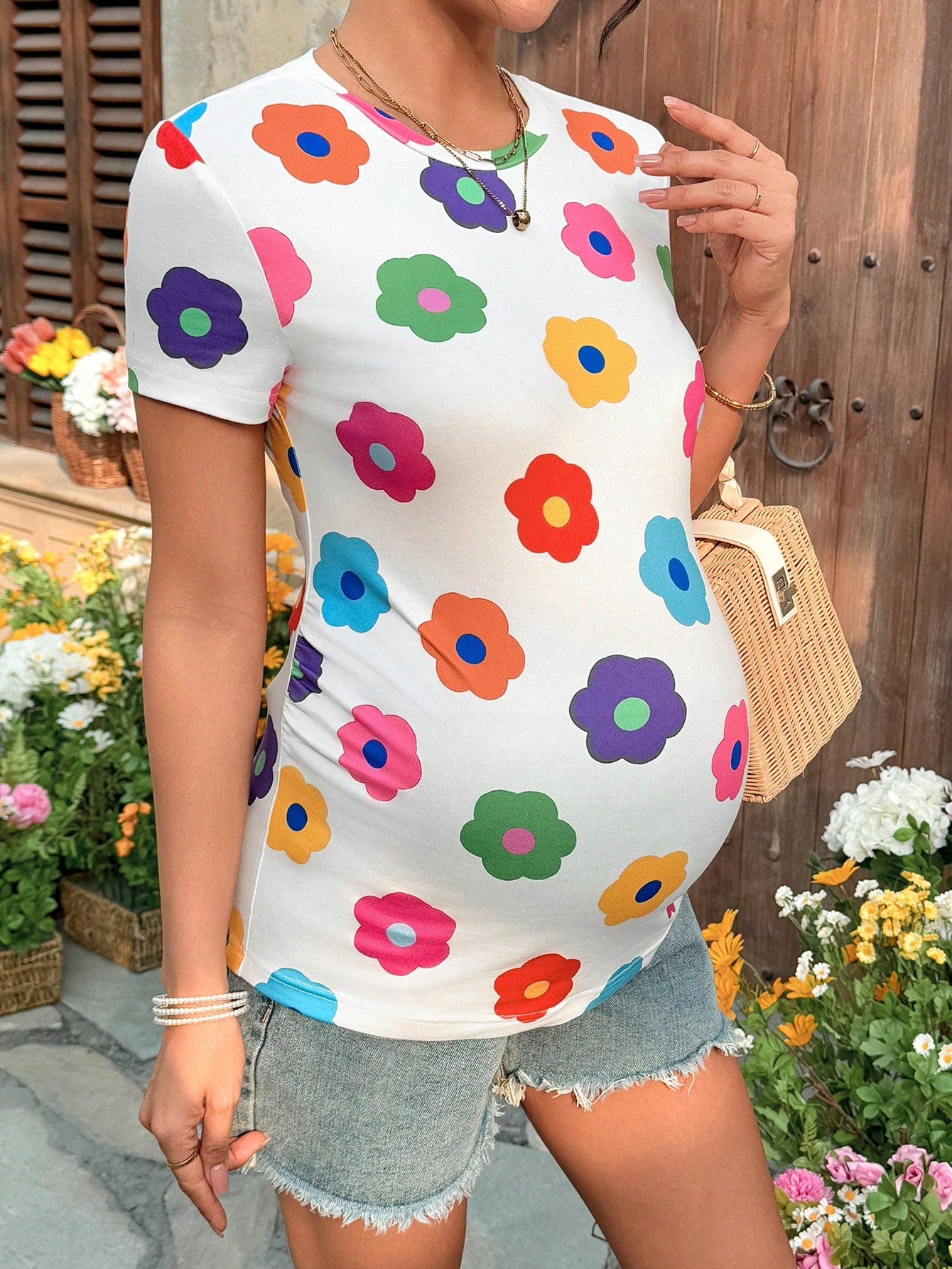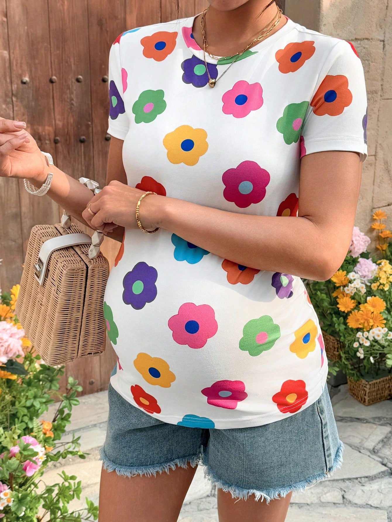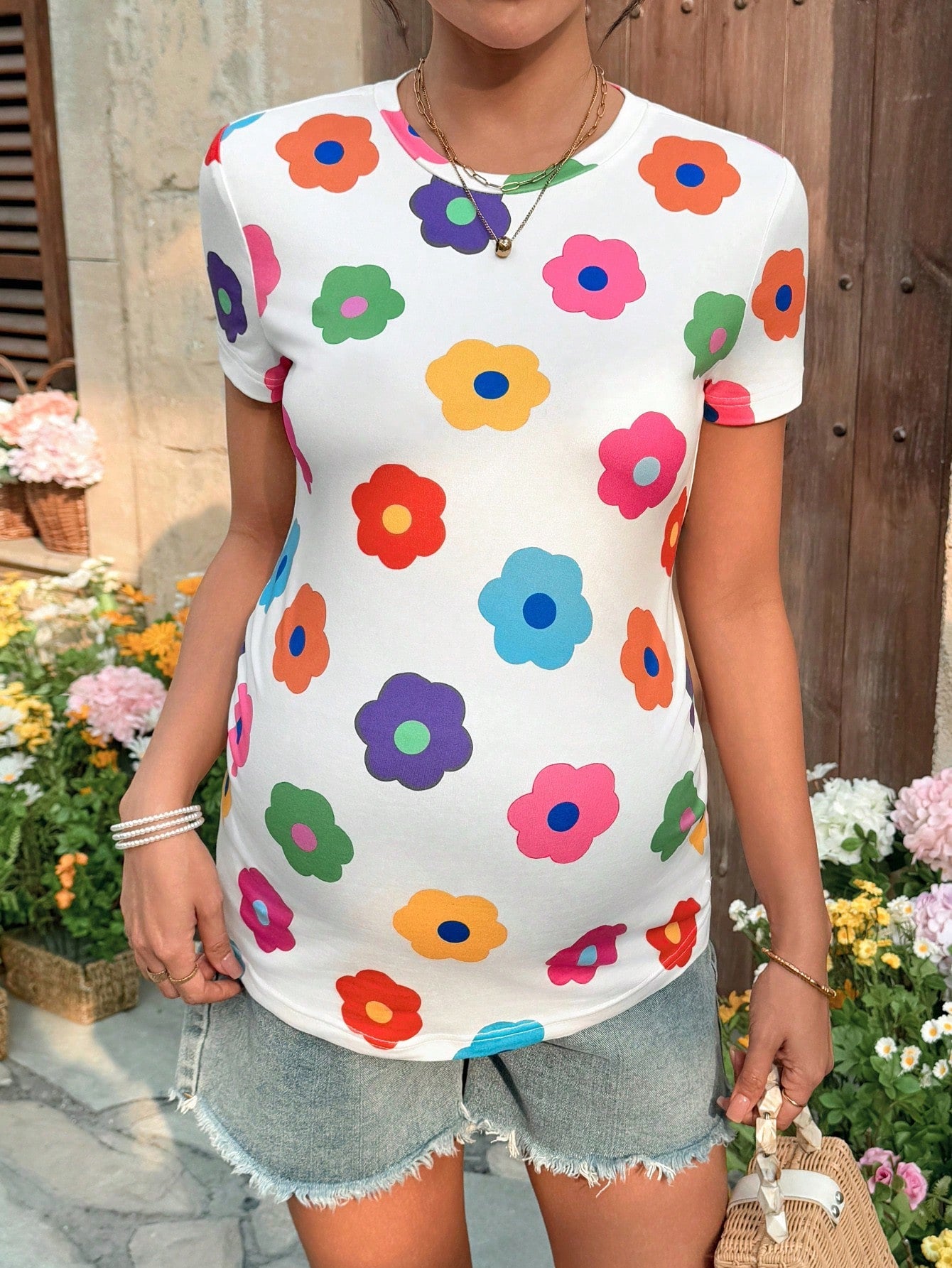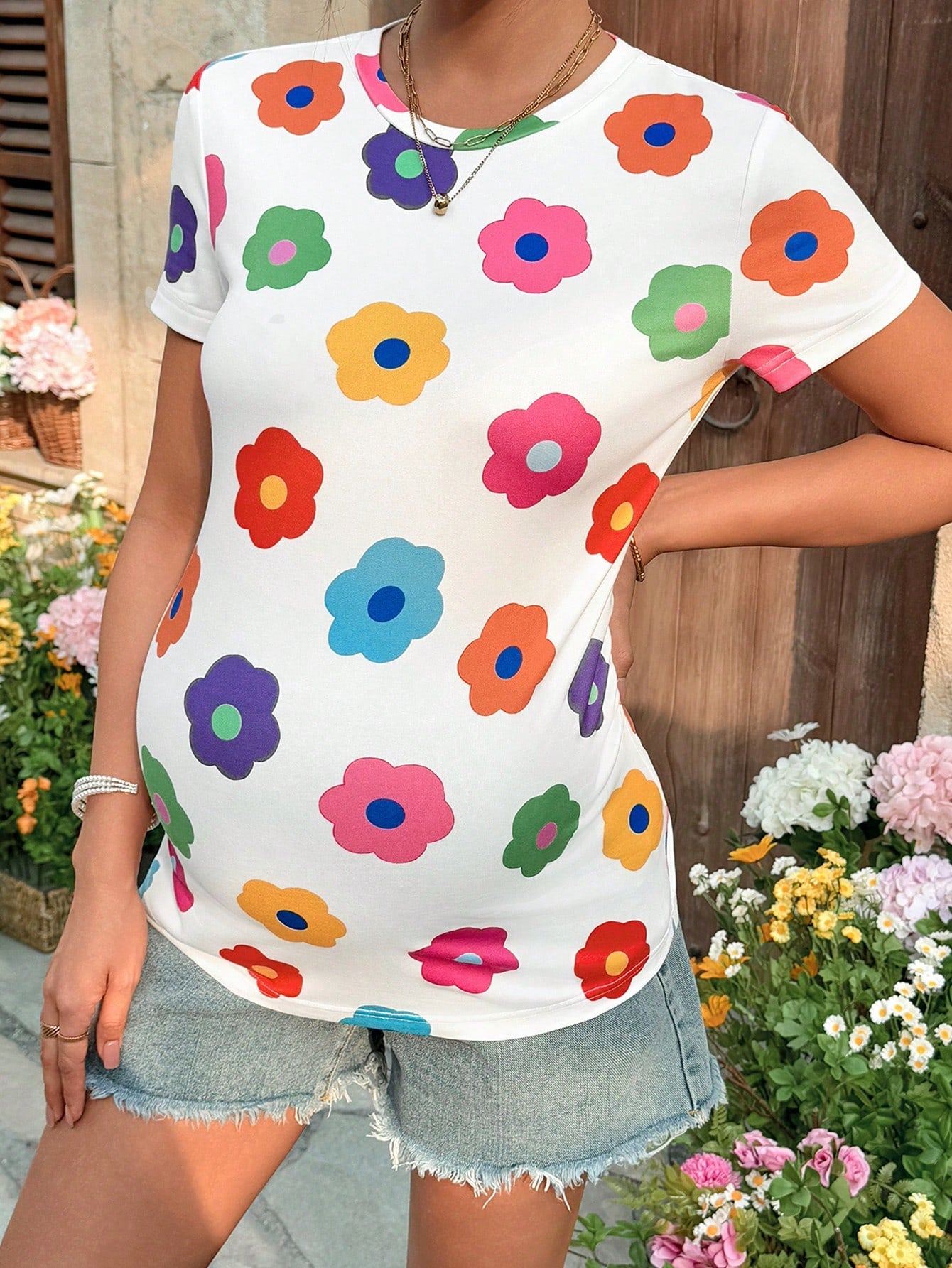 SHEIN Floral Print Round Neck Slim Fit Maternity T-Shirt