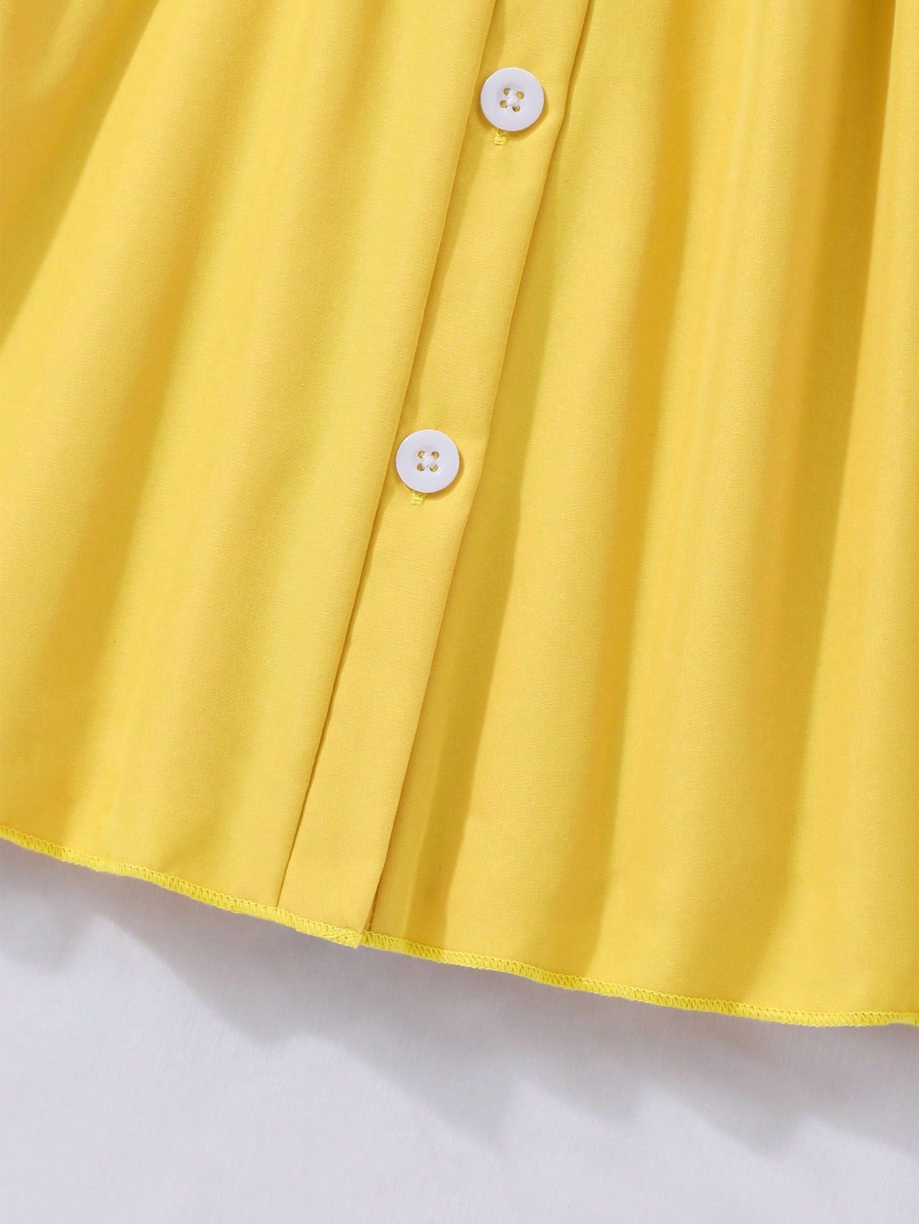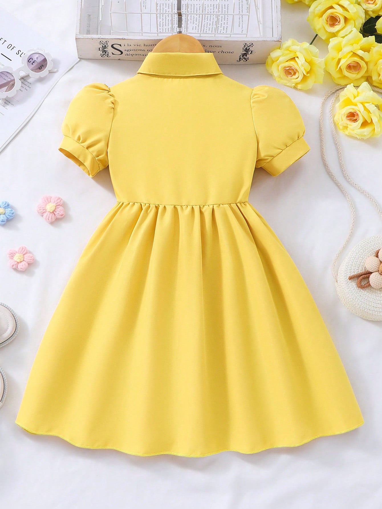 kids SHEIN Young Girl' Floral Decor Collar Open Front Puff Sleeve Summer Casual Dress