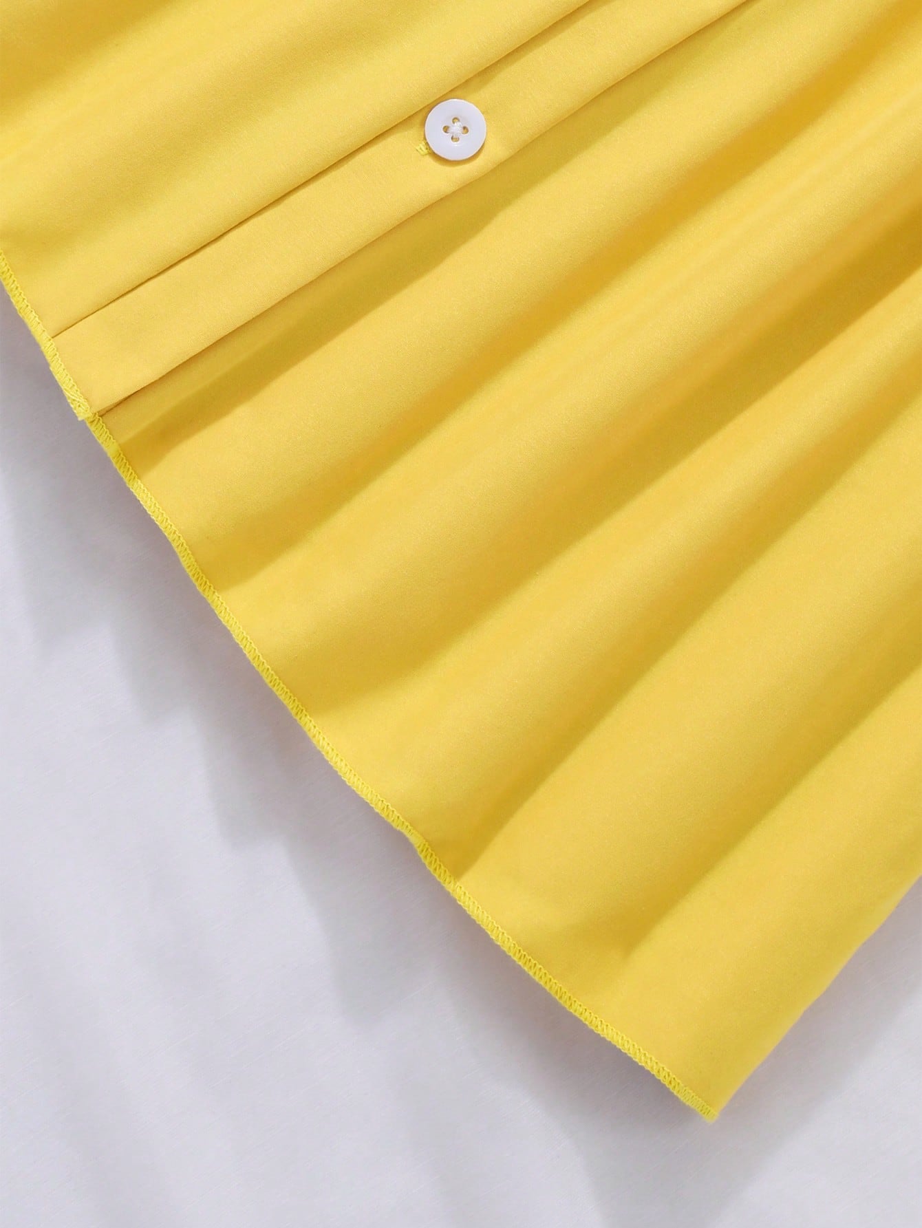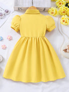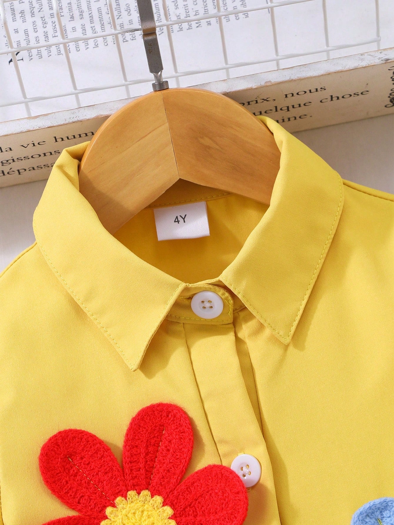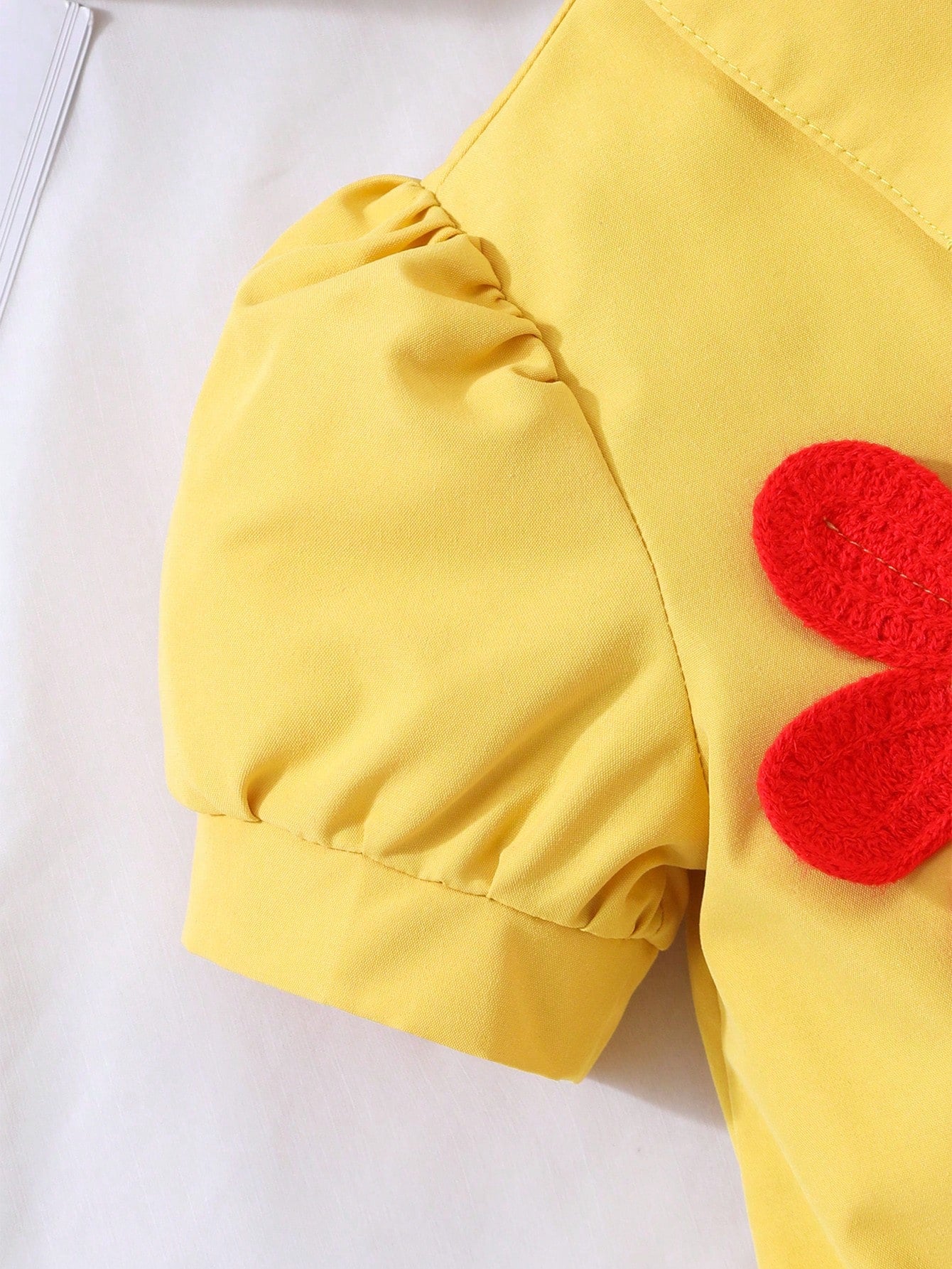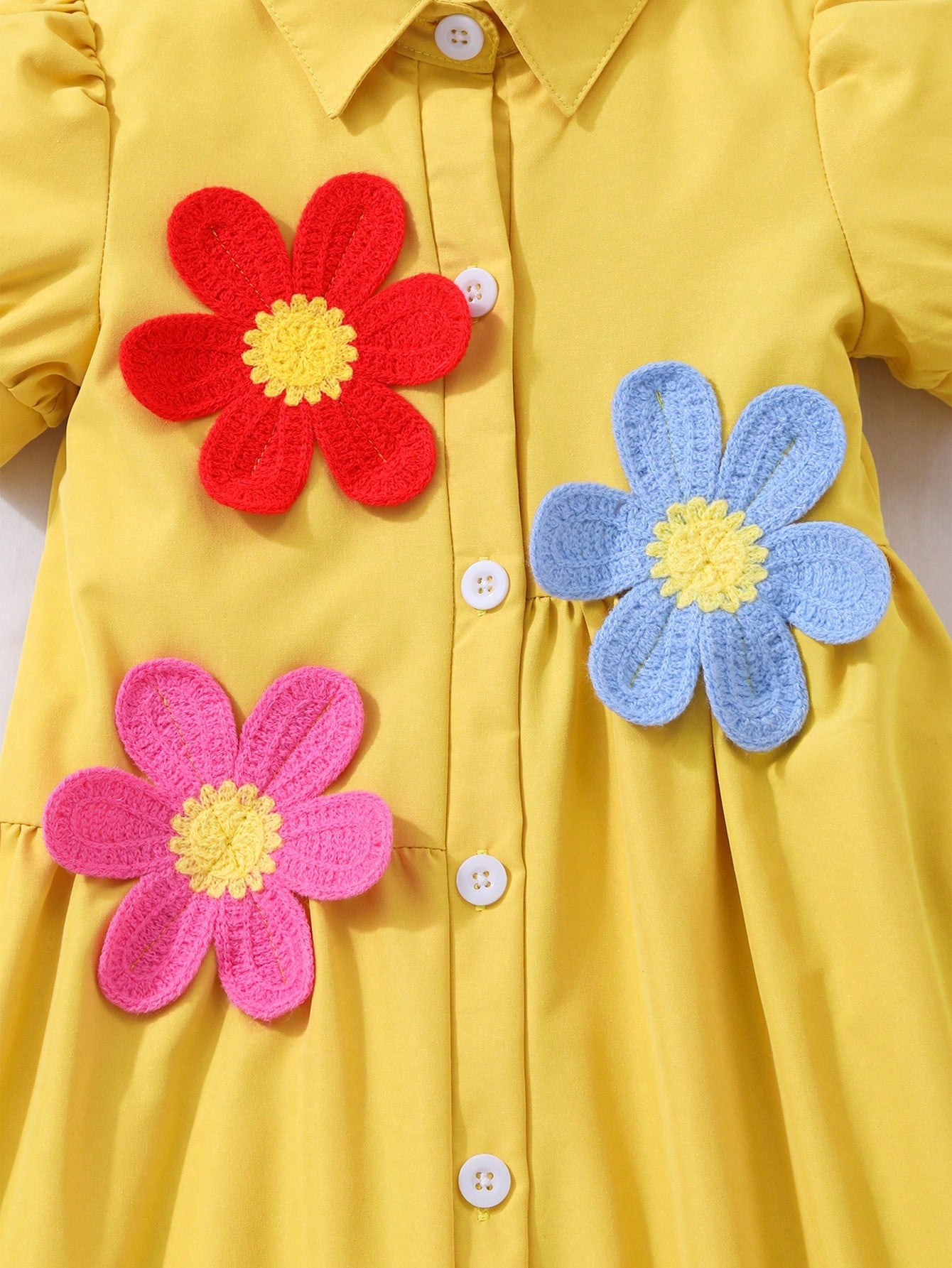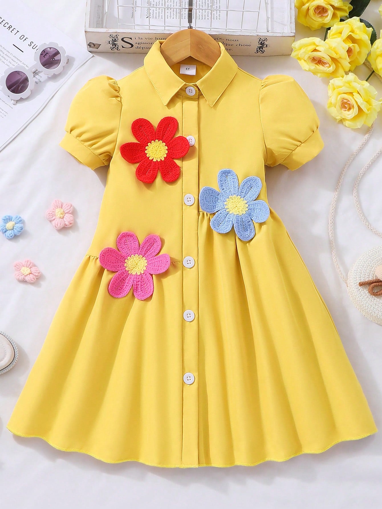 SHEIN Young Girl' Floral Decor Collar Open Front Puff Sleeve Summer Casual Dress