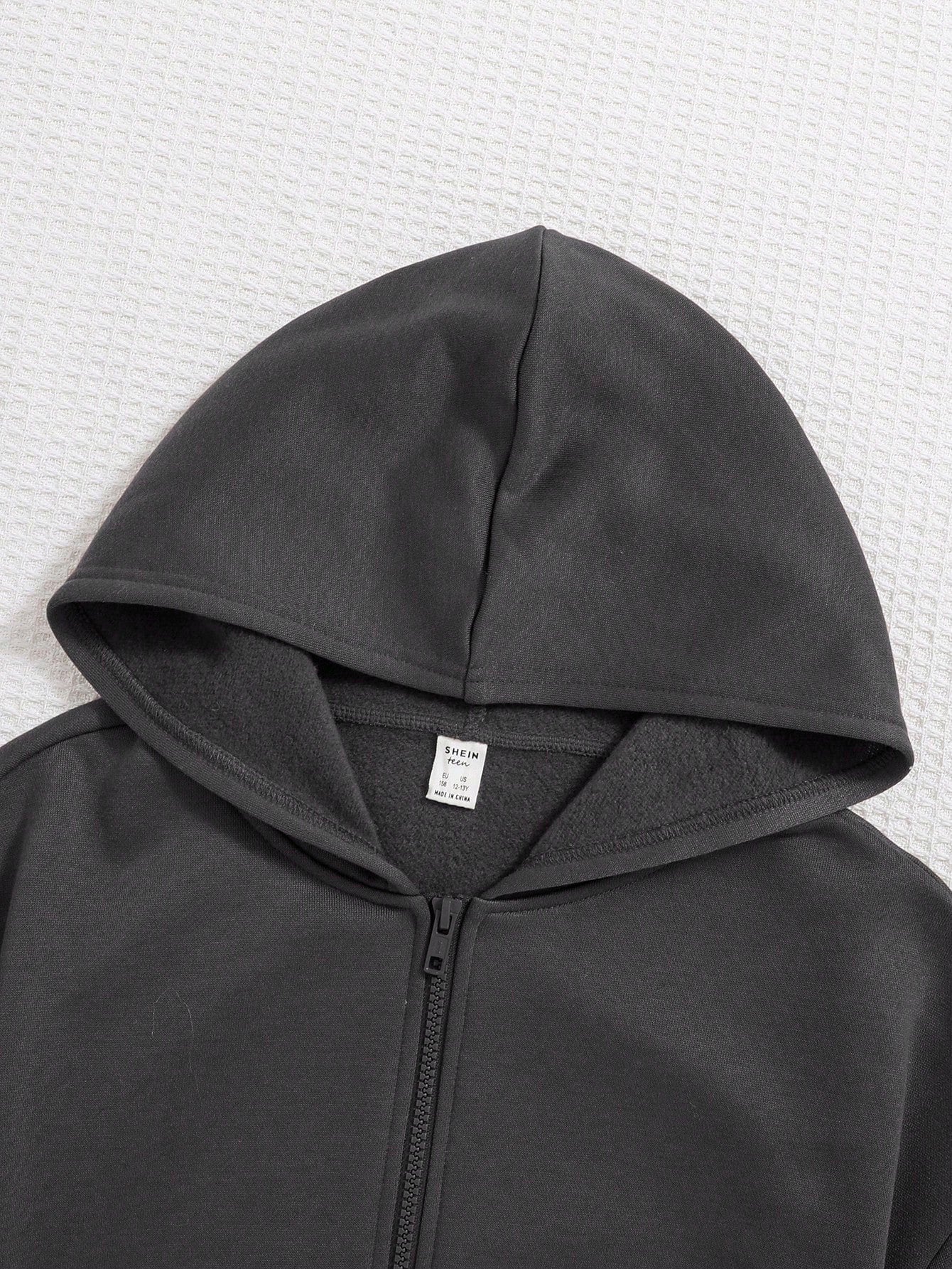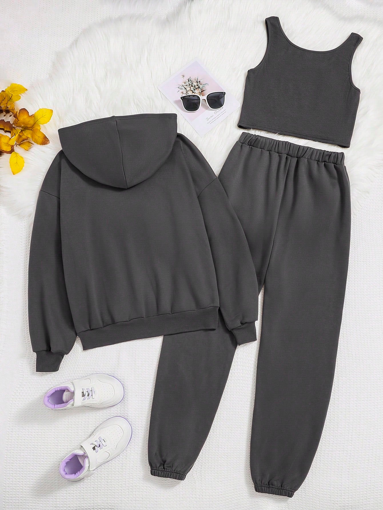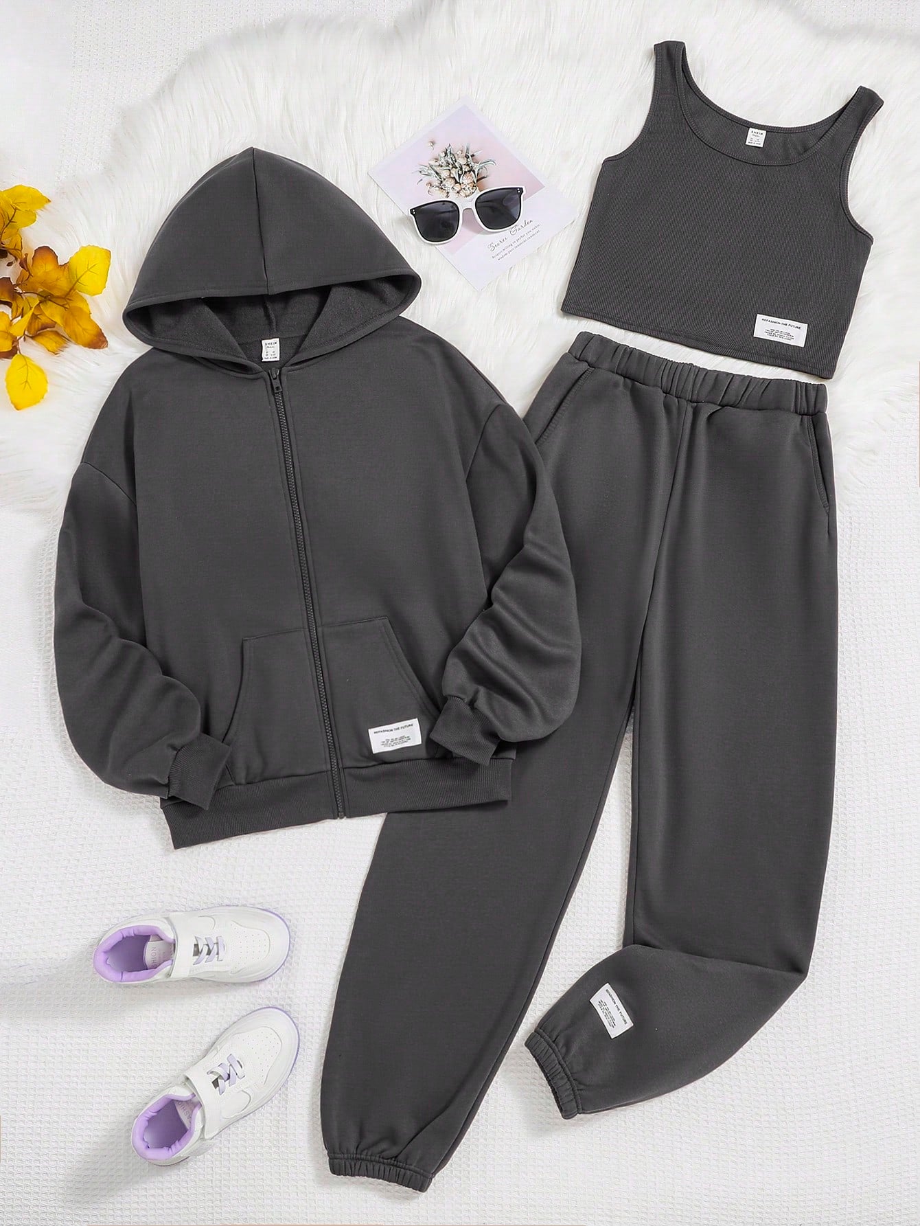 Teen Girl Solid Color Zip-Up Hoodie Vest And Sweatpants Set