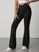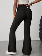 Teen Girls' Simple Solid Black High-Waisted Flared Pants For Home
