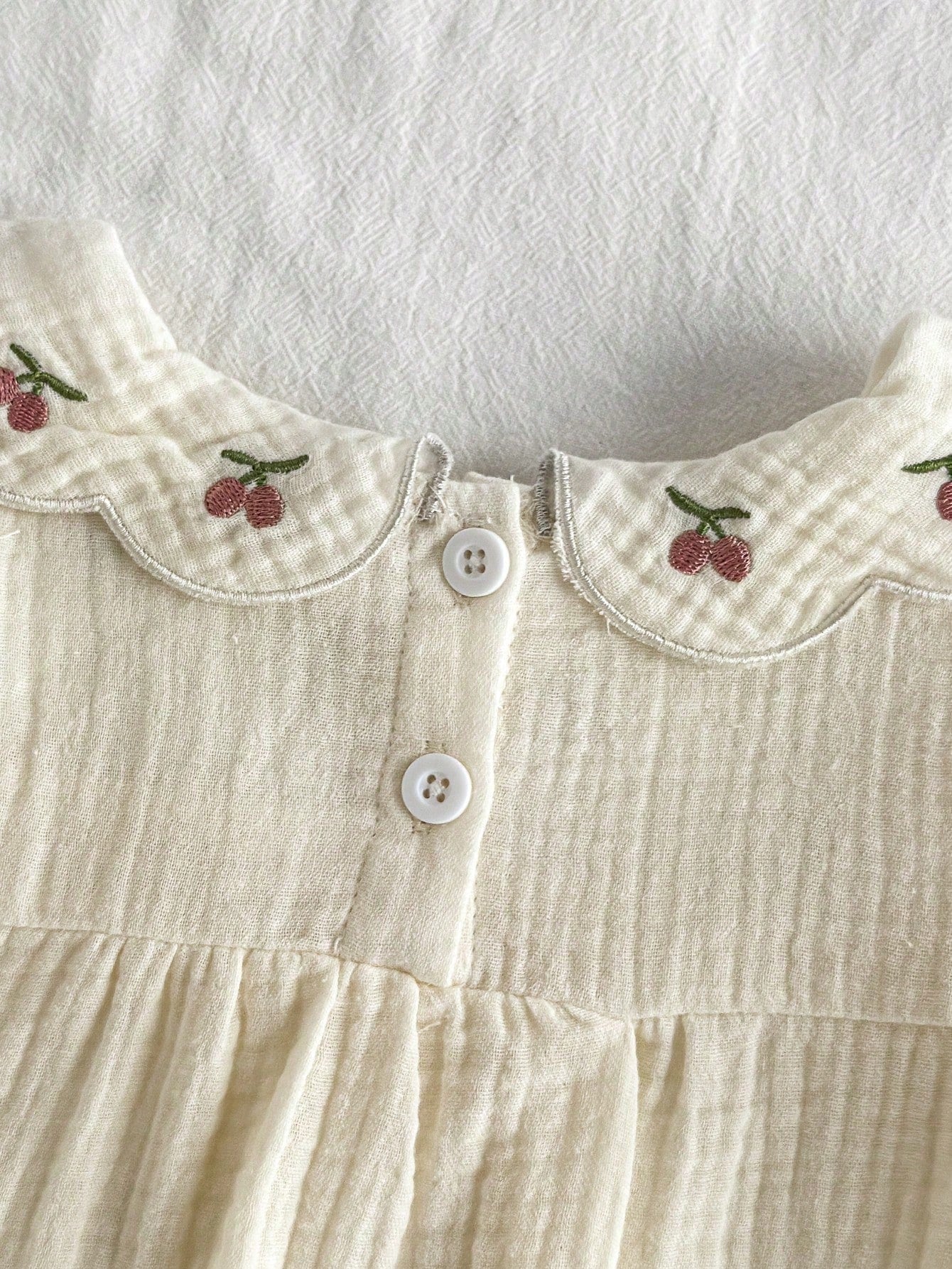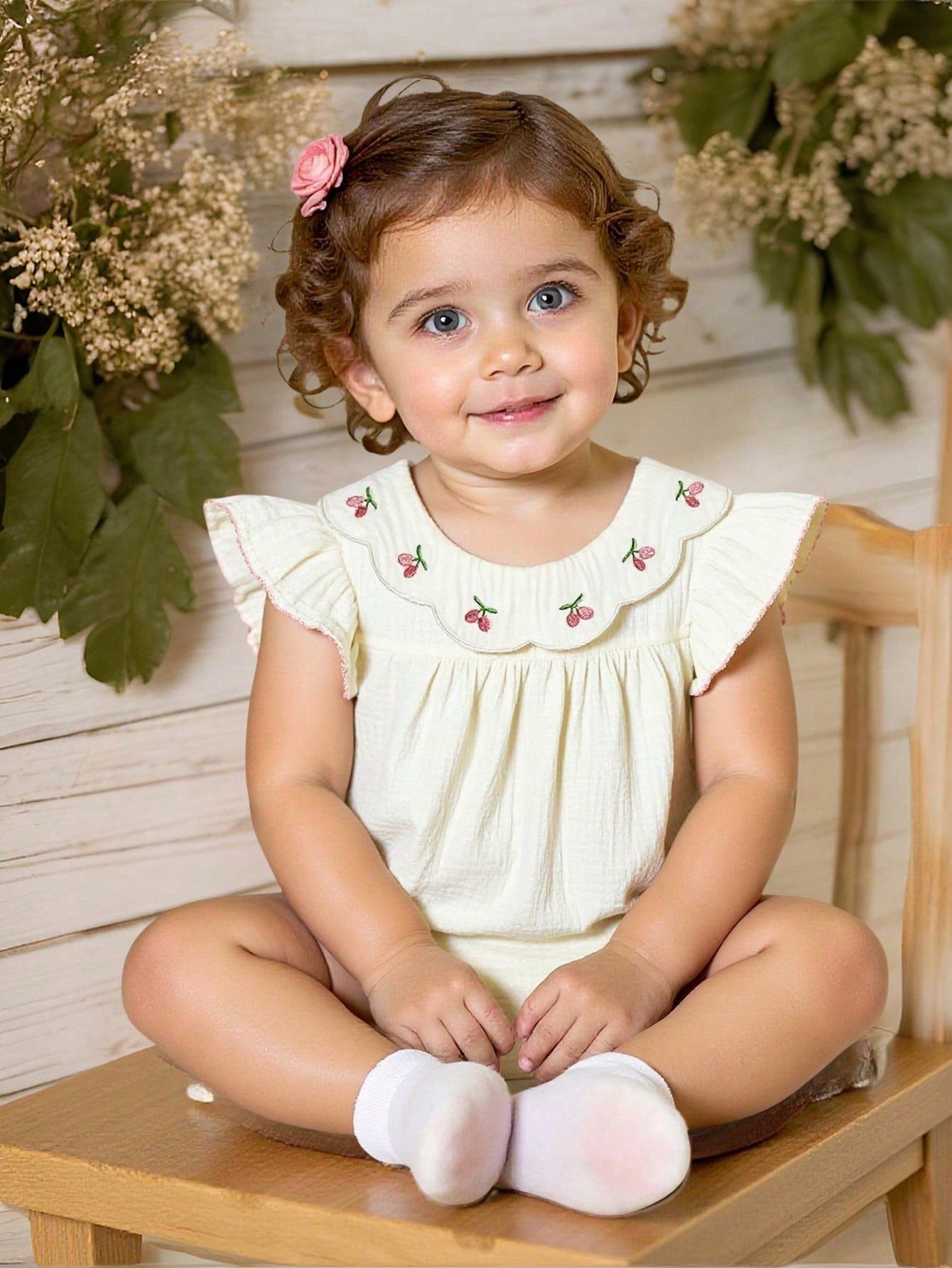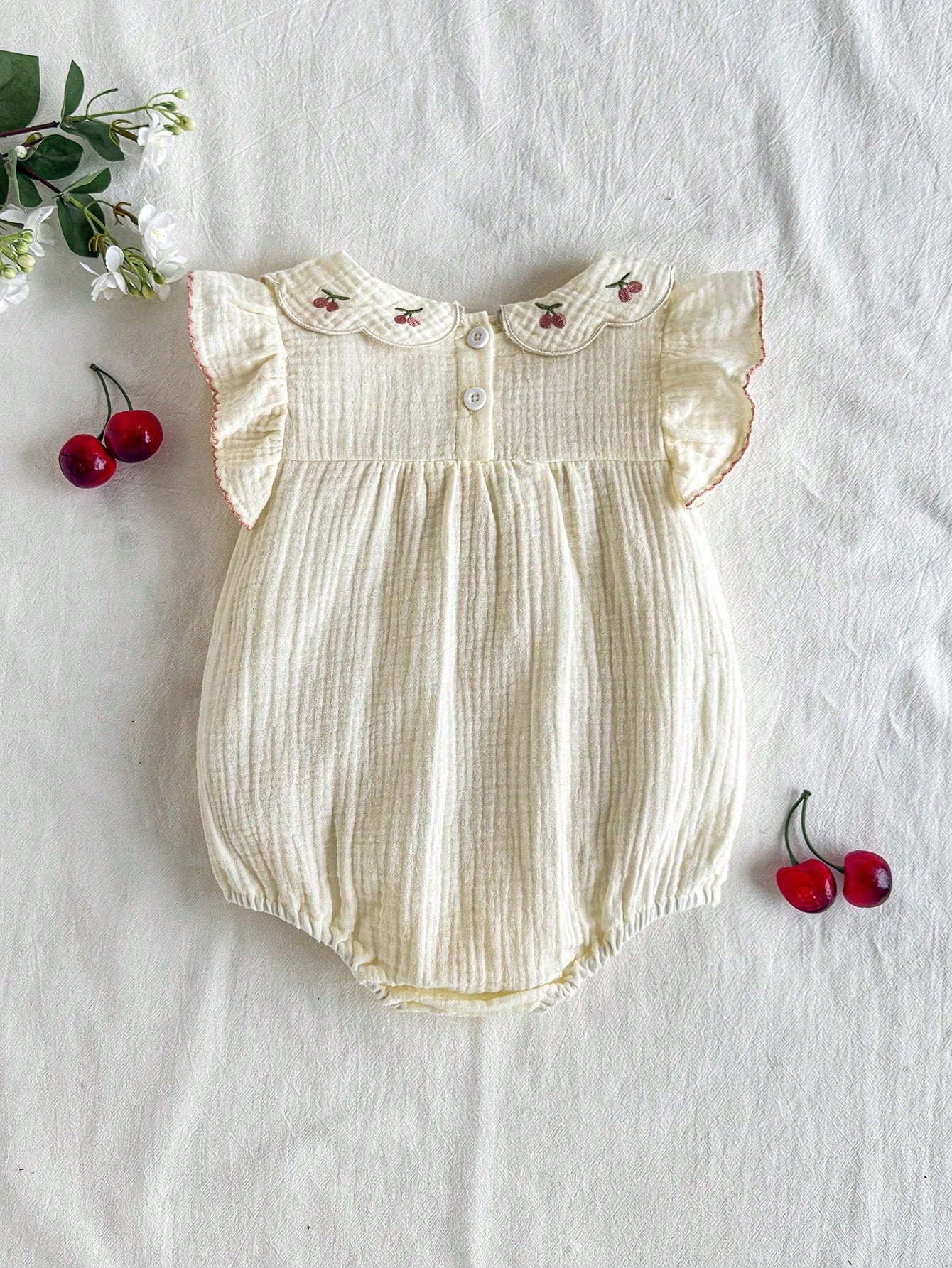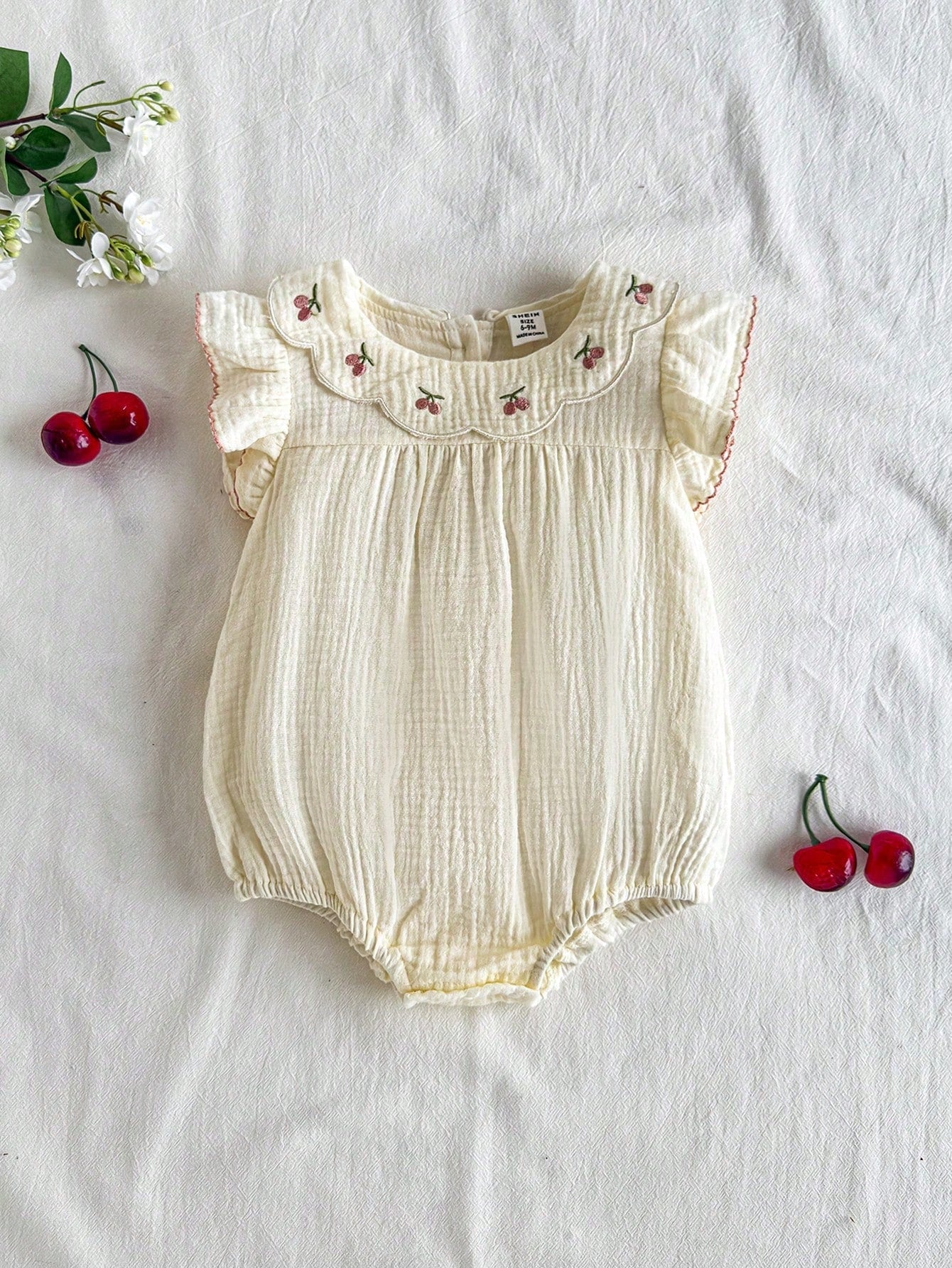 Vintaside Kids Babygirls Cherry Blossom Embroidery Sleeveless Romper, Pure Apricot Color, Sweet And Simple