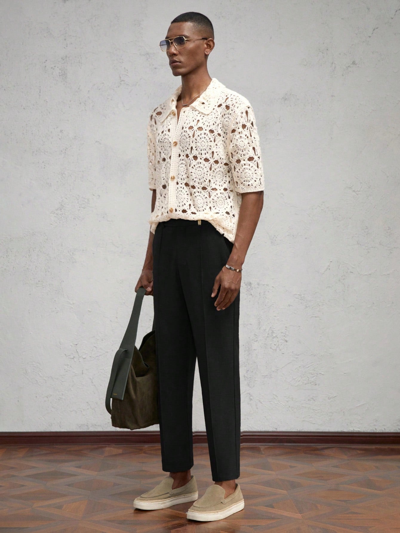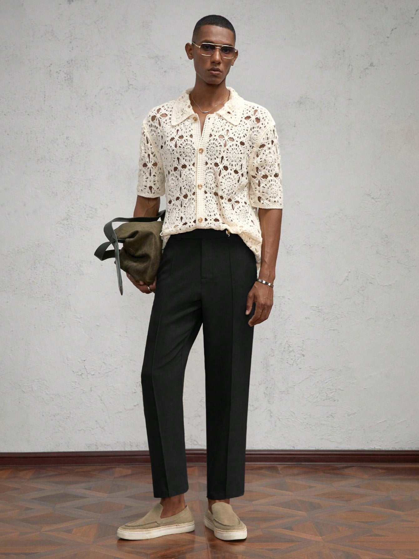 AKNOTIC Business Casual Men's Woven Slim Fit Mid-Waist Straight Leg Casual Pants, Suitable For Daily