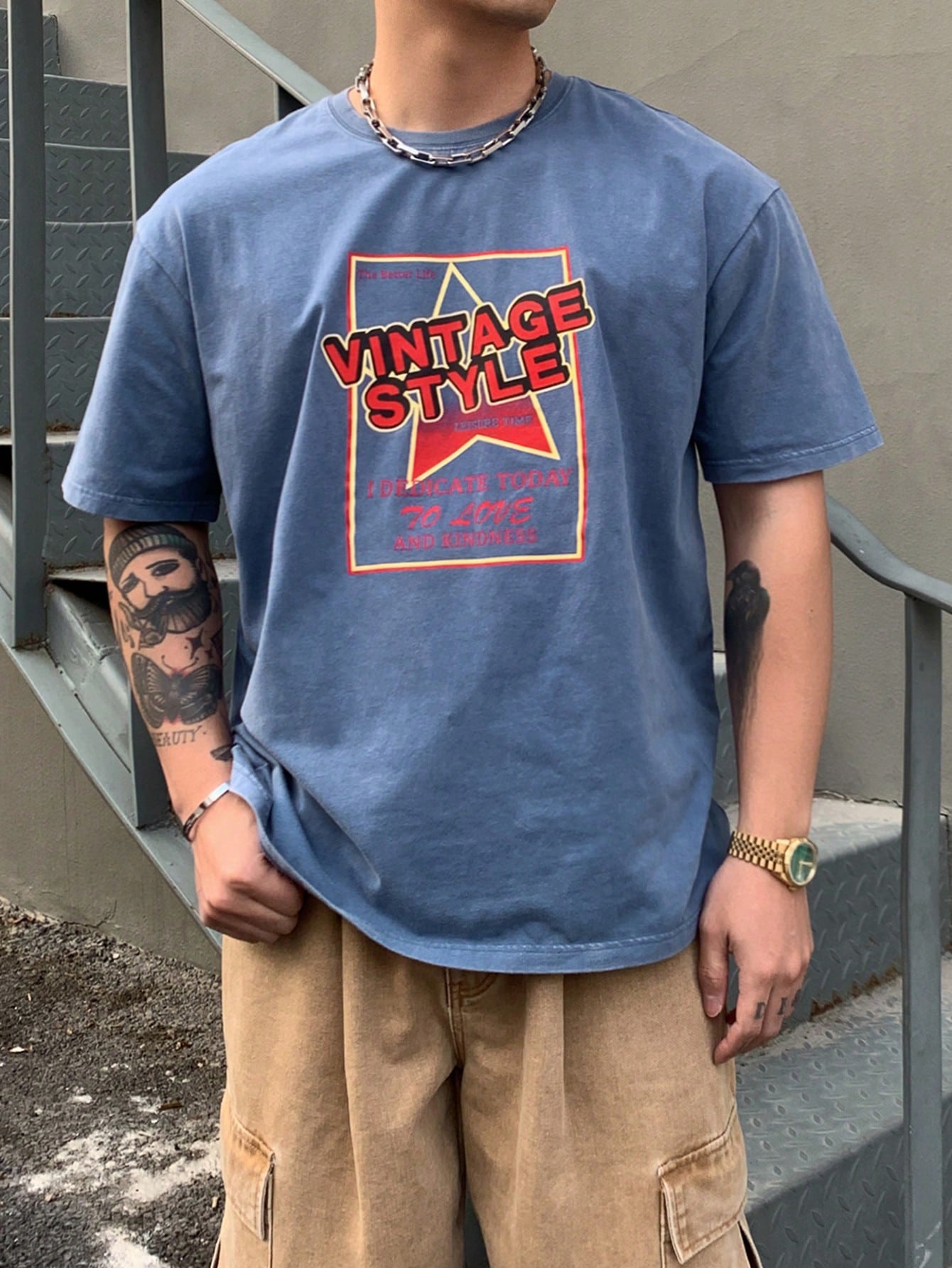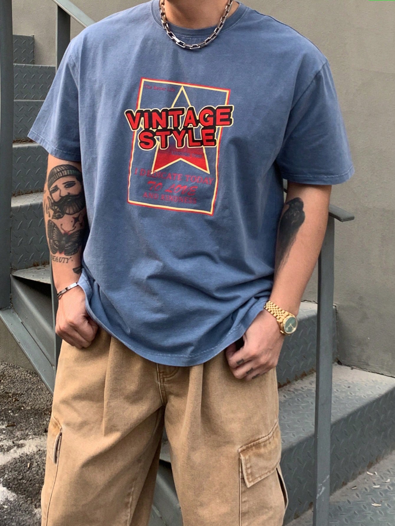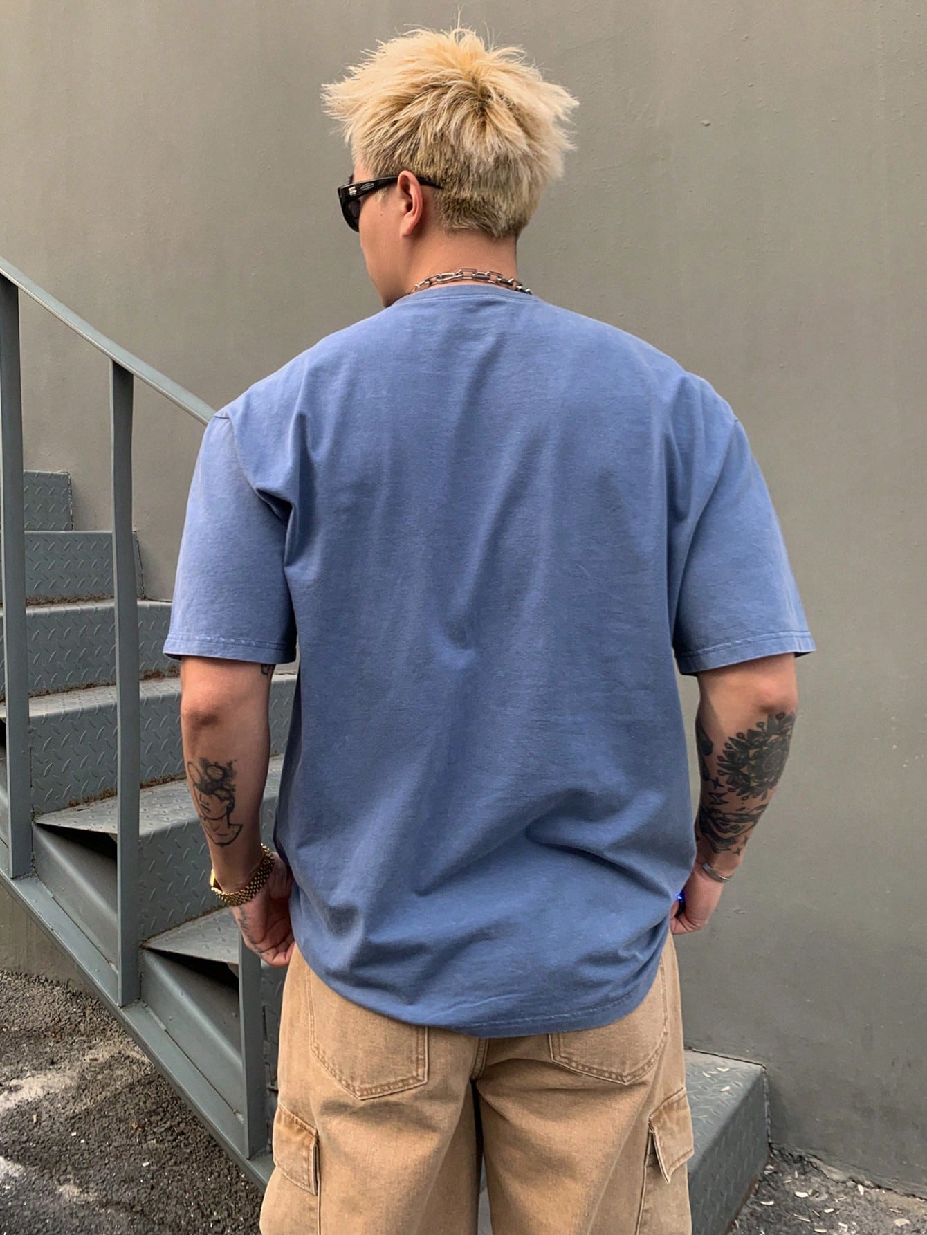 DAZY Men's Blue Round Neck Short Sleeve T-Shirt With Letter Print, Spring/Summer