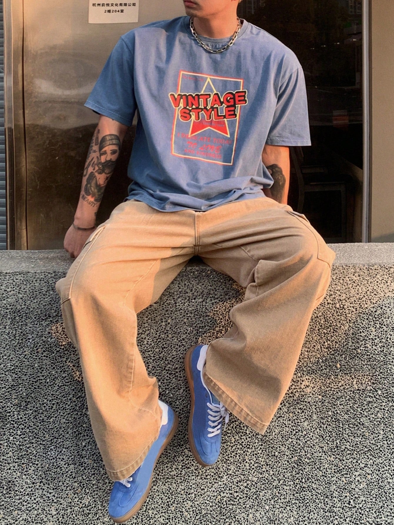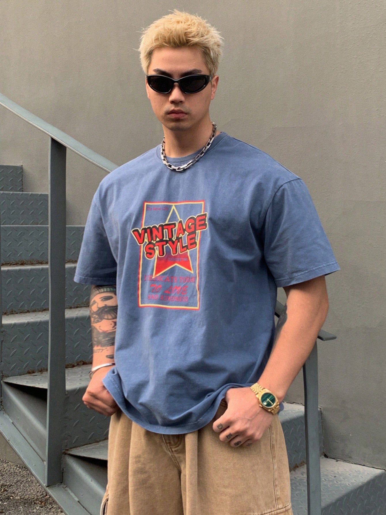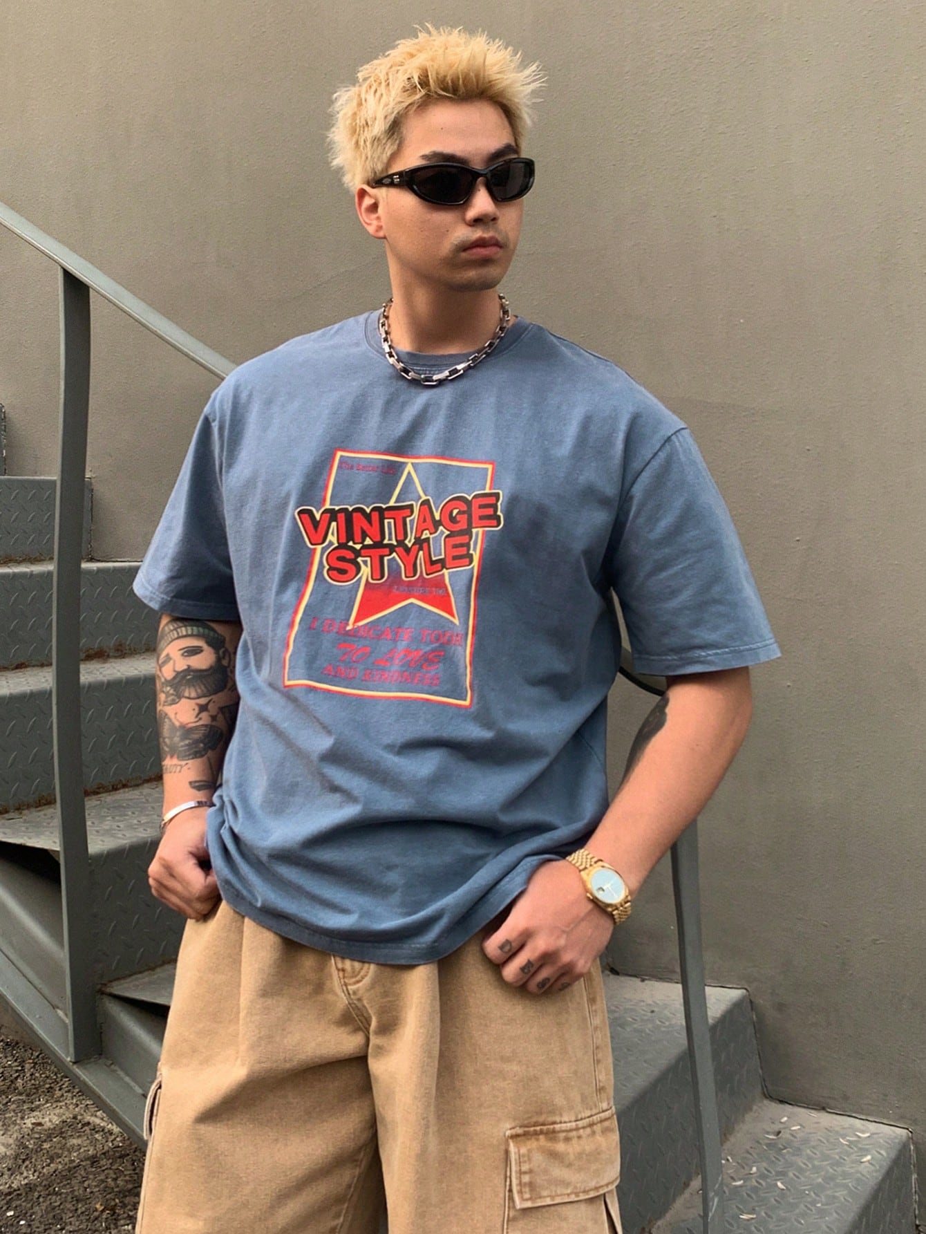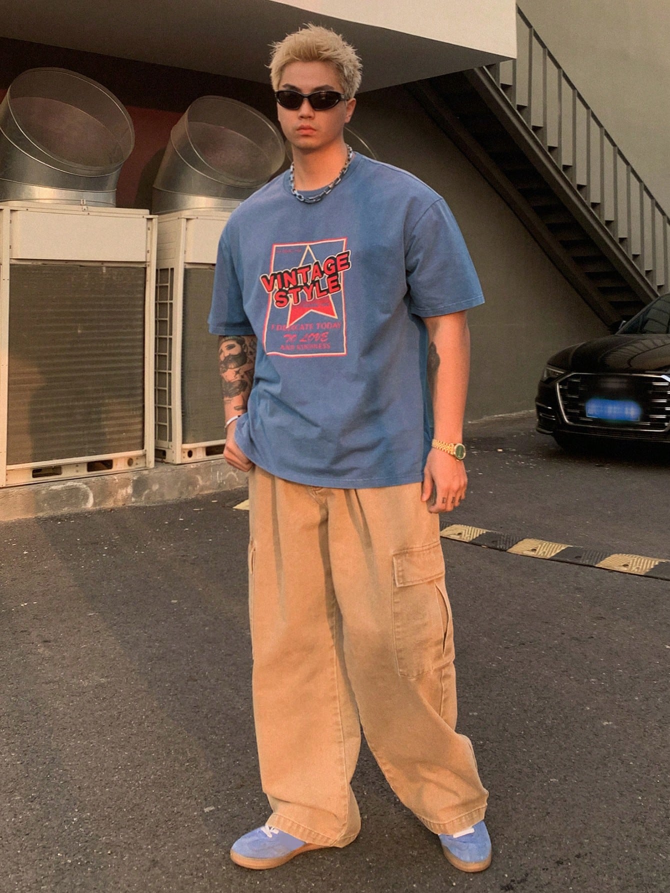 DAZY Men's Blue Round Neck Short Sleeve T-Shirt With Letter Print, Spring/Summer