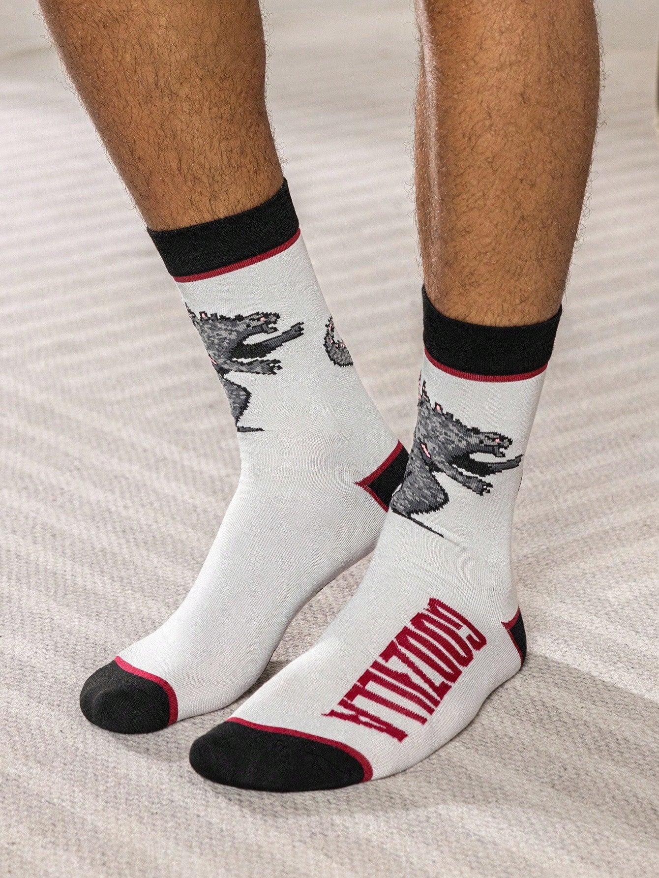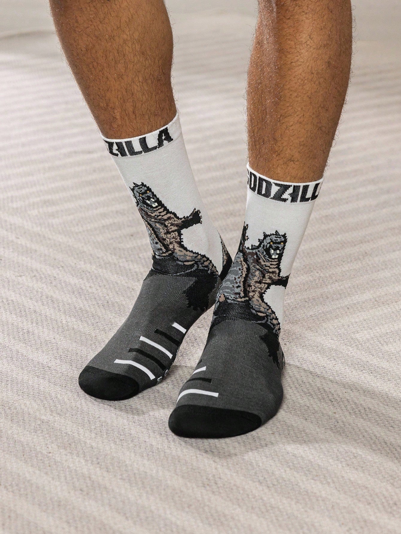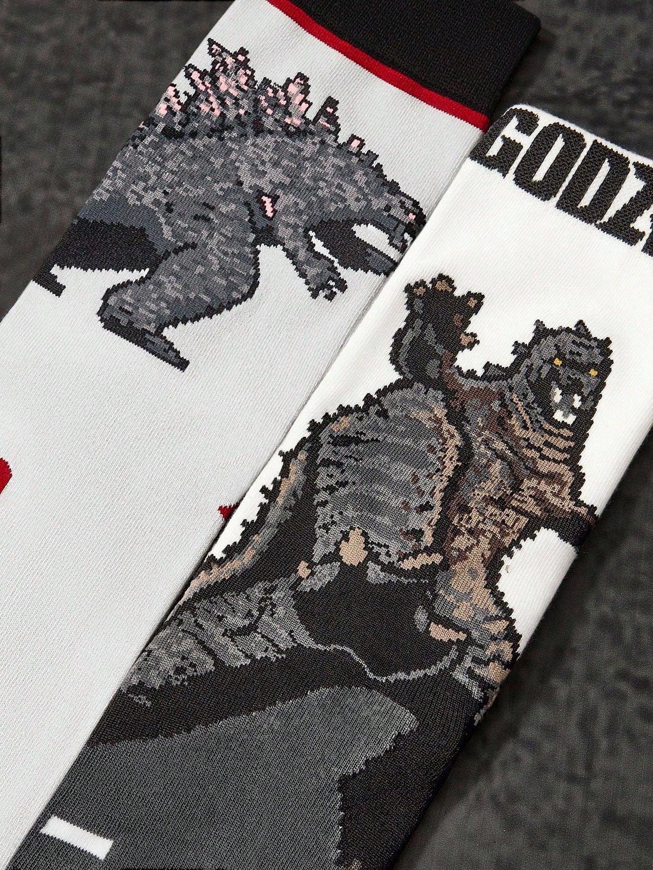 GODZILLAxKONG X 2 Pairs Soft & Breathable Moisture-Wicking Casual Men Mid-Calf Socks Fashionable White Crew Socks Reinforced Toe & Heel For Durability Unisex Women All Season All-Match Summer Winter