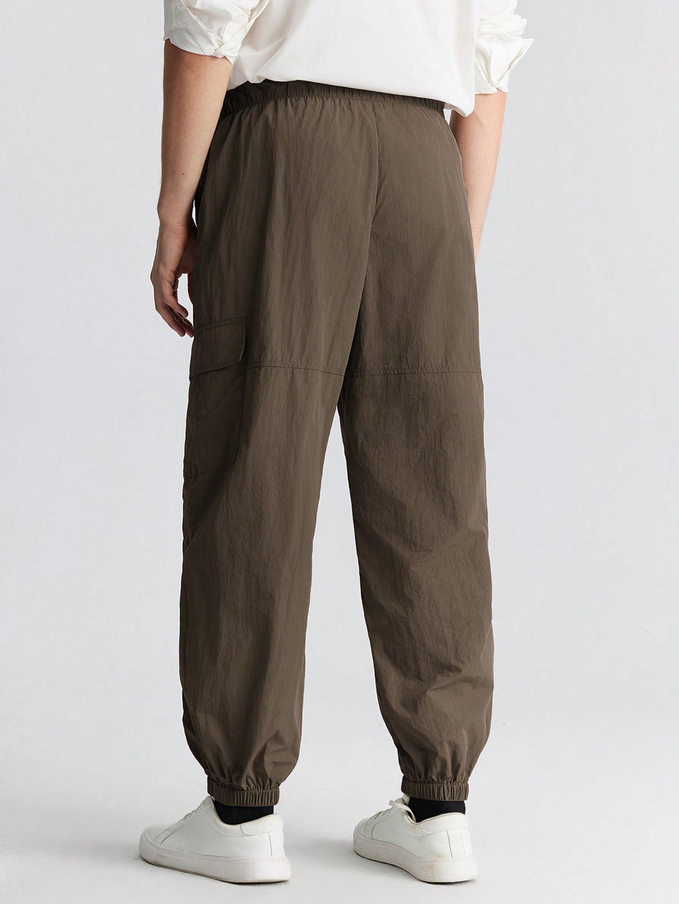Maija Men's 2025 Spring Brown Solid Color Zipper Pocket Front Tie Elastic Waistband Drawstring Casual Pants