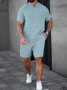 Manfinity CasualCool Men's Casual Shirt Summer Collar Men's Polo Shirt And Drawstring Shorts 2 Pieces Set