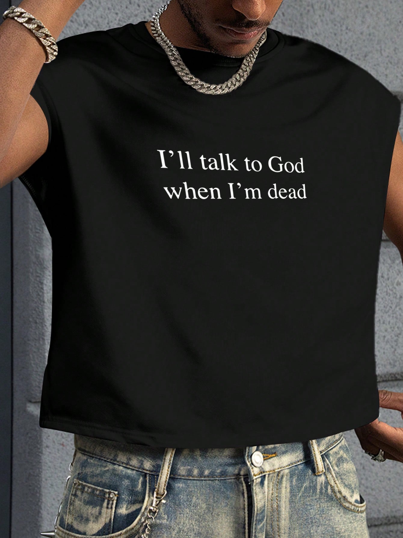 Manfinity EMRG Men's Youthful Streetwear, Featuring An INS-Style High Street Creative Short Black Tank