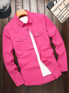 Manfinity Homme Men's Casual Single-Breasted Long Sleeve Denim Shirt, Autumn
