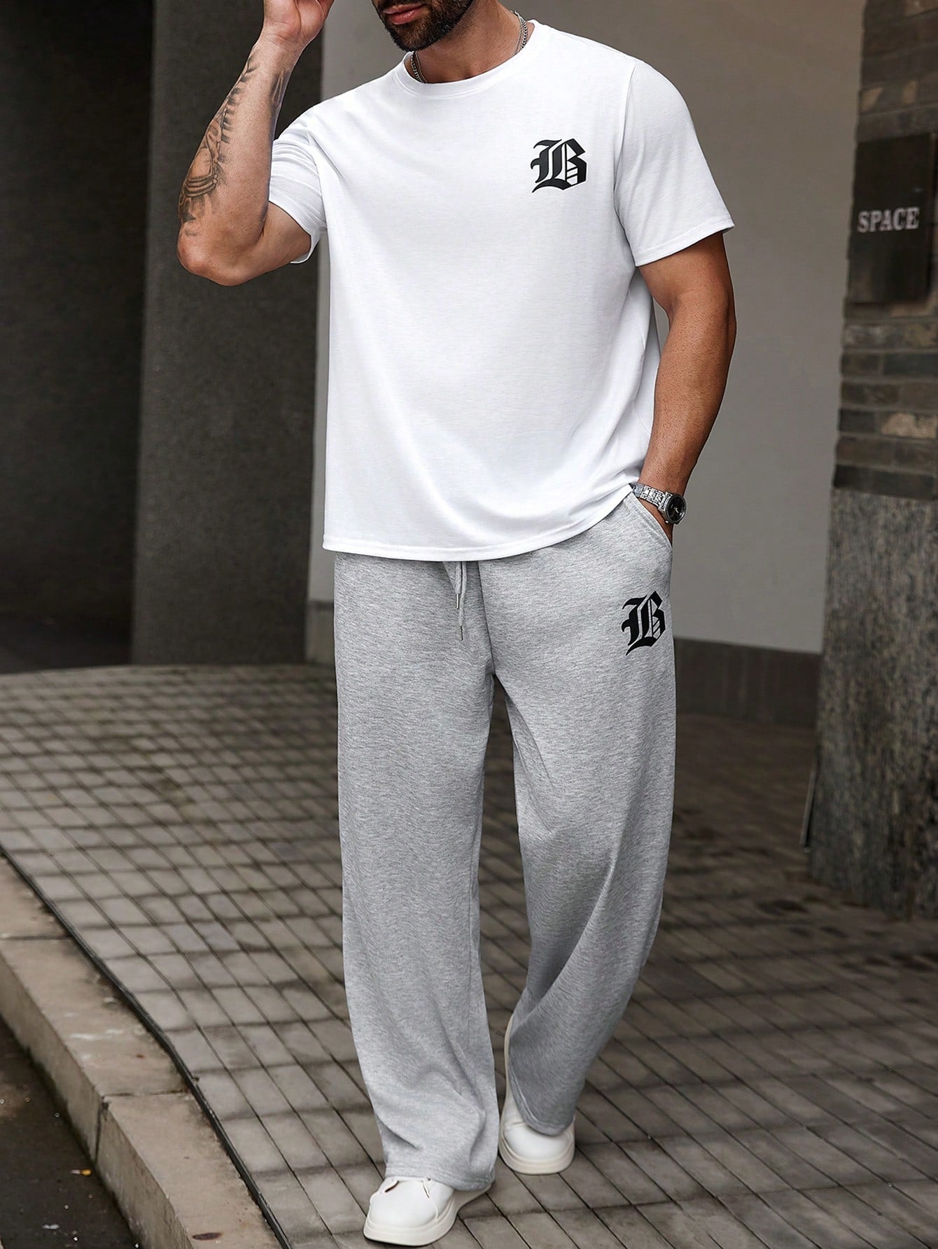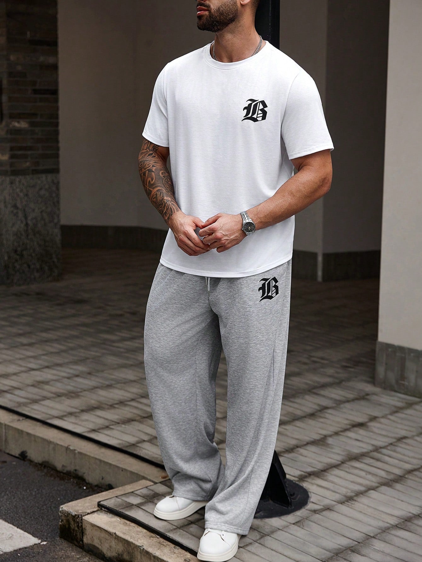 Manfinity Homme Plus Size Men 2 Piece Set - Round Neck Short Sleeve T-Shirt And Pants