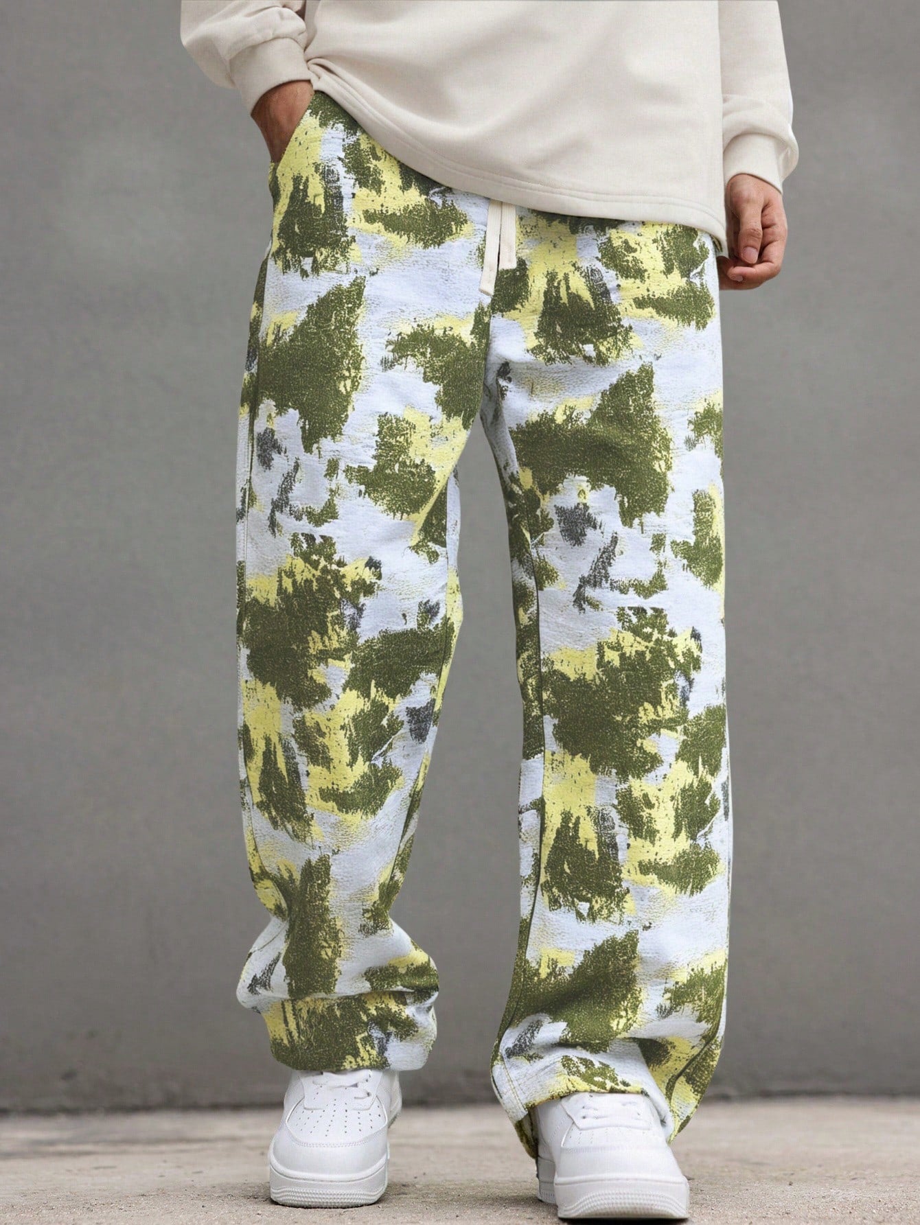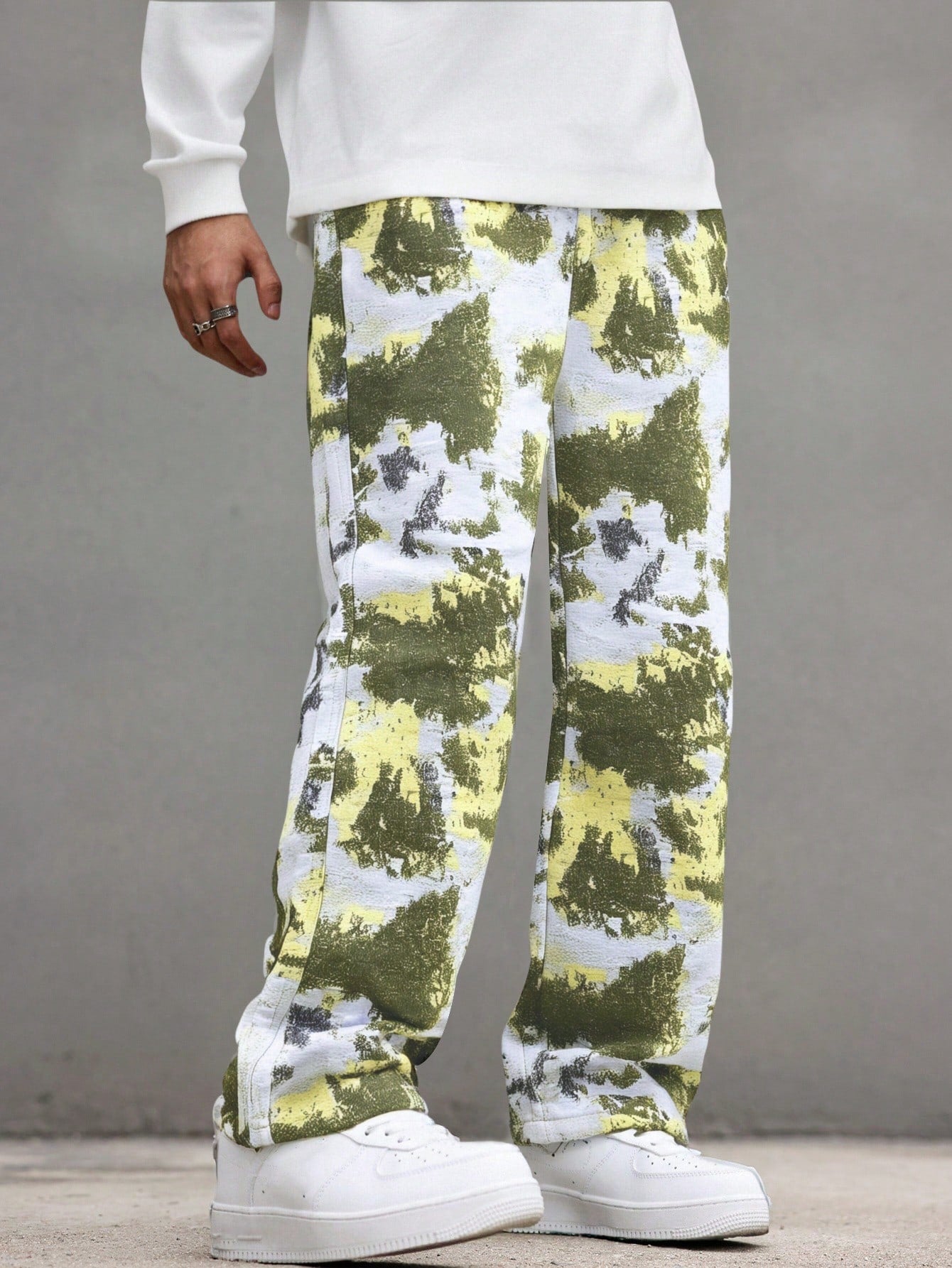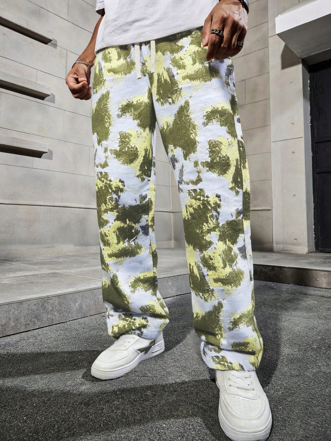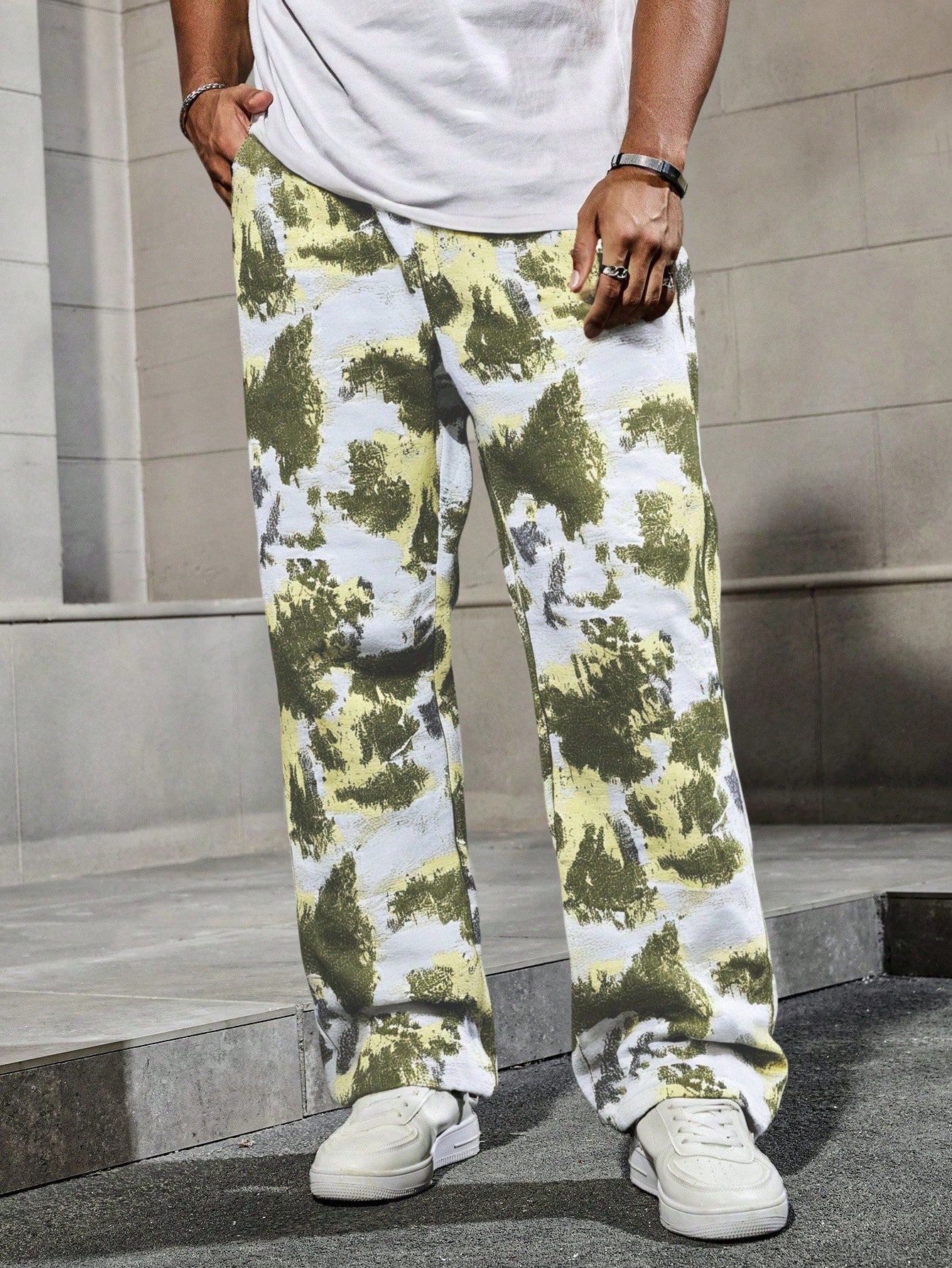 Manfinity Hypemode Men's Tie-Dye Black & White Contrast Color Wide Leg Straight Pants
