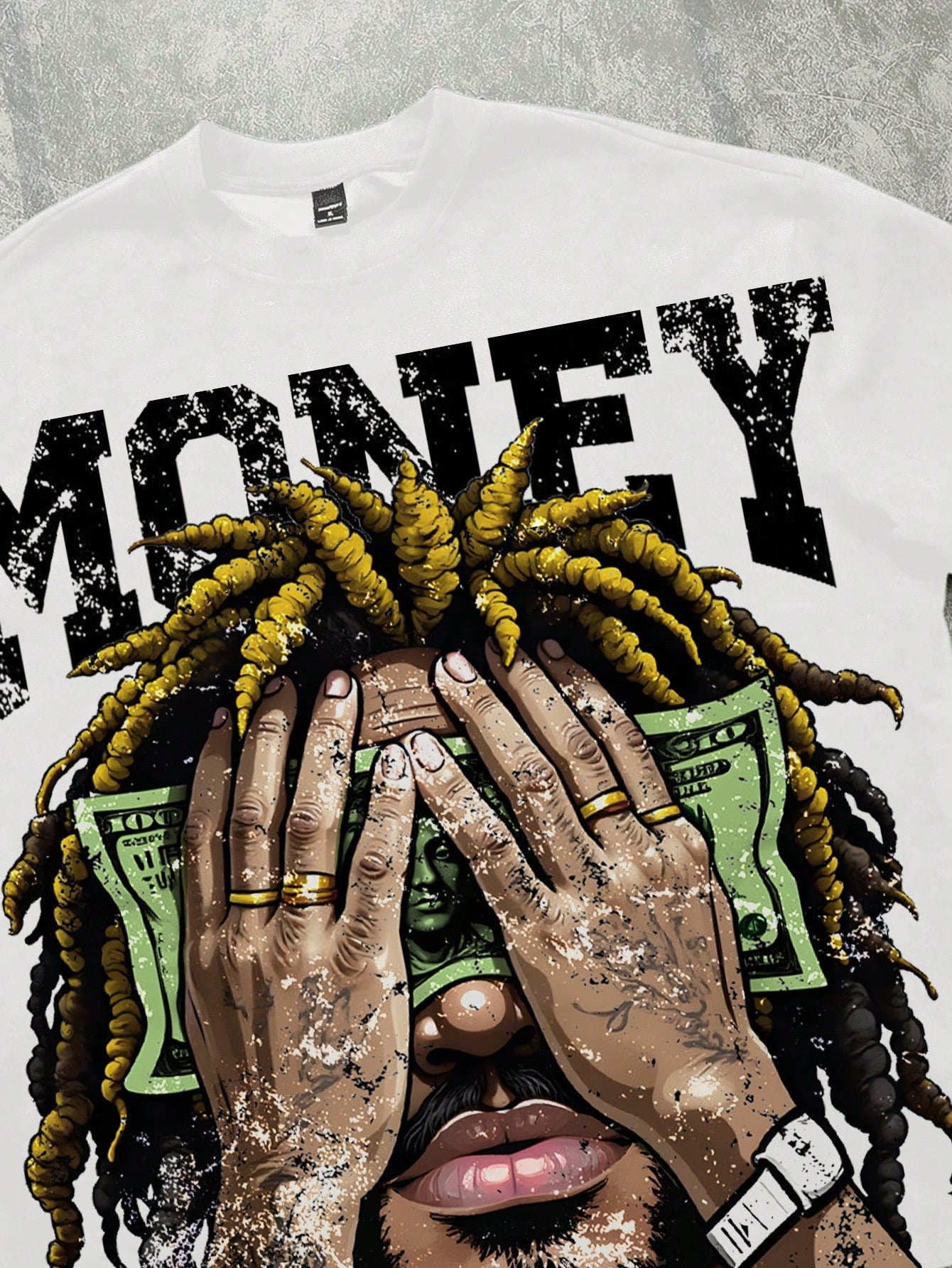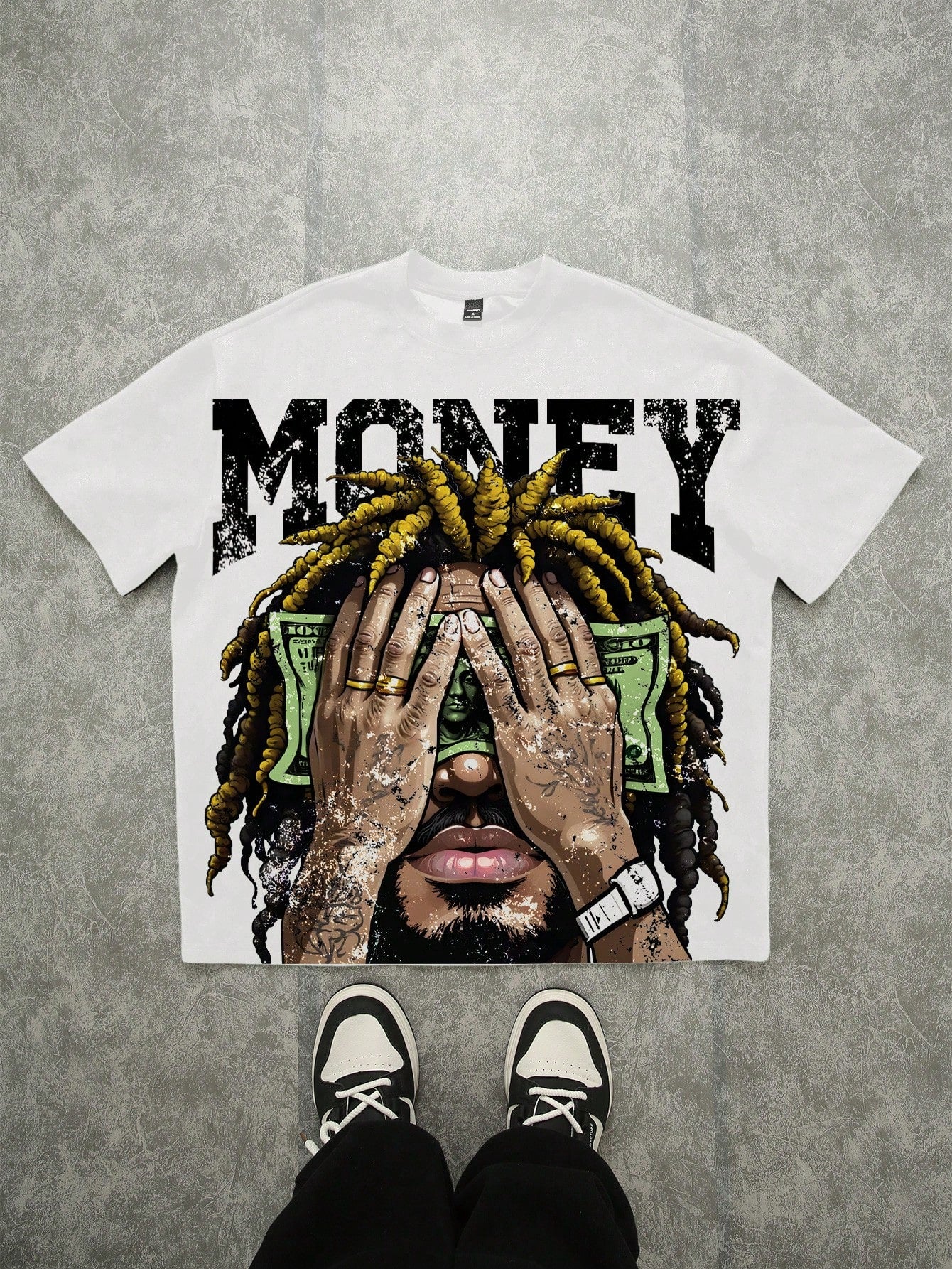 Manfinity Roghcode Oversized Street Hip Hop Dollar Sign Figure Pattern T-Shirt