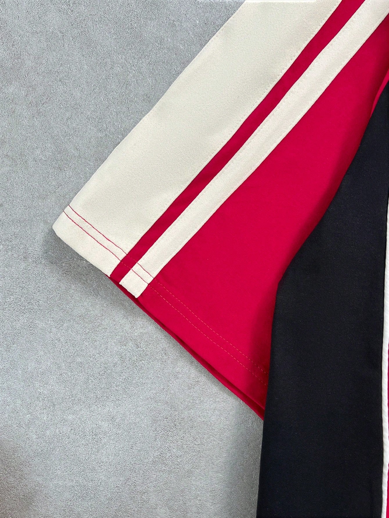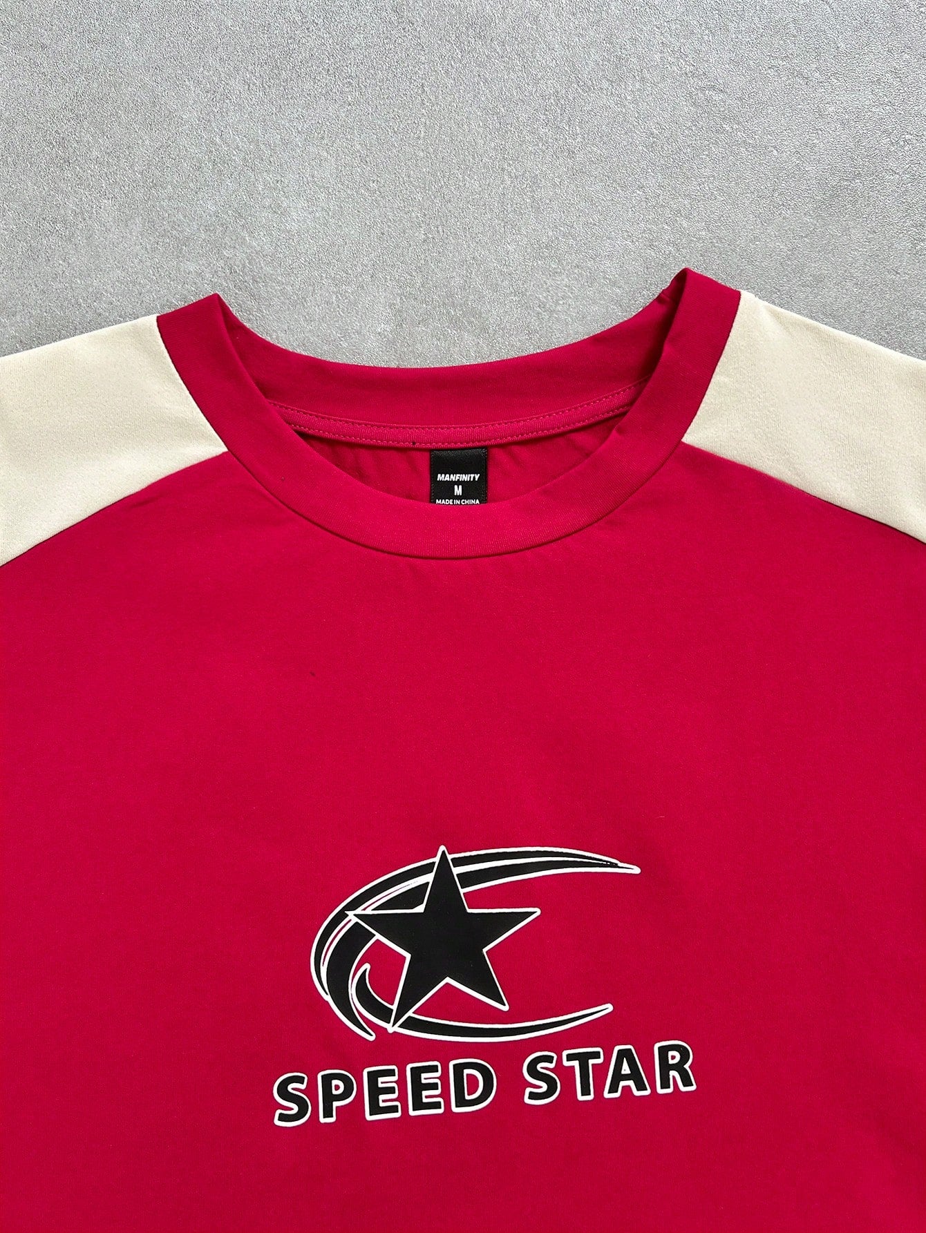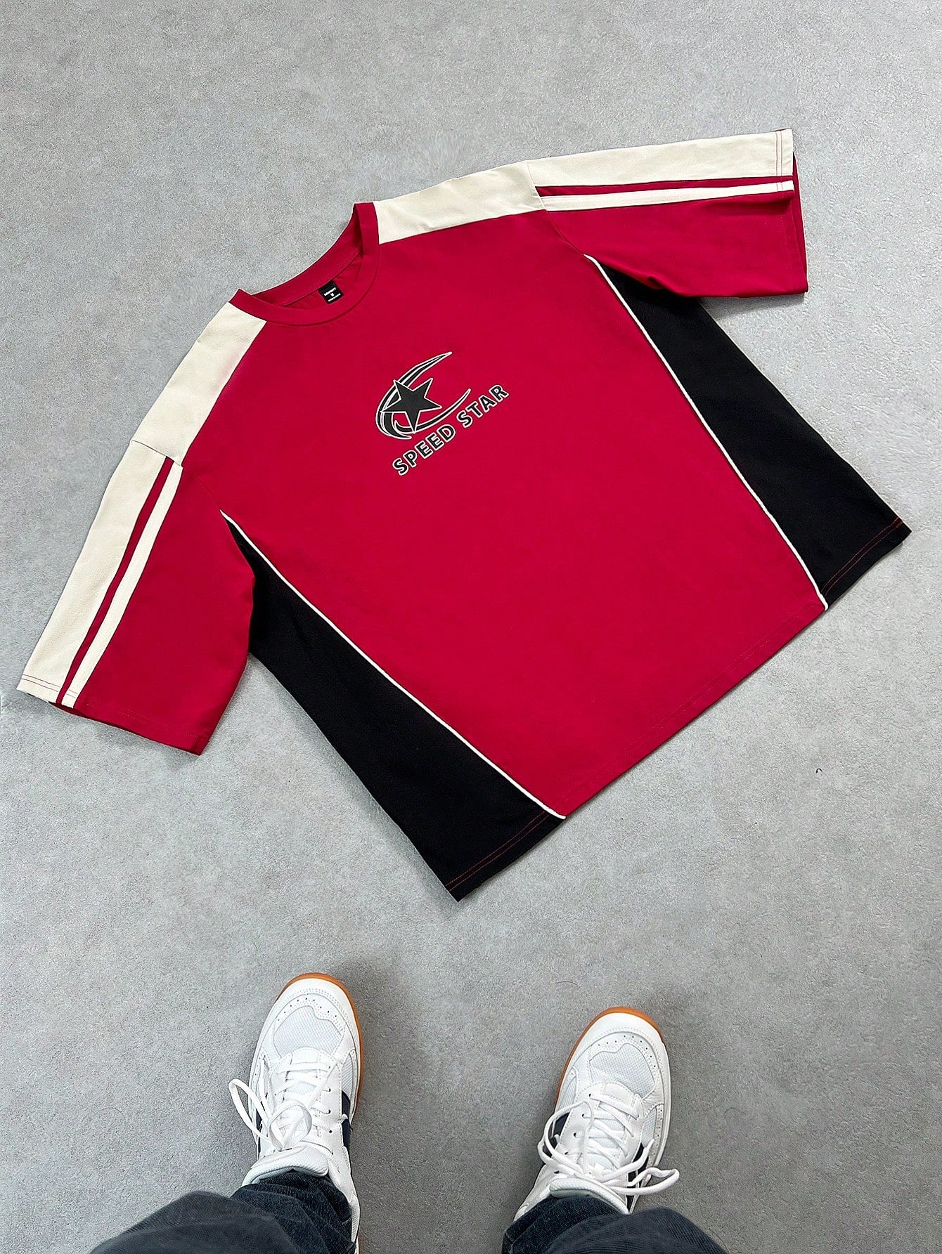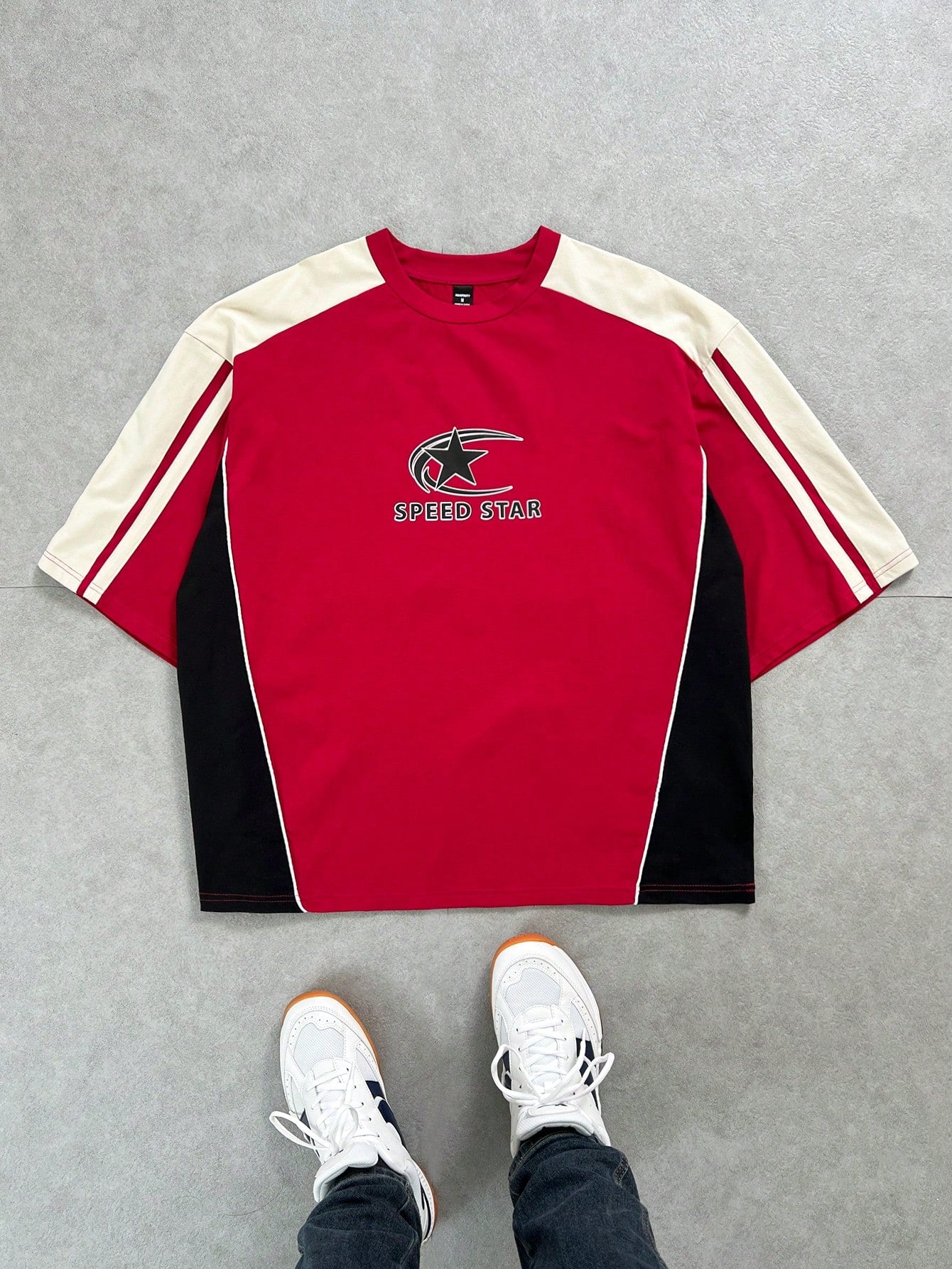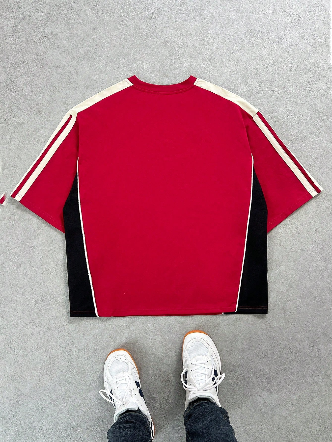 Manfinity VCAY Unisex Casual Knitted Splicing Drawstring Decor Loose Drop Shoulder Round Neck Short Sleeve