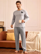 Men's Cat Print Long Sleeve Top And Striped Long Pants Pajama Set